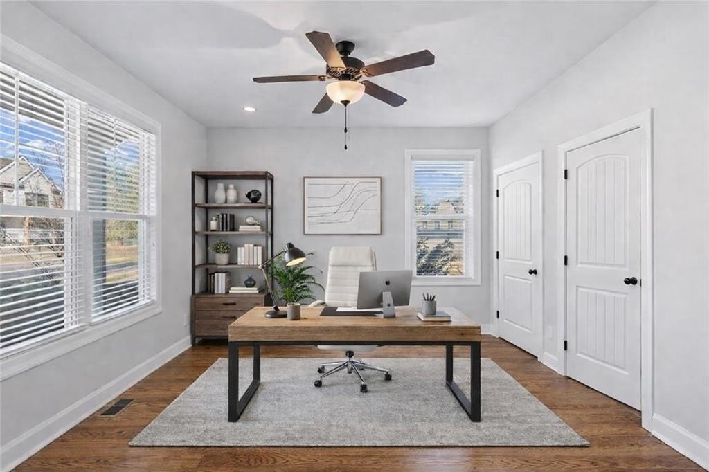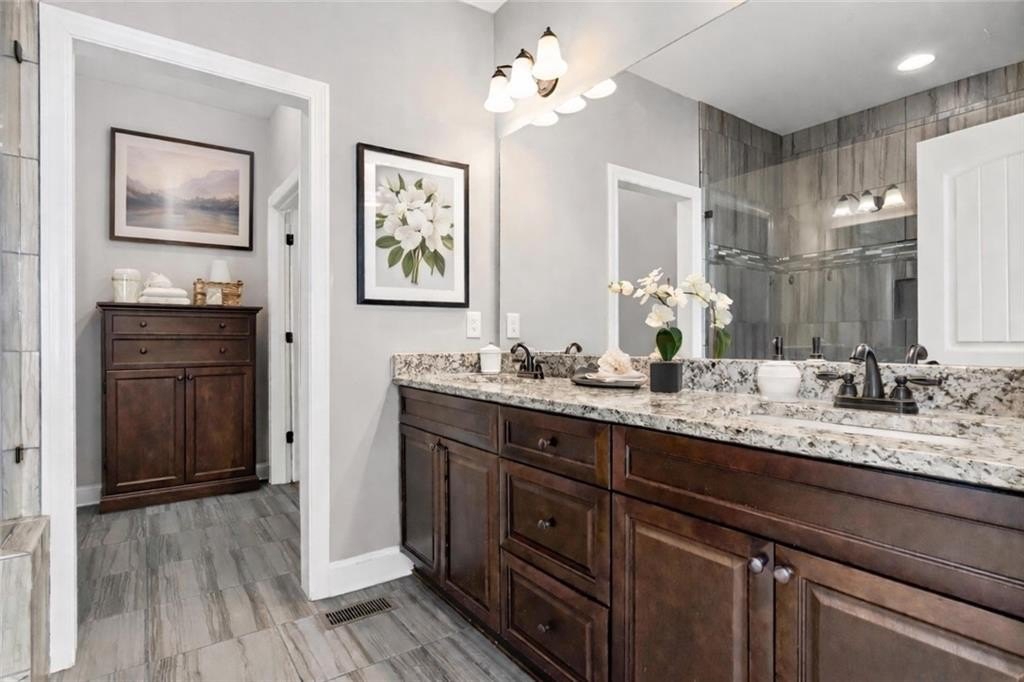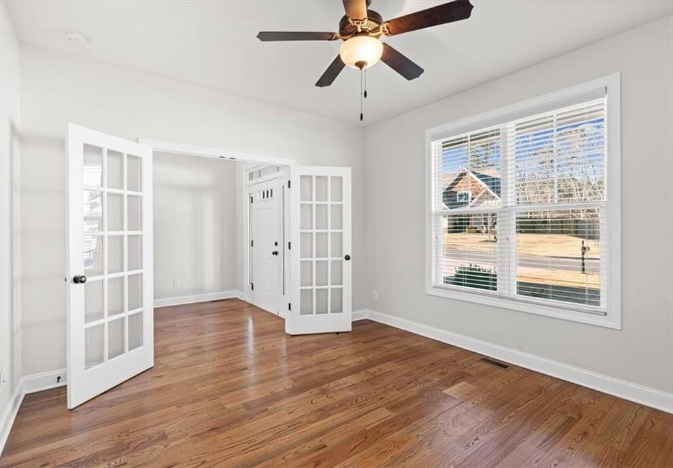 Welcome to your New Home in the Highly sought after community, Carter Grove in the City of Cartersville. This beautifully maintained custom craftsman style home is like new, only 5 years young with 5 spacious bedrooms & 4 full baths. This home offers both comfort and flexibility with a primary suite on the main level with a ensuite bath, along with a dedicated home office with glase french ddor and can also convert to a sitting room. The stunning two-story foyer and great room create an inviting first impression, flowing seamlessly into the open-concept kitchen with cabinets galore, granite countertops throughout(including bathrooms) an eat-in island and dining area-perfect for everyday living and entertaining. The main level also includes a conveniently located laundry room and access to a large covered deck, ideal for relaxing or hosting guests. Upstairs, you'll find generously sized secondary bedrooms-each with walk-in closets-plus a spacious bonus room that can easily serve as a fifth bedroom, media room, or playroom. The unfinished basement offers endless potential and is already stubbed for a full bath, making it easy to customize to your needs. Located in a sidewalk-lined community with clubhouse, pool, and tennis, this home also enjoys exceptional convenience with Cartersville Primary School at the entrance of the subdivision and a newly built Cartersville Fire Department. Just minutes to I-75, Hwy 41, and downtown Cartersville shopping and dining, this home combines space, location, and lifestyle-don't miss this incredible opportunity. Some photos have been Virtually Stage