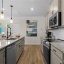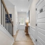 The open-concept main level features durable vinyl plank flooring throughout, a spacious family room with a linear fireplace, and a bright eat-in kitchen with direct access to a corner rear covered patio—perfect for entertaining. The kitchen showcases Quartz countertops, a central island with pendant lighting, upgraded stainless steel appliances, tile backsplash, and 42" upper cabinets for plenty of storage. Added windows in the breakfast area, family room, and stair landing fill the home with natural light.