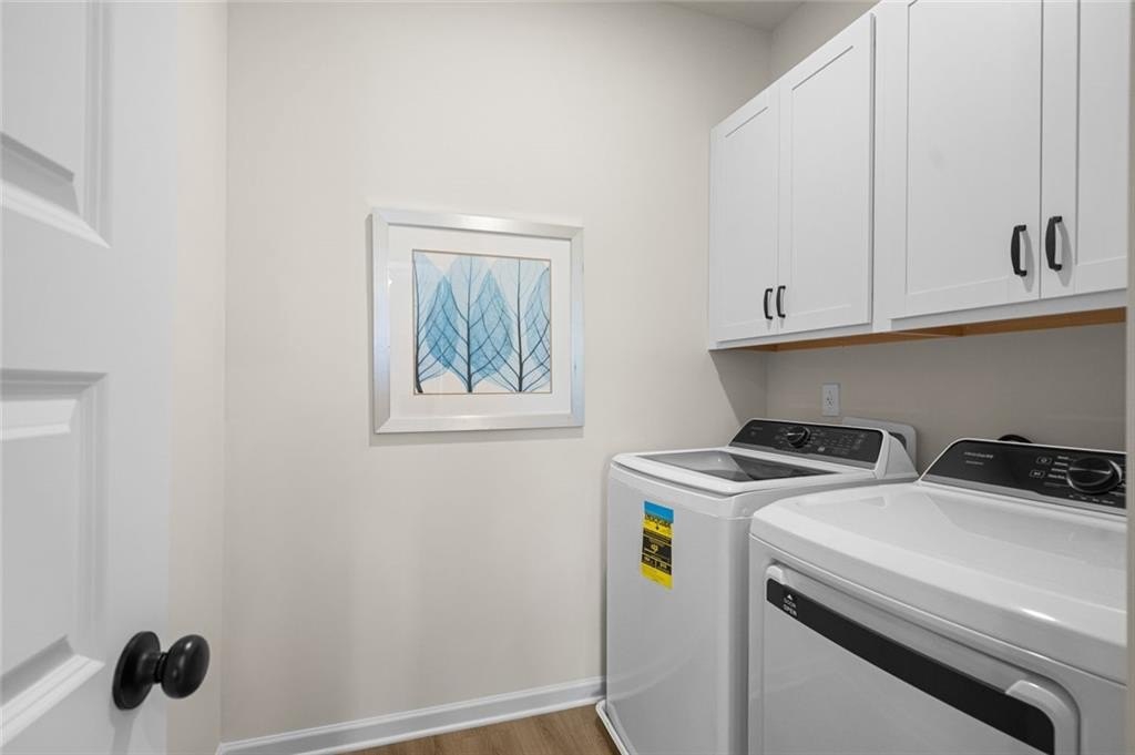 Upstairs, a versatile loft separates the primary suite from the two secondary bedrooms, providing privacy and flexibility. The tray ceiling adds spaciousness to the room. The luxurious primary bath includes a double vanity, separate shower and a garden tub with picture window above, black finishes, and marble countertops. The laundry room is conveniently located on the second floor near all bedrooms.
