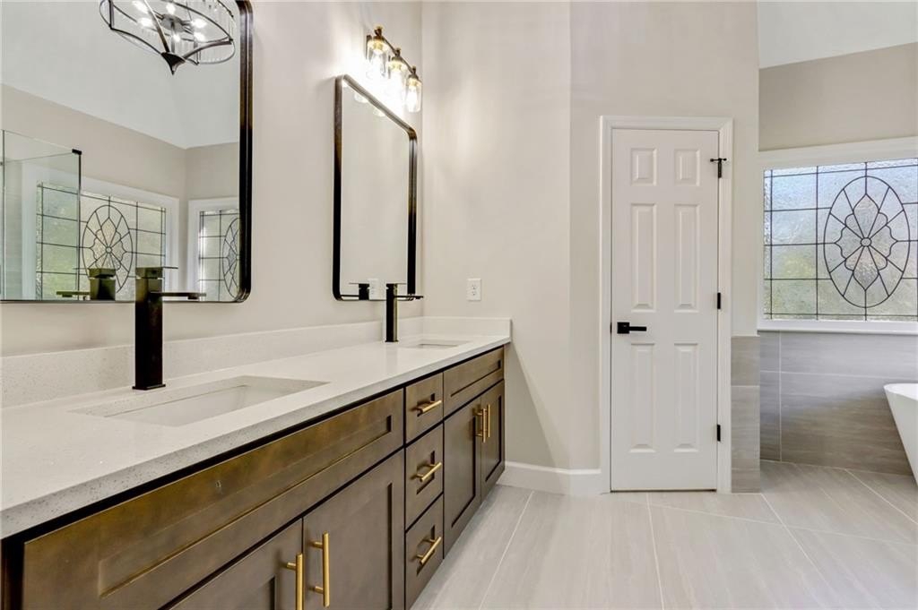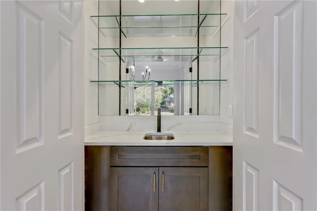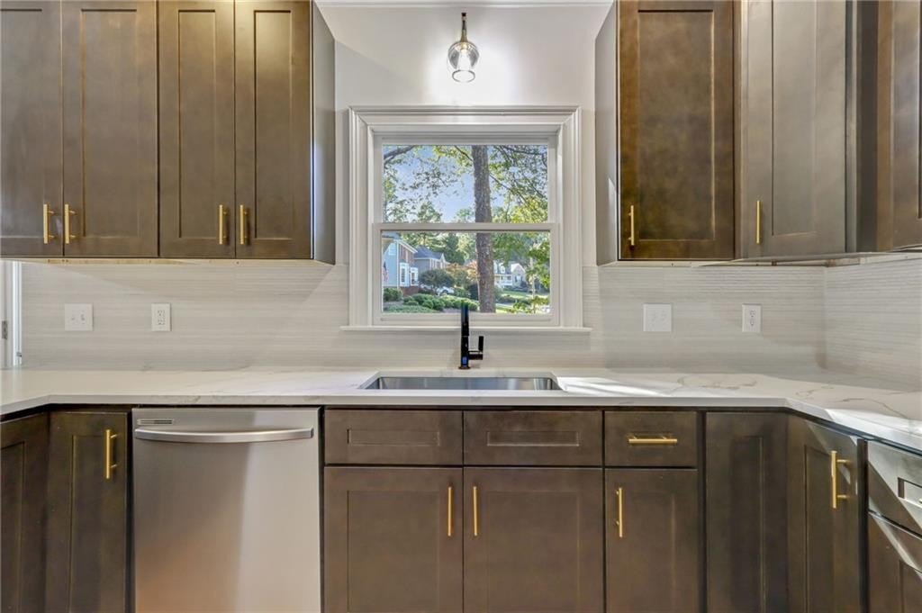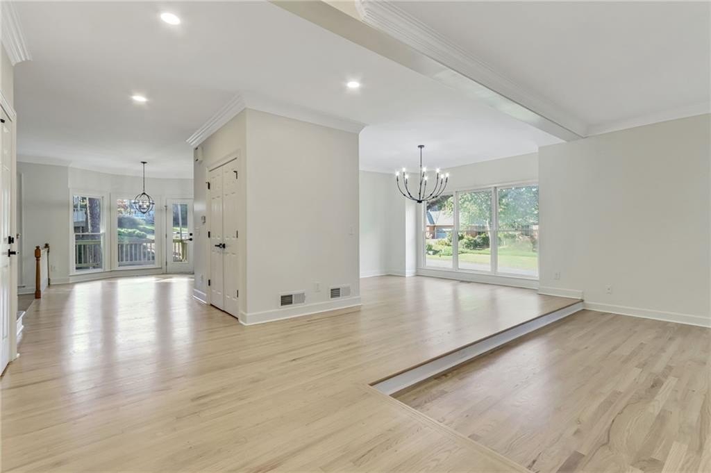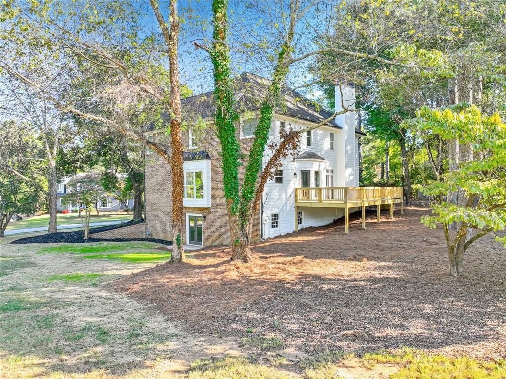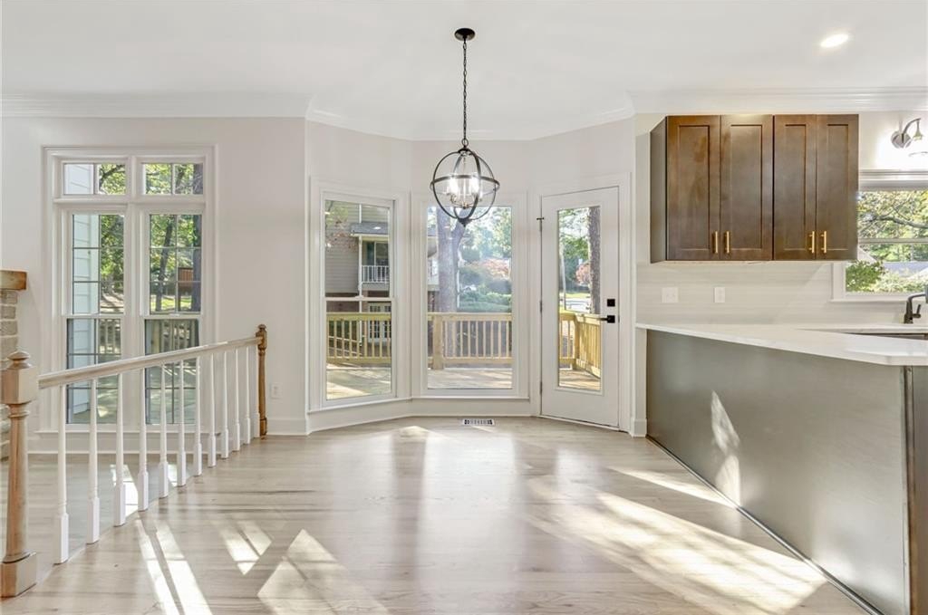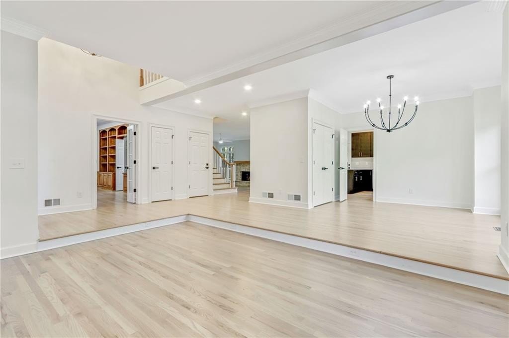 Completely remodeled modern home featuring two sunken living rooms and stunning designer finishes throughout. The all-new kitchen boasts quartz countertops, new cabinetry, stainless-steel appliances, and updated lighting fixtures. Hardwood floors flow through the main level and upstairs hallway, with new carpet in all bedrooms. A wet bar with new cabinet, sink, and quartz adds the perfect entertaining touch. Main level offers an office or bedroom plus full bath, ideal for guests or work-from-home. Upstairs features the primary suite with its own fireplace, plus three additional bedrooms. Enjoy three fireplaces total (all professionally re-stoned), fully remodeled bathrooms, a new deck, professionally landscaped yard and exterior, and a refreshed front stoop (cleaned and re-mortared). Unfinished basement provides room for future expansion. Move-in ready and beautifully updated inside and out this modern renovation truly has it all!