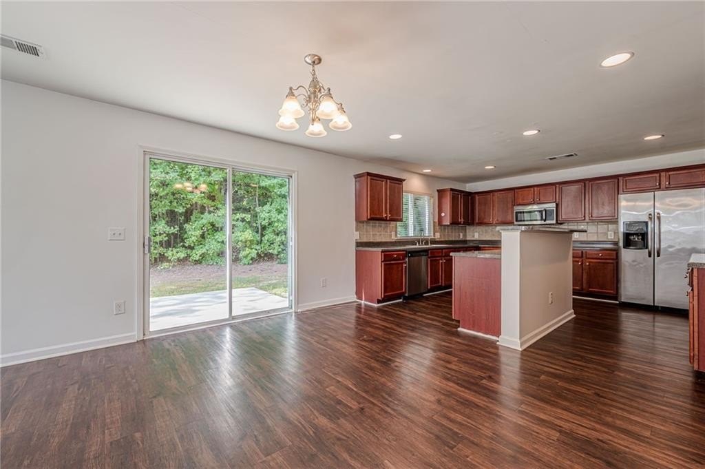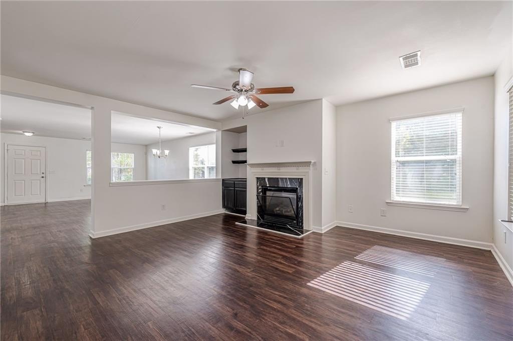 Well maintained home with open concept floor plan! As soon as you step inside you're greeted by open living and dining with luxury vinyl plank floors and bright walls. Possible dining or formal living is open to family room & kitchen. Entertainers delight! Family room has fireplace at the center with built in shelving that flows right into the kitchen. Large breakfast area next to the kitchen with island, stainless appliances & walk in pantry. Half bath & laundry room are tucked away on the main level. HUGE loft area used as a second living area on the upper level, great gaming area. Large primary suite with tray ceilings, primary bath with separate garden tub & shower. Two more secondary bedrooms make up the rest of the second floor and share a full bath. Private patio out back overlooks the flat and grassy backyard. Conveniently located to Publix, schools and dining.