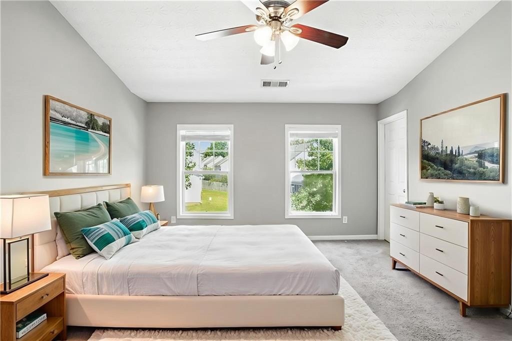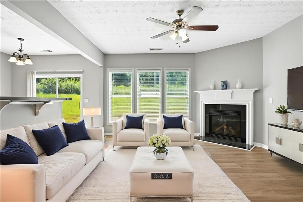 Welcome to this beautifully maintained 3-bedroom, 2.5-bath home in Prominence Pointe community. Step into the spacious, open-concept family room, where a cozy fireplace invites relaxation and a wall of large windows fills the space with abundant natural light. Just off the family room, a generous formal dining room offers the perfect setting for gatherings with family and friends. The bright, eat-in kitchen features updated appliances—including a brand-new microwave—plenty of cabinet and counter space, and a practical layout that seamlessly connects to both the family room and breakfast area. A sunlit breakfast room overlooks the expansive backyard—a true delight for morning coffee or casual meals. Upstairs, a generous loft offers flexible space ideal for a home office, fitness area, or playroom. The oversized primary suite is a private retreat, complete with a large walk-in closet and a spacious ensuite bathroom. Two additional bedrooms are well-sized and perfect for family members or guests. Recent updates include brand-new carpet on the upper level, stylish new flooring throughout the main level, modern light fixtures, and new blinds throughout. Community amenities include a swimming pool and tennis court, and the location is unbeatable—close to top-rated schools, parks, shopping, dining, and major highways. With no rental restrictions, this property presents a fantastic opportunity for both homeowners and investors alike.