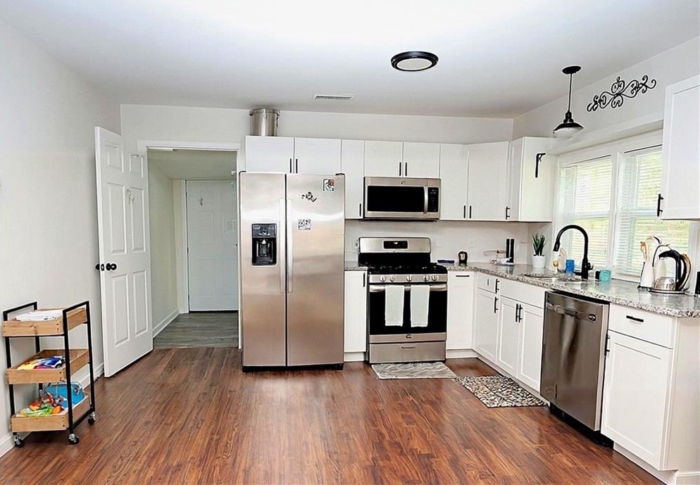 The epitome of open-concept living! Recently renovated and set on just over an acre, this home features LVP flooring throughout, granite countertops, and a fully updated kitchen and baths. The spacious primary suite offers a walk-in closet and beautiful en-suite. Major upgrades include new windows, HVAC, roof, and water heater. Enjoy a new back deck with a mudroom/laundry area, front and rear drive entrances, detached garage, outbuilding, and a state-of-the-art water purification system. Move-in ready and full of modern charm!