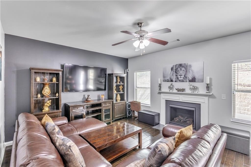 Situated on a 0.23-acre lot, the home provides a manageable yard, ample enough for outdoor activities, entertaining, or gardening, yet not overwhelming to maintain. Abundant natural lighting enhances the welcoming atmosphere throughout the home, creating bright and inviting living spaces. The oversized owner’s suite stands out with its generous dimensions and an exceptionally large walk-in closet, perfect for extensive wardrobes and added storage.