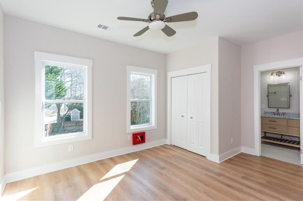 NEW CONSTRUCTION Step into this thoughtfully designed for modern living and timeless comfort. The spacious main level boasts an open-concept family and dining room, seamlessly flowing into a chefs dream kitchen. You'll love the oversized island, GIANT walk-in pantry, pot filler, premium stainless steel appliances and a gas range that's perfect for culinary enthusiasts. A cozy keeping room with a fireplace adds the perfect touch of warmth and charm. a generously sized bedroom on main floor includes a private en-suite bath. Ideal for guests or a home office. You'll also find a stylish half bath on the main level for added convenience. Tons of natural light and 10 foot ceilings. Upstairs, two spacious secondary bedrooms share a well appointed Jack-and-Jill bathroom with double vanities. The luxurious owners suite is truly a retreat, featuring dual walk-in closets and a spa inspired bathroom that feels like a five-star getaway. Enjoy outdoor living on the classic rocking chair front porch or entertain on the large back deck. A big storage shed provides plenty of space for tools and gear. Perfectly located just minutes from Hartsfield Jackson Airport, Delta HQ, Porsche Experience Center, Woodward Academy, Tyler Perry Studios and all major Atlanta Highways. This home truly has it all.
