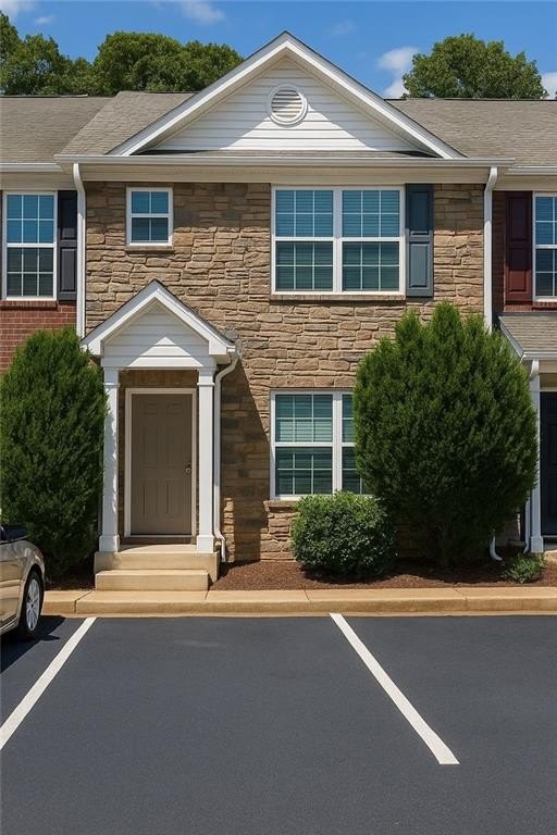 Investor-owned opportunity! This 2 BR, 2.5 Bath condominium/townhome is perfectly situated just minutes from I-285, Cascade, Downtown Atlanta, and Hartsfield-Jackson International Airport. Featuring a roommate floor plan, the primary suite includes a spacious bath with double vanities. The main level offers a separate dining room, a cozy family room with fireplace, and a bright kitchen with oak cabinets, black appliances, and pantry. Flooring includes a mix of linoleum in the kitchen and easy-to-maintain carpet throughout. Enjoy peace of mind with exterior building maintenance included in the HOA dues, covering roof, siding, and landscaping.