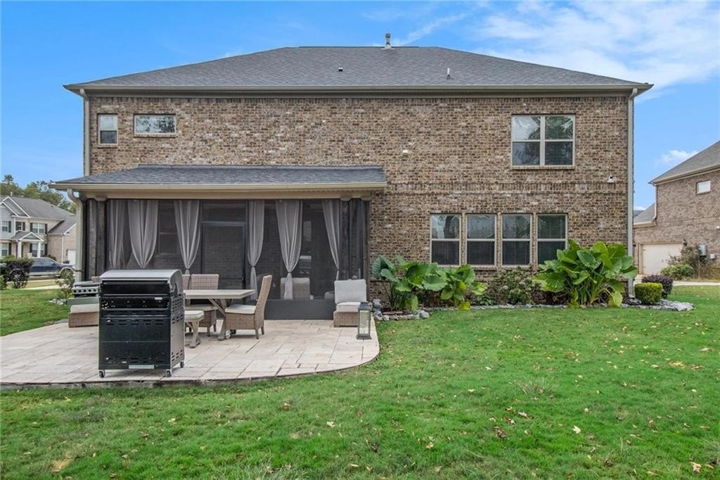 Welcome to this elegant home in a highly desirable McDonough Community! A beautifully maintained residence that perfectly blends space, style, and comfort. This impressive home offers 5 spacious bedrooms and 4 bathrooms, providing plenty of room for both relaxation and entertainment. Step inside to discover a bright and open floor plan with soaring ceilings, hardwood floors, and abundant natural light from ceiling to floor windows. Formal living room, dining room, and family room, complete with a cozy fireplace, makes the perfect spot for gathering. The gourmet kitchen is a chef’s dream, featuring granite countertops, a large island, all stainless-steel appliances included, large walk-in pantry, and ample cabinetry. The over-sized owner’s suite is a true retreat, boasting a spa-like bathroom with a soaking tub, separate shower, and dual vanities. Secondary bedrooms are generously sized, ideal for family, guests, or a home office. Spacious laundry room upstairs for added convenience. Enjoy outdoor living on the private patio overlooking the landscaped backyard perfect for morning coffee, evening relaxation or entertaining family and friends. Located in a sought-after neighborhood with convenient access to schools, shopping, great dining options, and major highways, this home offers both luxury and convenience.