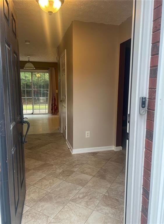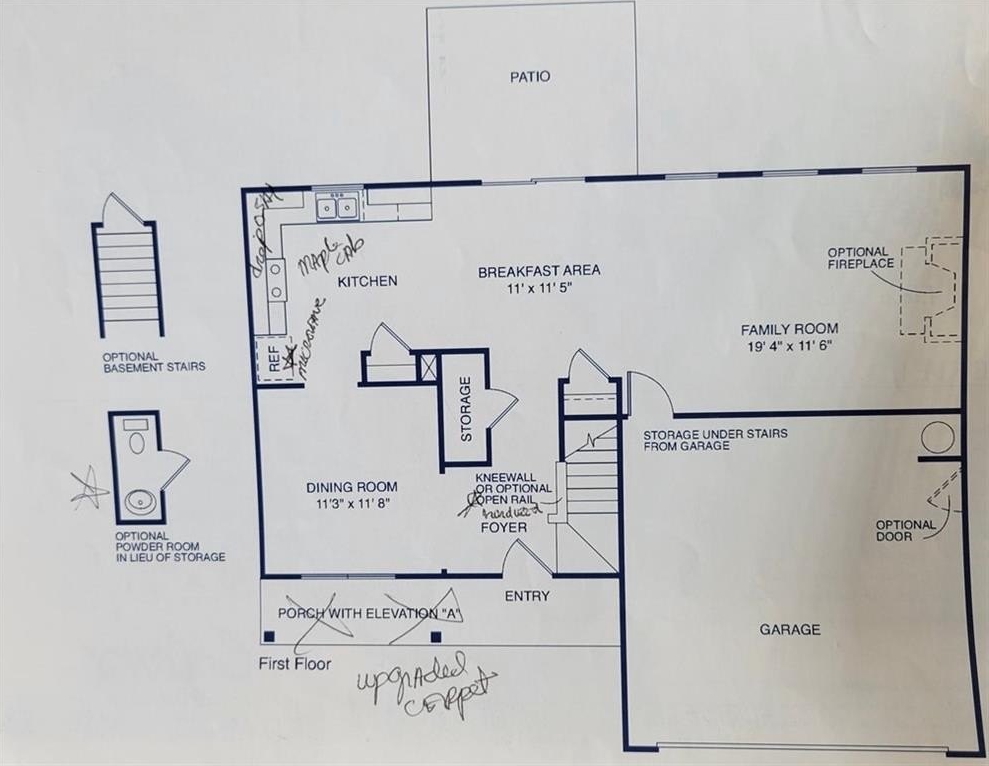 plenty of potential. The home features a welcoming foyer with marble tile flooring that extends into the half bath,