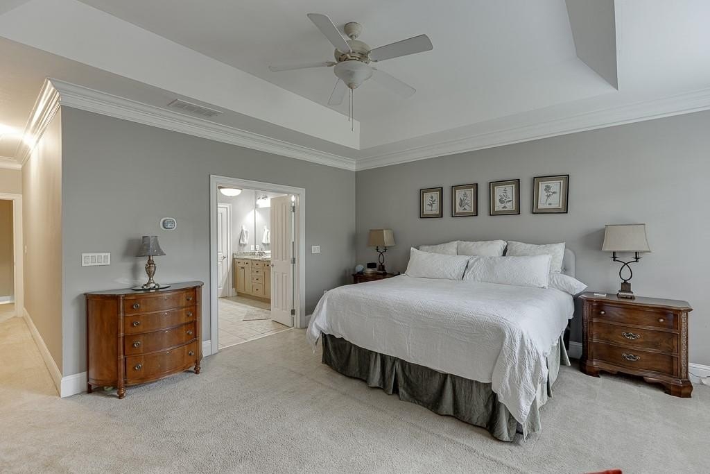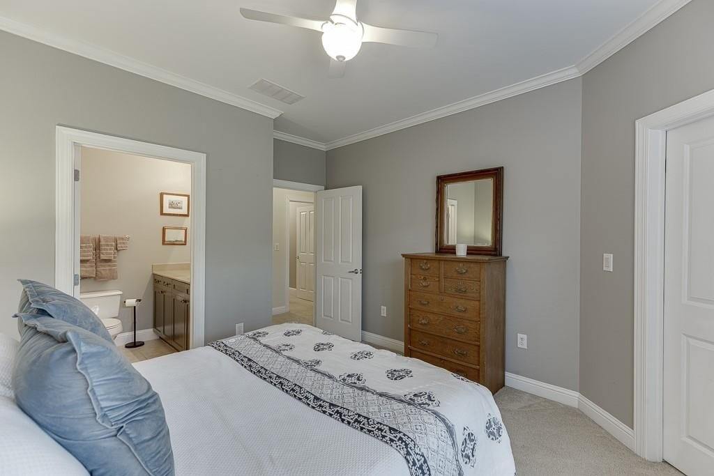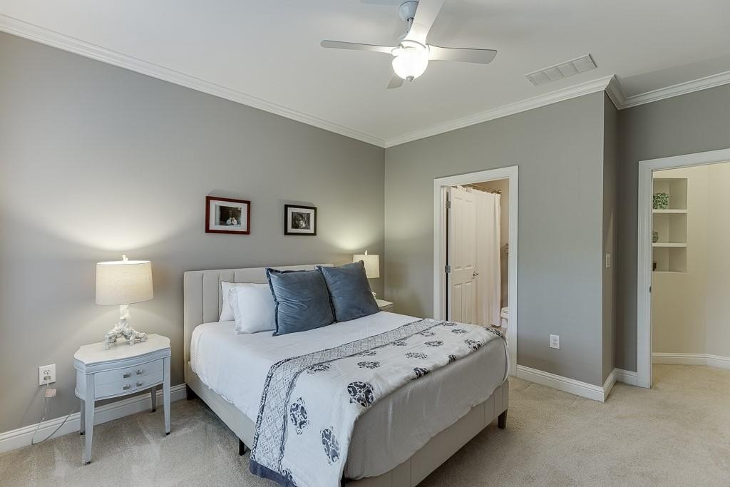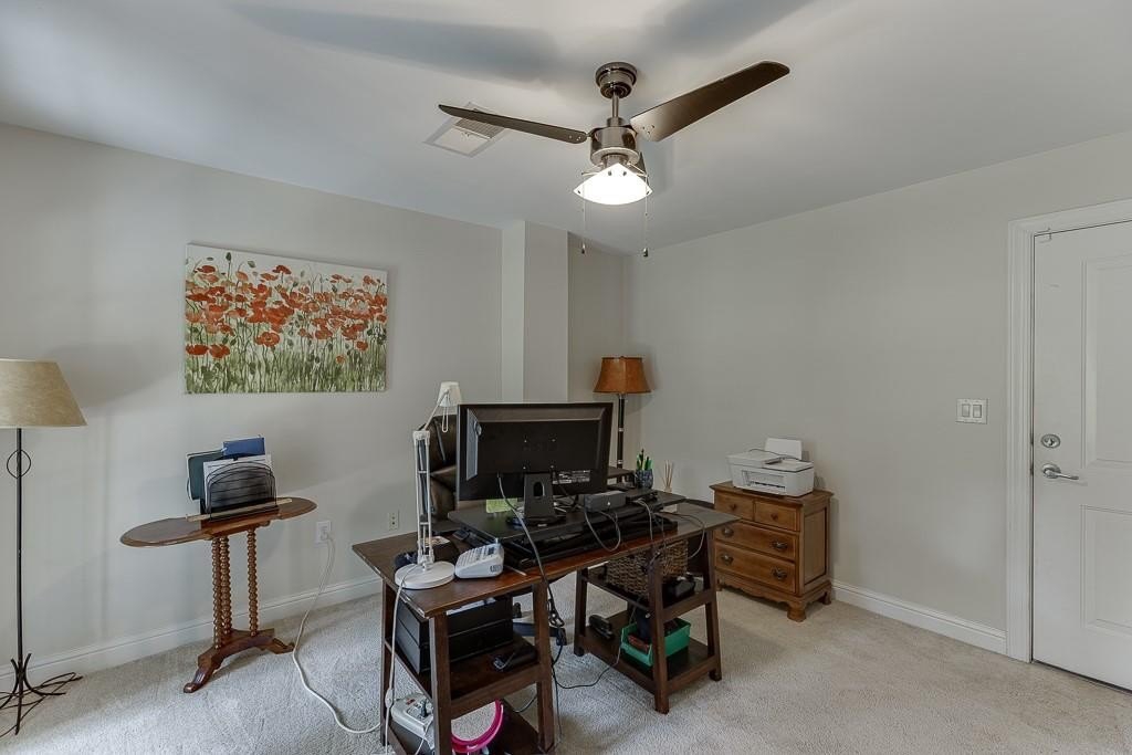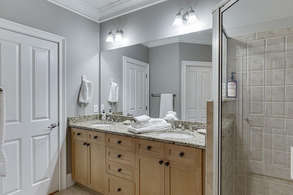 On the upper level is the over sized primary suite, which is large enough to create an office or lounging space. The en-suite bathroom has dual vanities with granite counter tops, a whirlpool tub and separate tiled shower, a water closet, and a spacious walk-in closet. The secondary upper bedroom also has a walk-in closet and an attached private full bathroom. On the ground level, there is a third bedroom with a large walk-in closet, access to the garage, and a private patio out back. This unit also has a 2 car tandem garage.