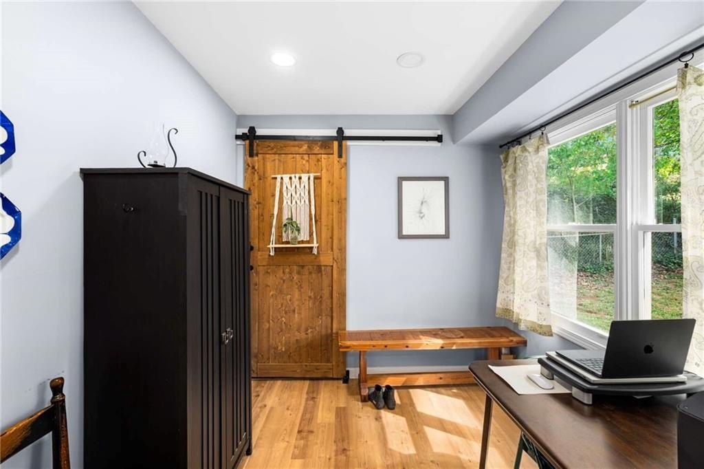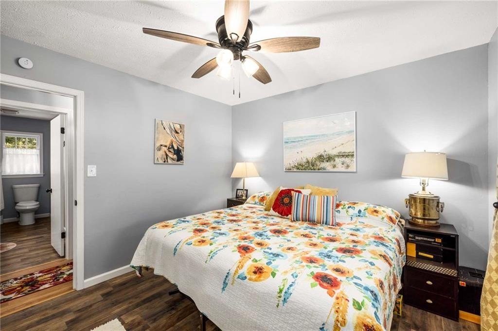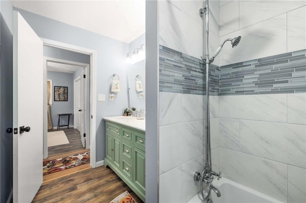 As you stroll down the hallway, you'll find a beautifully renovated shared bath adorned with a double vanity and rich designer green cabinetry, alongside two sizable additional bedrooms. The private owner’s suite, located in the back left corner, is a true retreat, featuring custom cabinetry in the closet and a luxurious en-suite bathroom with a warm wood vanity, quartz countertop, and a chic glass-enclosed shower. Outside, enjoy your own private oasis in the fully fenced backyard, complemented by a two-car carport for modern convenience. Additional highlights include custom window blinds in the living room, a brand-new hot water heater installed in 2023, sump pump, and a roof that’s only four years old. Embrace the vibrant lifestyle of downtown Lilburn, where shopping, restaurants, parks, festivals, and a sense of community await! Don’t miss out on this exceptional opportunity to call this stunning property home!