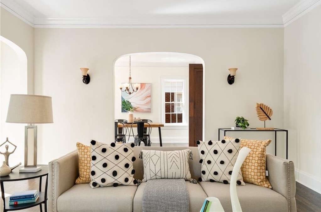 This Beltline-adjacent home, with architectural details and thoughtful updates, creates a rare blend of historic character and modern livability. From the moment you arrive, the graceful arches of the open-air corner porch invite you in and are echoed by arched doorways that flow from room to room inside. The interior showcases original hardwood floors throughout the main living areas and bedrooms, while large windows fill each space with natural light.