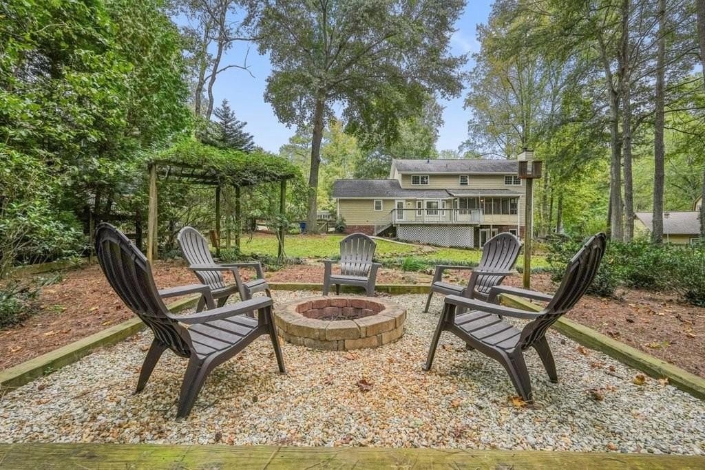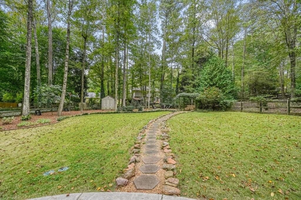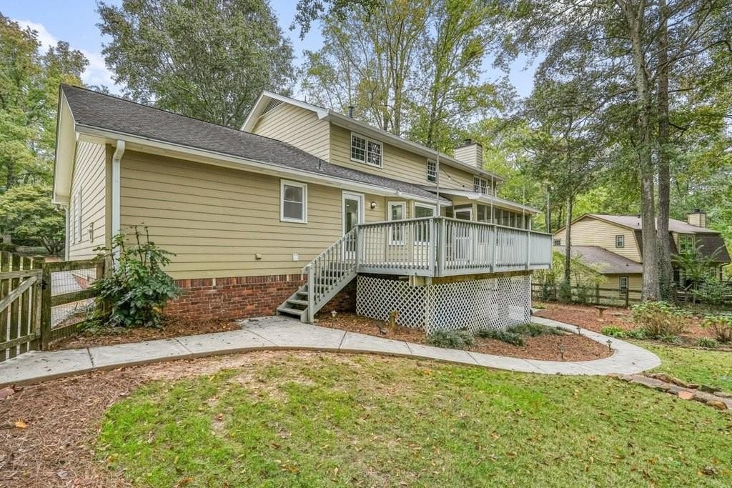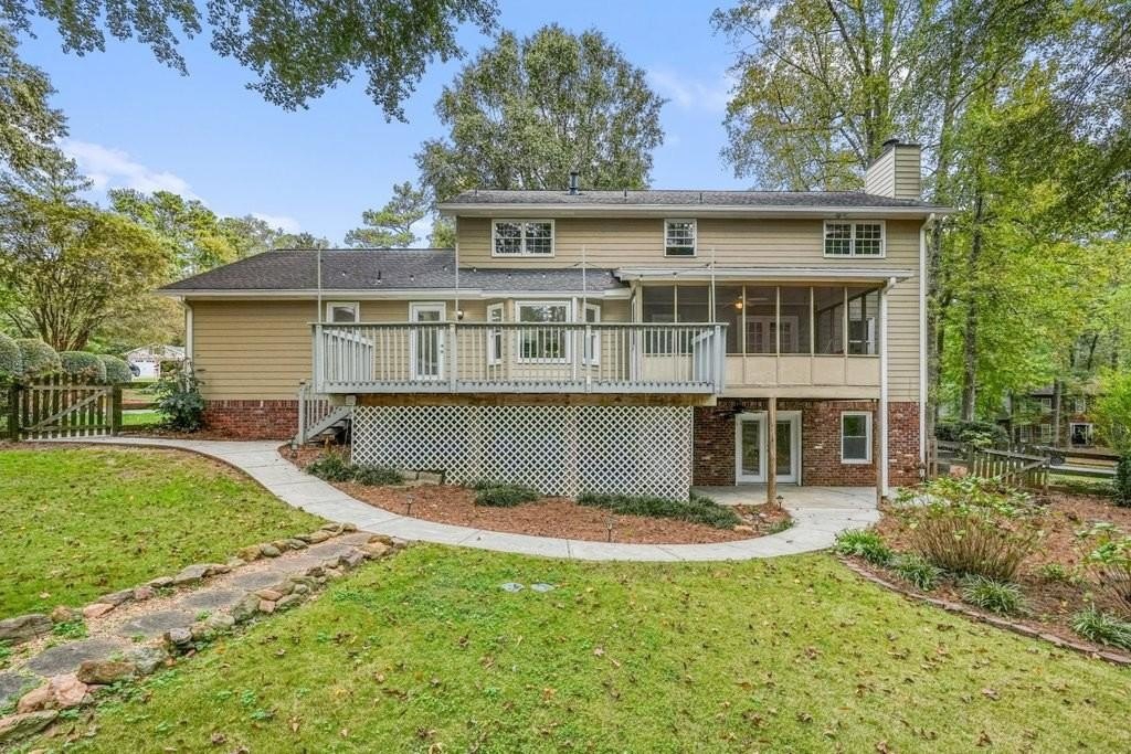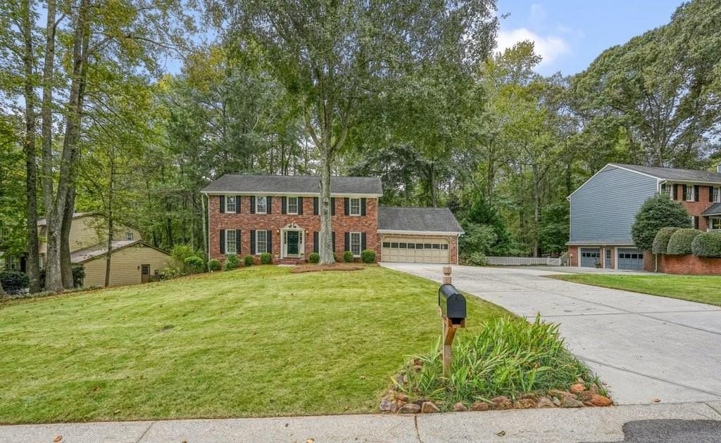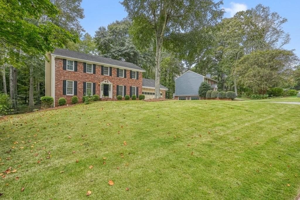 This is the home you've been waiting for -Brick beauty in the heart of East Cobb / Pope HS district with walkability to Tritt ES school and all of the amazing amenities that Chimney Springs offers - playground, pool, tennis courts, clubhouse and lake! Special feature include flat half acre lot, two fully equipped kitchens and two equipped laundry areas! Newer, extended driveway with parking pad and sidewalks make a good first impression. Backyard gate opens to a rare & sought after park-like lawn with stone paths leading to a vine shaded swing, built-in firepit and solid storage shed, with multiple zone irrigation system, Rainbird timer and path lighting. A nice deck and screen porch overlooks the scenic yard. An updated sunny white kitchen with stone counters, gas range, framed vent hood, large island and pantry. It will be a spending time in a spacious laundry room adjacent to the kitchen, with a second walk-in pantry and a roomy built-in table with a stone top, ideal for folding clothes, wrapping gifts or other projects. Hardwood floors run through the main level living & dining spaces. Primary suite and 3 secondary bedrooms are located on second floor. Primary bath features a newer vanity with stone top and frameless glass shower. The secondary bath is a generous size with double sinks and stone counter and 2 decorative mirrors. Basement is completely finished and could be a guest suite / apartment boasting a full kitchen, living area, bedroom, flex room, full bath and the second laundry room. Yes! the home comes with two laundry spaces and two washer & dryer sets. Exterior entrance is a step-out to the patio with a newe double door with built-in blinds. Great location, sought after school district, amenity-rich community, park-like backyard, 2 kitchens, 2 laundry rooms, spacious & bright living spaces - this home has it all!