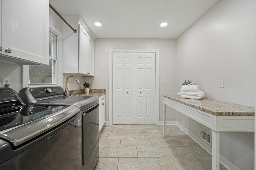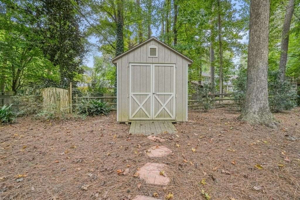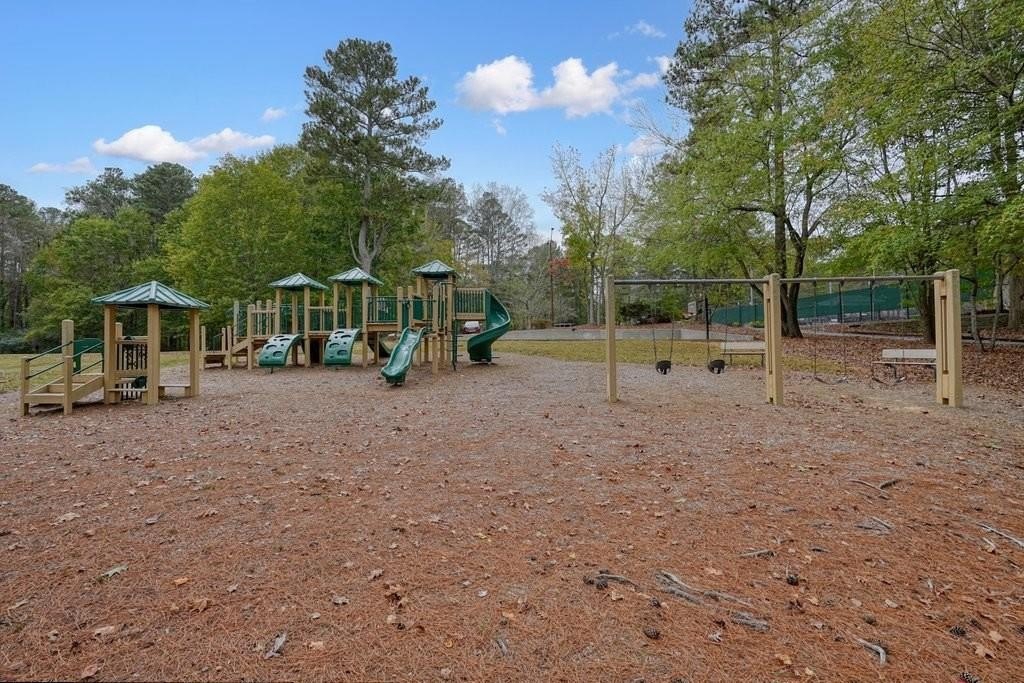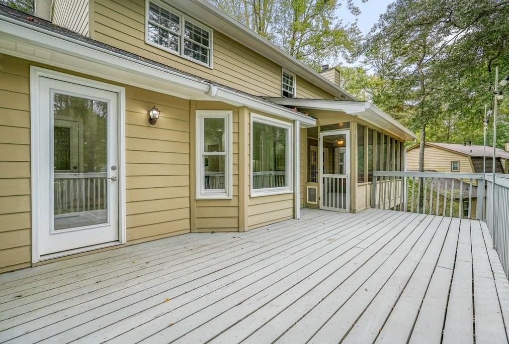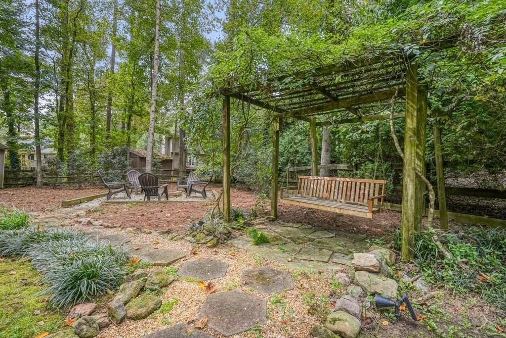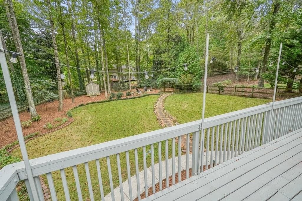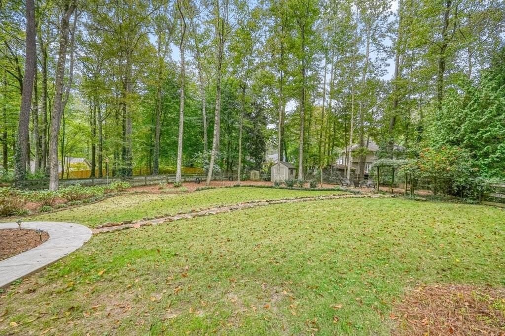 This is the home you've been waiting for -Brick beauty in the heart of East Cobb / Pope HS district with walkability to Tritt ES school and all of the amazing amenities that Chimney Springs offers - playground, pool, tennis courts, clubhouse and lake! Special feature include flat half acre lot, two fully equipped kitchens and two equipped laundry areas! Newer, extended driveway with parking pad and sidewalks make a good first impression. Backyard gate opens to a rare & sought after park-like lawn with stone paths leading to a vine shaded swing, built-in firepit and solid storage shed, with multiple zone irrigation system, Rainbird timer and path lighting. A nice deck and screen porch overlooks the scenic yard. An updated sunny white kitchen with stone counters, gas range, framed vent hood, large island and pantry. It will be a spending time in a spacious laundry room adjacent to the kitchen, with a second walk-in pantry and a roomy built-in table with a stone top, ideal for folding clothes, wrapping gifts or other projects. Hardwood floors run through the main level living & dining spaces. Primary suite and 3 secondary bedrooms are located on second floor. Primary bath features a newer vanity with stone top and frameless glass shower. The secondary bath is a generous size with double sinks and stone counter and 2 decorative mirrors. Basement is completely finished and could be a guest suite / apartment boasting a full kitchen, living area, bedroom, flex room, full bath and the second laundry room. Yes! the home comes with two laundry spaces and two washer & dryer sets. Exterior entrance is a step-out to the patio with a newe double door with built-in blinds. Great location, sought after school district, amenity-rich community, park-like backyard, 2 kitchens, 2 laundry rooms, spacious & bright living spaces - this home has it all!