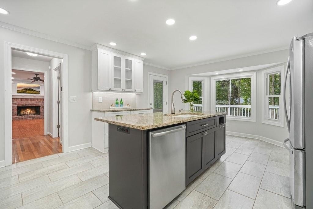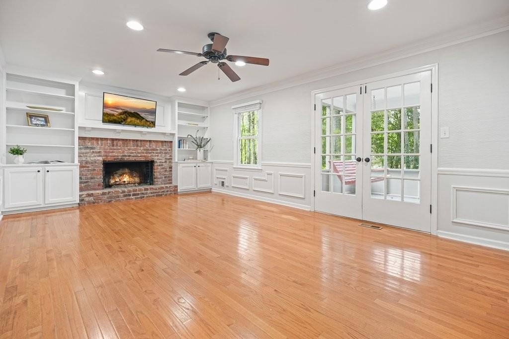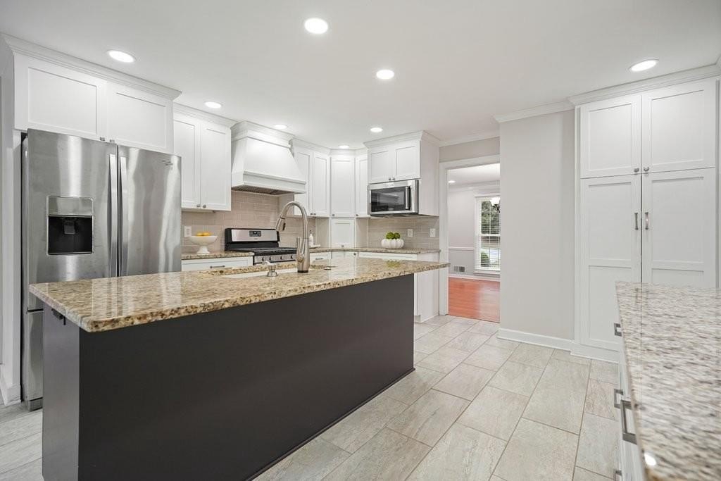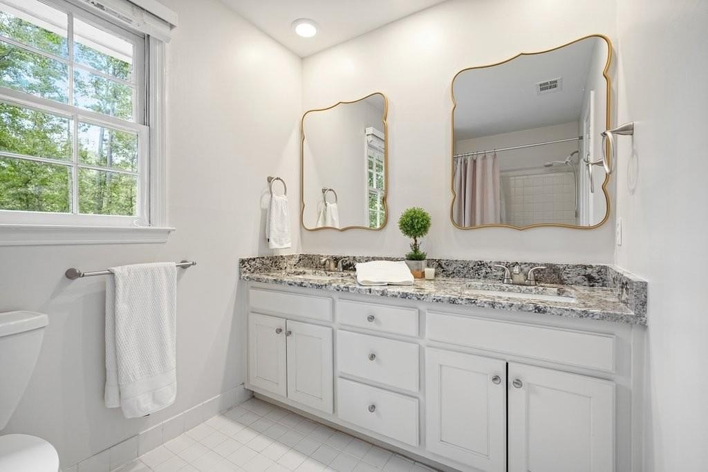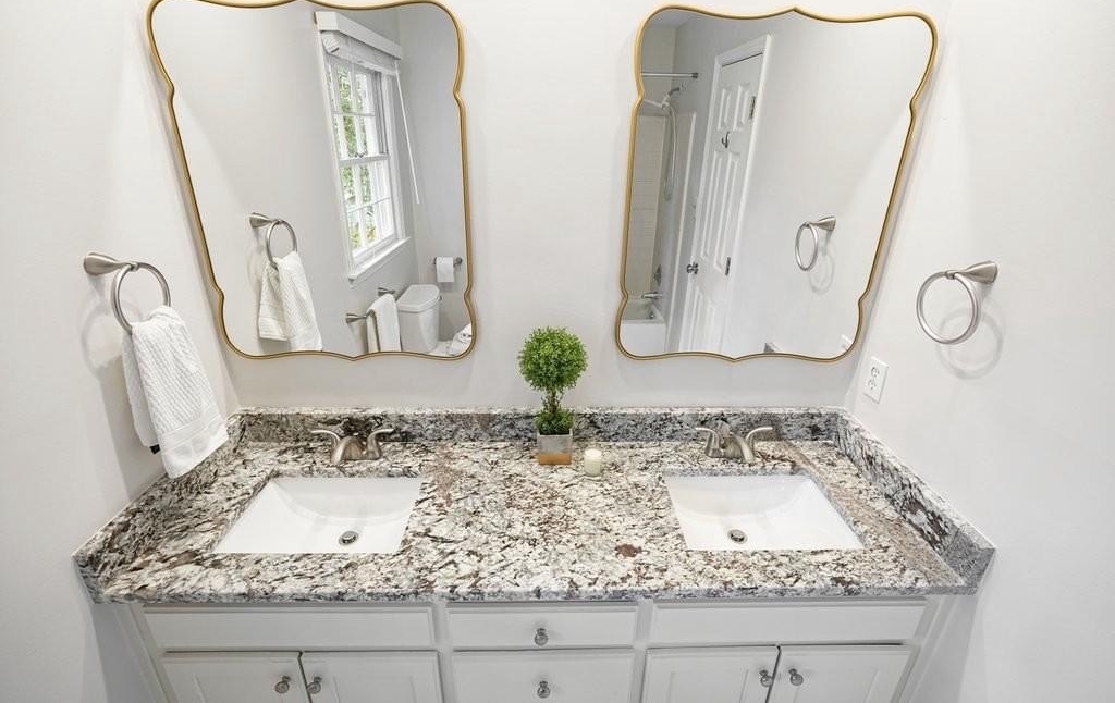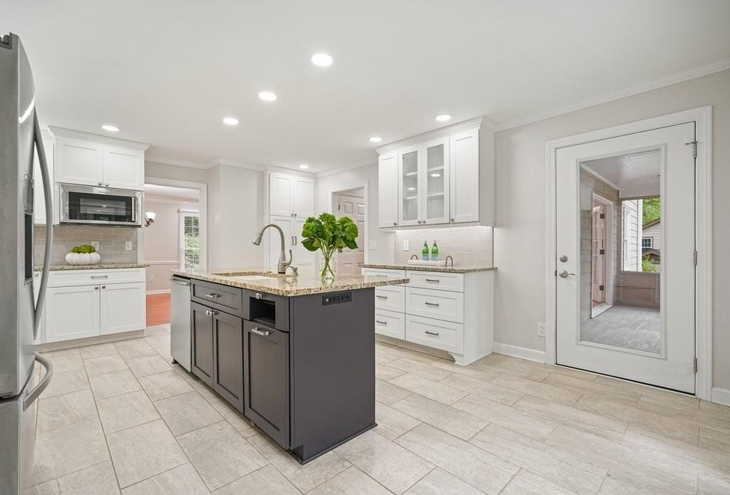 This is the home you've been waiting for -Brick beauty in the heart of East Cobb / Pope HS district with walkability to Tritt ES school and all of the amazing amenities that Chimney Springs offers - playground, pool, tennis courts, clubhouse and lake! Special feature include flat half acre lot, two fully equipped kitchens and two equipped laundry areas! Newer, extended driveway with parking pad and sidewalks make a good first impression. Backyard gate opens to a rare & sought after park-like lawn with stone paths leading to a vine shaded swing, built-in firepit and solid storage shed, with multiple zone irrigation system, Rainbird timer and path lighting. A nice deck and screen porch overlooks the scenic yard. An updated sunny white kitchen with stone counters, gas range, framed vent hood, large island and pantry. It will be a spending time in a spacious laundry room adjacent to the kitchen, with a second walk-in pantry and a roomy built-in table with a stone top, ideal for folding clothes, wrapping gifts or other projects. Hardwood floors run through the main level living & dining spaces. Primary suite and 3 secondary bedrooms are located on second floor. Primary bath features a newer vanity with stone top and frameless glass shower. The secondary bath is a generous size with double sinks and stone counter and 2 decorative mirrors. Basement is completely finished and could be a guest suite / apartment boasting a full kitchen, living area, bedroom, flex room, full bath and the second laundry room. Yes! the home comes with two laundry spaces and two washer & dryer sets. Exterior entrance is a step-out to the patio with a newe double door with built-in blinds. Great location, sought after school district, amenity-rich community, park-like backyard, 2 kitchens, 2 laundry rooms, spacious & bright living spaces - this home has it all!