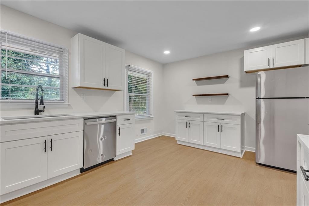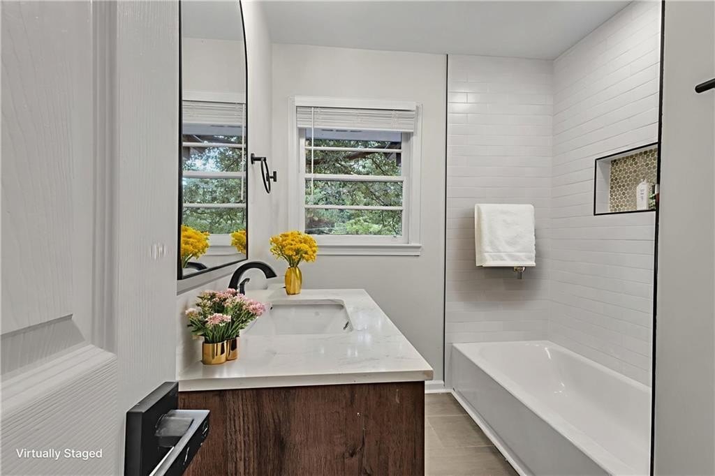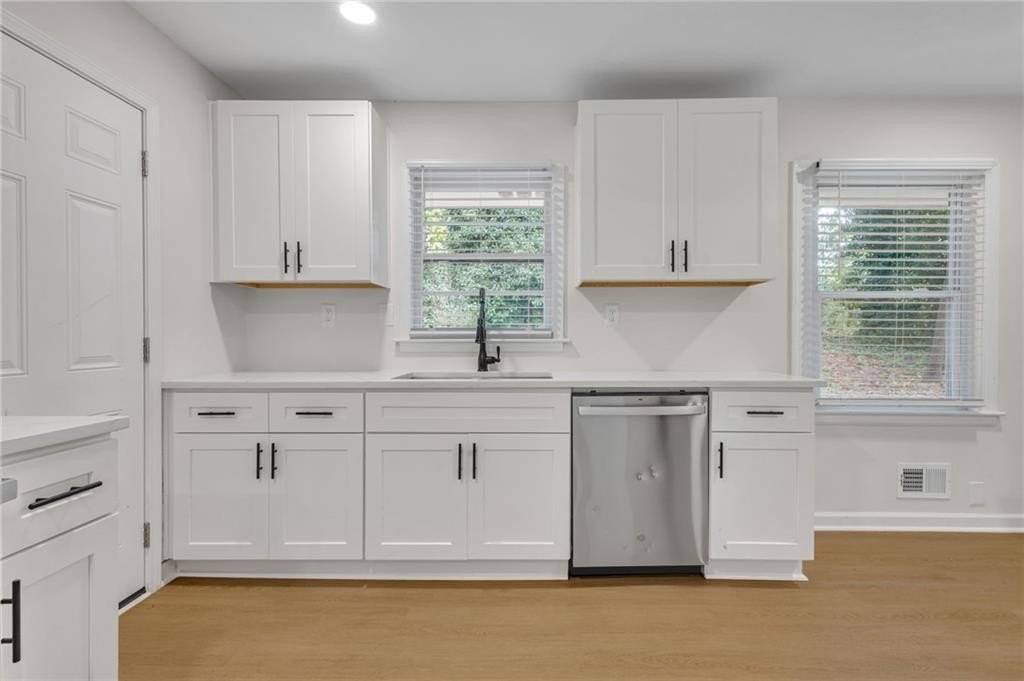 Special Financing Options Available - Amazing Finishes and Upgrades you can't find elsewhere under $300k - Welcome to 3147 Bellgreen Way: a beautifully renovated, high-end residence nestled in the charming Eastdale neighborhood of Candler-McAfee in Decatur set back nicely off the street. This turnkey 4 sided brick home has been meticulously transformed inside and out, top to bottom, offering a modern, move-in-ready retreat for homeowners or an excellent opportunity for investors seeking strong rental income potential. From the outside you are amazed with a contemporary look with clean lines, wood trim and a wonderful carport with extra storage/utility. Step inside to an inviting open layout filled with natural light and elevated finishes throughout. The home features new laminate light wood tone flooring, a stunning and show-stopping quartz waterfall peninsula/breakfast bar, quartz countertops, a beautiful bar/coffee bar area, stainless steel appliances, recessed lighting, and stylish bathroom vanities. The primary en-suite bath boasts an impeccably designed walk-in shower, creating a true spa-like experience. The secondary bathroom includes a shower/tub combo. Thoughtfully designed, the floor plan includes a spacious living, three bedrooms and two full baths. Priced for you to bring your own ideas to improve the backyard to enjoy outdoor living then relaxing with your favorite beverage, or gather with friends and family. Significant upgrades provide peace of mind including a new roof. Easy access to I-285, I-20, Glenwood Ave, Memorial Drive, and Downtown Atlanta. 10 minutes to East Lake Golf Club and 20 minutes to Hartsfield-Jackson International Airport. Qualified buyers may be eligible for $0 down payment with no PMI or $7,500 in closing cost grants for first-time buyers (no homeownership in the past 3 years). Don’t miss this rare opportunity to own a beautifully finished home in one of Decatur’s most convenient neighborhoods. Investors - This can be purchased as a portfolio along with additional properties - no rental restrictions - no HOA.