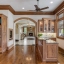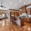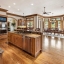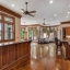 The chef’s kitchen is both beautiful and functional, featuring a large island, custom cabinetry, warming drawer, butler’s pantry, and an additional wet bar. A private office on the main level provides an ideal space to work from home.