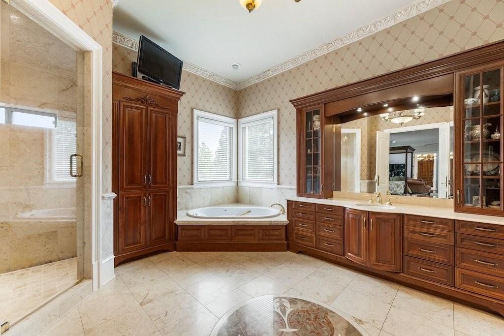 Outside, resort-style amenities await. Enjoy an outdoor kitchen, heated inground pool, spa with waterfall, and multiple decks overlooking the water. A 5,000-gallon koi pond with advanced filtration and 40 koi fish adds a serene finishing touch.
