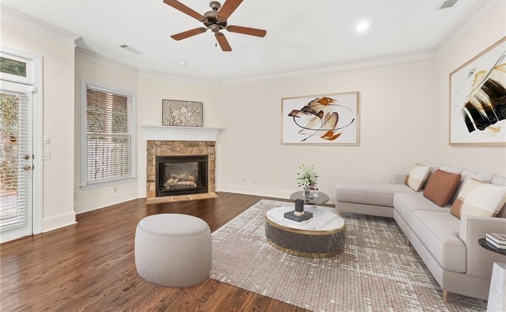 second bedroom is perfect for guests and a home office. The half bath on the main level adds convenience for guests. Perfect blend of privacy and proximity to all the amenities Smyrna-Vinings has to offer, as well as award winning schools and brand new Northside Medical. Enjoy convenience just moments away from popular shopping destinations of Vinings Village, Ivy Walk and West Village, where you’ll find everything from trendy boutiques and restaurants to well-known retailers. For outdoor enthusiasts, Jonquil Park and the Silver Comet Trail are just a short drive away, offering green space, walking trails, and