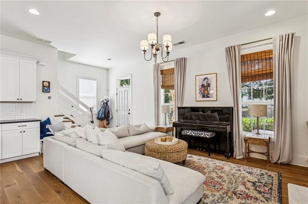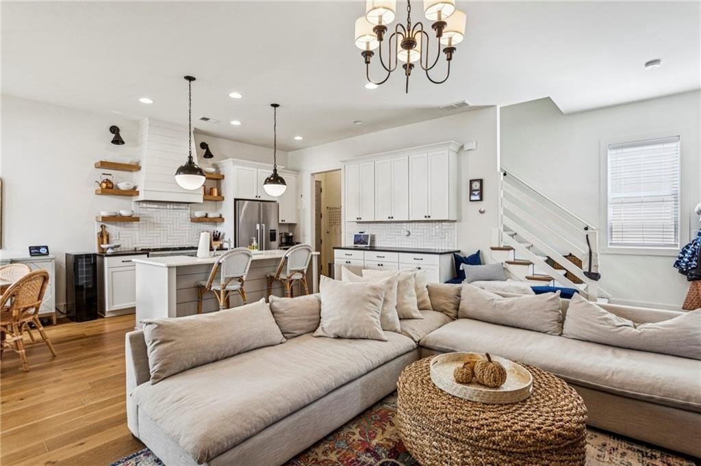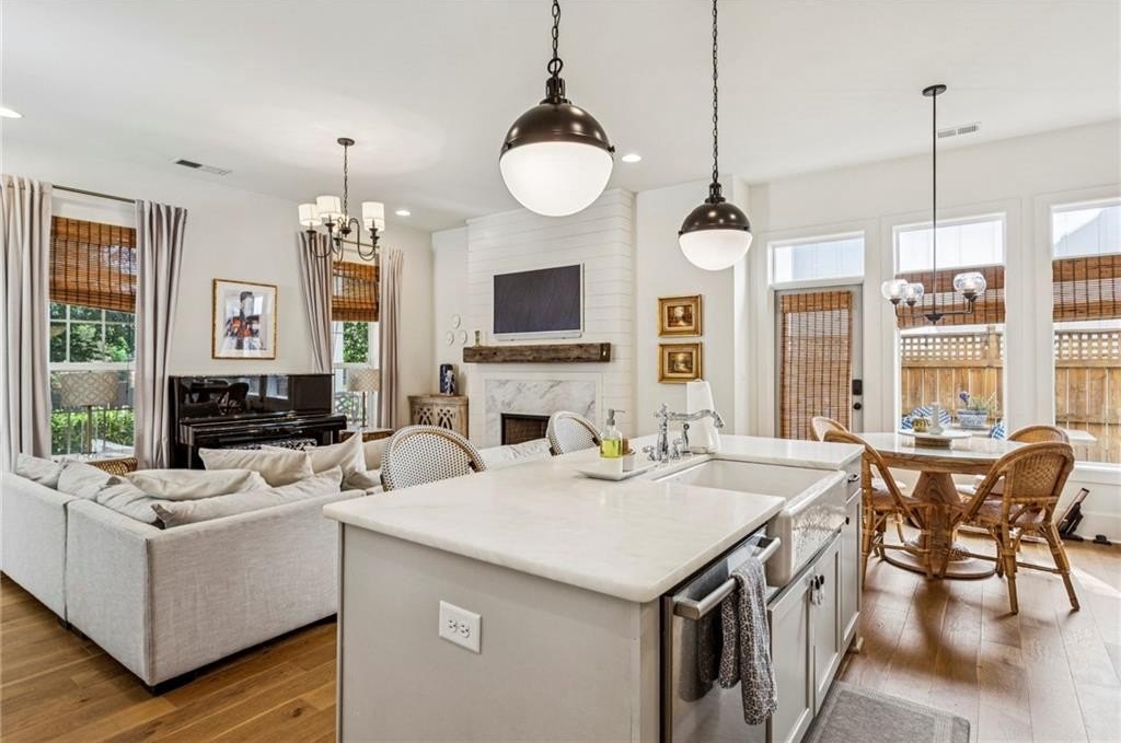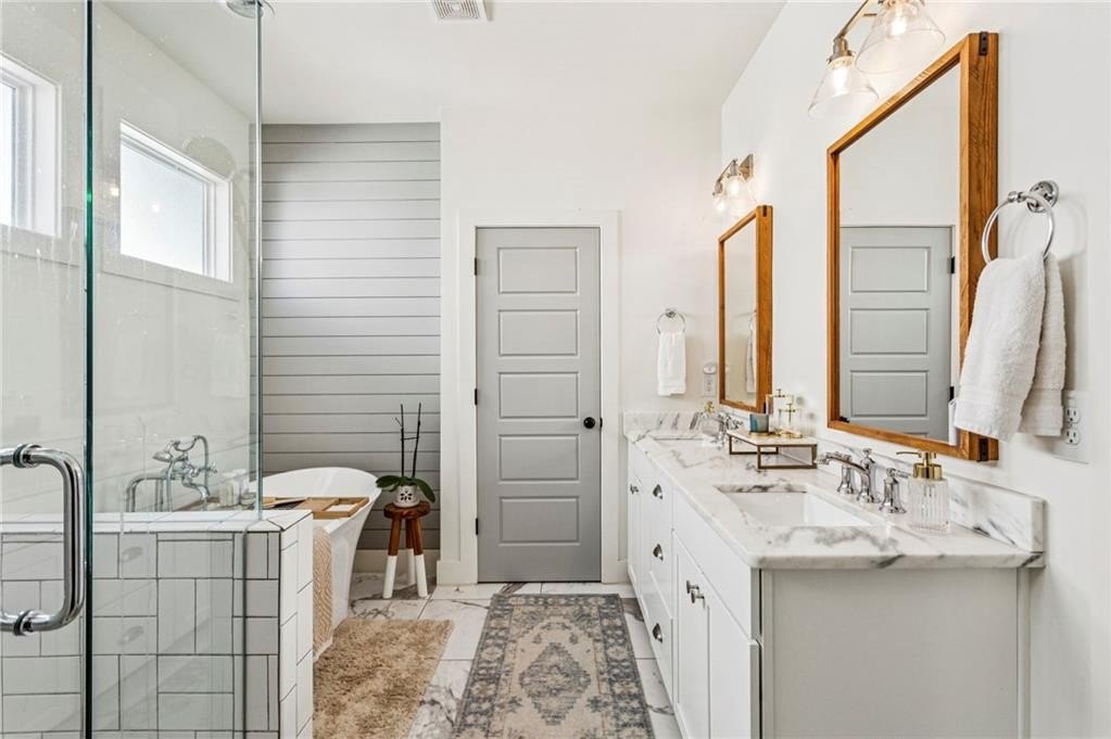 Walk to Smyrna Market Village and enjoy fast trips to The Battery Atlanta at Truist Park and the Silver Comet Trail, with I-285 and I-75 just minutes away. Tucked inside The Village at Williams Park, this inviting craftsman farmhouse pairs classic curb appeal with a bright, open layout made for everyday living and effortless entertaining. The kitchen is the heart of the home with a large island, stone counters, double ovens, a gas cooktop, and a clear view into the fireside family room so everyone stays connected. A flexible upstairs loft provides that extra room you need for a playroom, home office, or media lounge. The primary suite features a relaxing bath with a soaking tub, double vanity, and a generous walk-in closet. Three additional bedrooms, two more full baths, and an upstairs laundry keep life organized. Outdoor living includes a welcoming front porch, an upper balcony, and a private, level backyard with a patio perfect for grilling and dining. Thoughtful finishes include durable cement-siding construction, hardwood and tile flooring, and insulated windows. Sidewalks and street lights make it easy to enjoy nearby parks, schools, shopping, and local dining. Move-in ready and beautifully maintained, this Smyrna home delivers comfort, convenience, and a true in-town lifestyle in Cobb County.