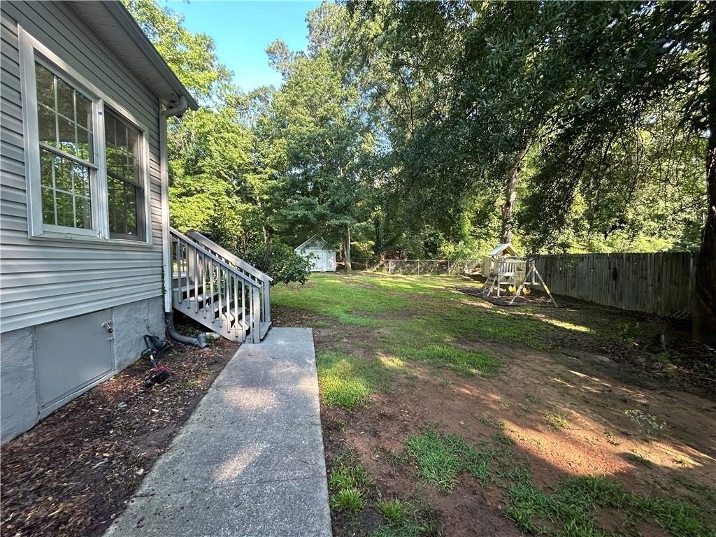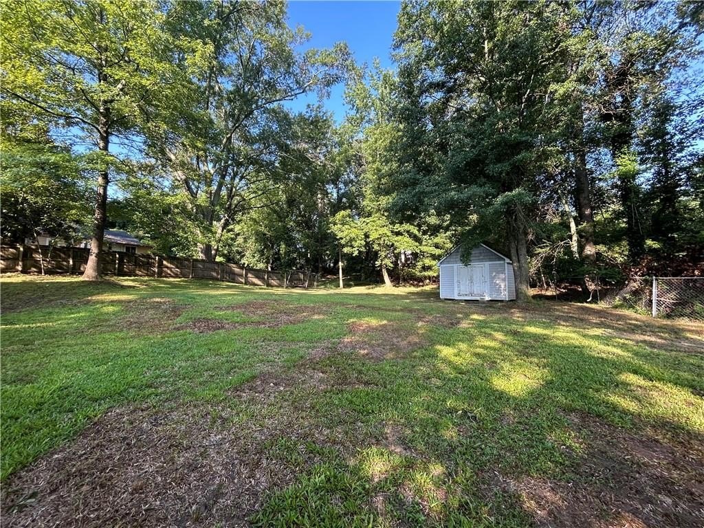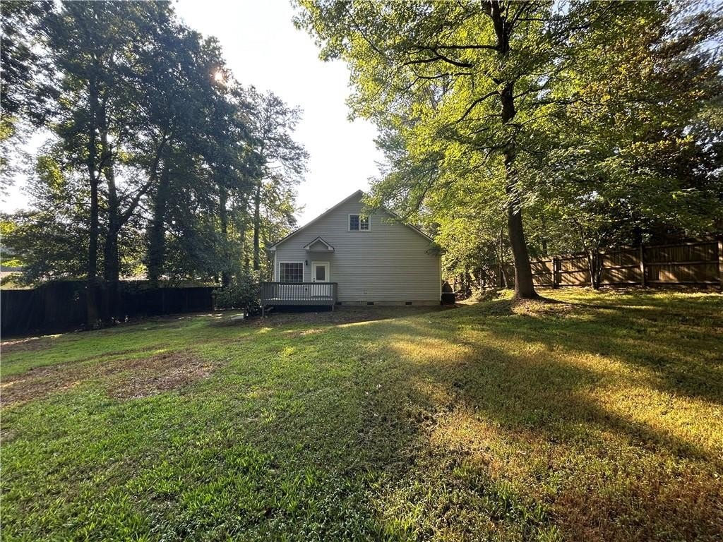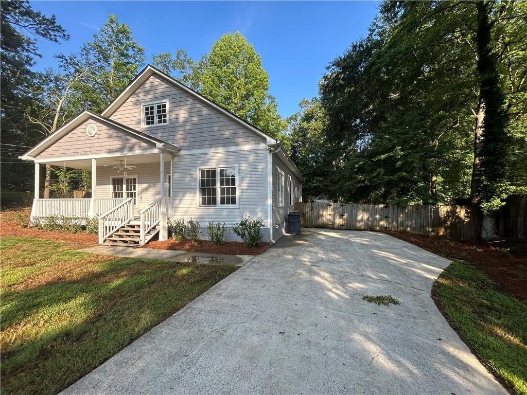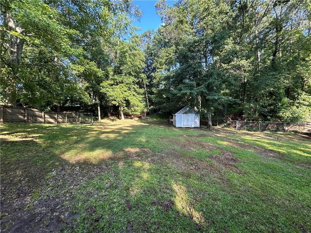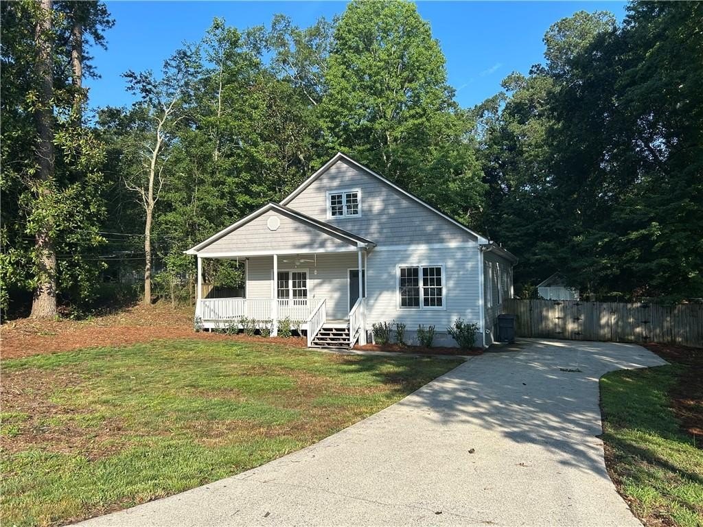 Welcome to this Charming Bungalow! Located on a HUGE lot of 0.86 acres with close proximity to the picturesque historic Acworth! HARDWOOD flooring on the main floor and in the MASTER suite upstairs! Plenty of space for storage if needed! All NEW luxury vinyl marble tile in the kitchen as well as all bathrooms and laundry room! Updated kitchen includes GRANITE counter tops, STAINLESS STEEL appliances, island, and desk area. NEW FLOORING in all ground floor bedrooms! Fresh NEW INTERIOR paint throughout entire home and NEW EXTERIOR paint on the backyard deck! With another MASTER suite on the GROUND floor and 2 additional bedrooms, the home also features 2 more FULL baths. Huge PRIVATE level backyard with separate storage building. Completed encapsulation of crawlspace Oct 2025. Take a walk and enjoy the friendly and serene atmosphere of the surrounding neighborhood. Relax on front porch, hang out on your backyard deck, enjoy the convenience of close-by shopping, or appreciate an active lifestyle on the lake! NO HOA; therefore, NO rental restrictions! Sold As-Is.