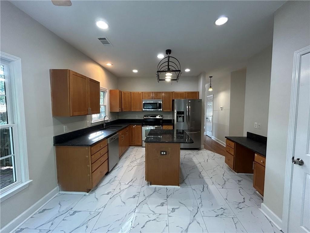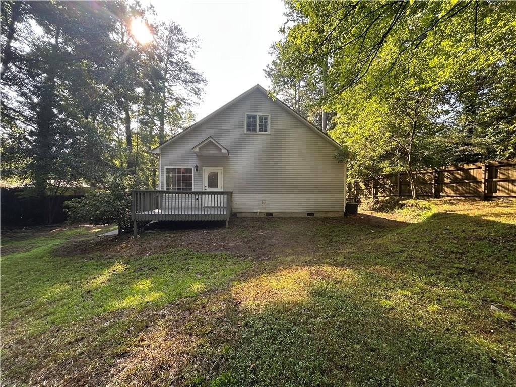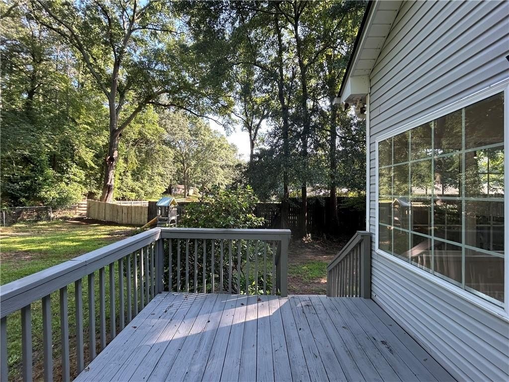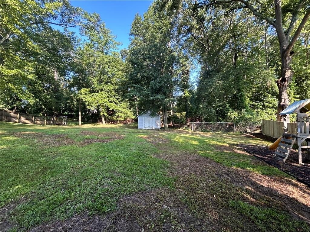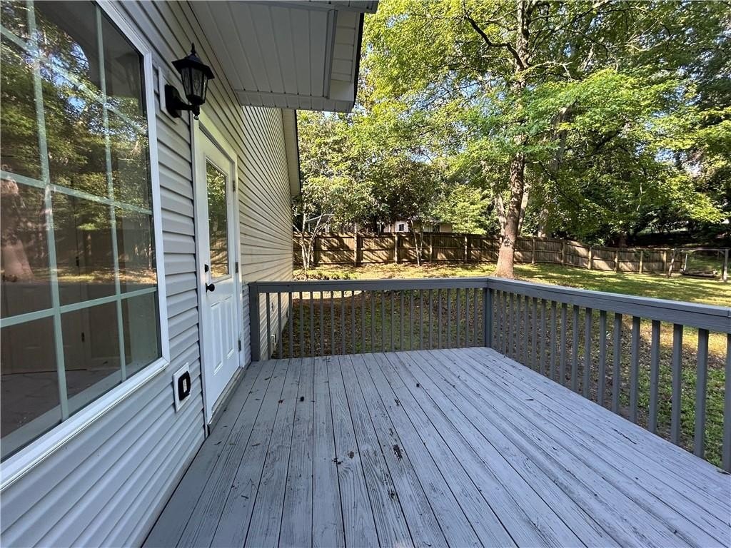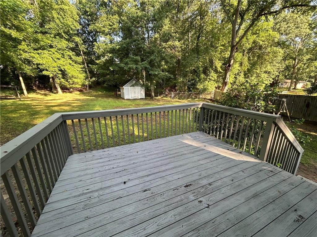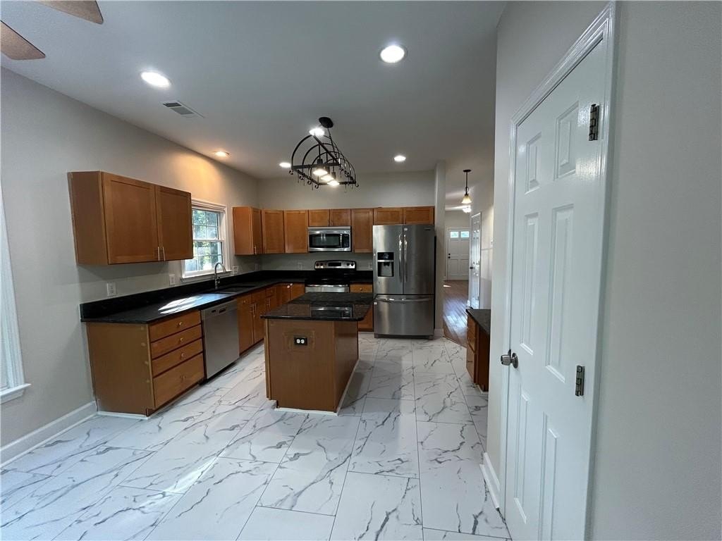 Welcome to this Charming Bungalow! Located on a HUGE lot of 0.86 acres with close proximity to the picturesque historic Acworth! HARDWOOD flooring on the main floor and in the MASTER suite upstairs! Plenty of space for storage if needed! All NEW luxury vinyl marble tile in the kitchen as well as all bathrooms and laundry room! Updated kitchen includes GRANITE counter tops, STAINLESS STEEL appliances, island, and desk area. NEW FLOORING in all ground floor bedrooms! Fresh NEW INTERIOR paint throughout entire home and NEW EXTERIOR paint on the backyard deck! With another MASTER suite on the GROUND floor and 2 additional bedrooms, the home also features 2 more FULL baths. Huge PRIVATE level backyard with separate storage building. Completed encapsulation of crawlspace Oct 2025. Take a walk and enjoy the friendly and serene atmosphere of the surrounding neighborhood. Relax on front porch, hang out on your backyard deck, enjoy the convenience of close-by shopping, or appreciate an active lifestyle on the lake! NO HOA; therefore, NO rental restrictions! Sold As-Is.