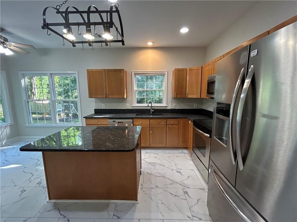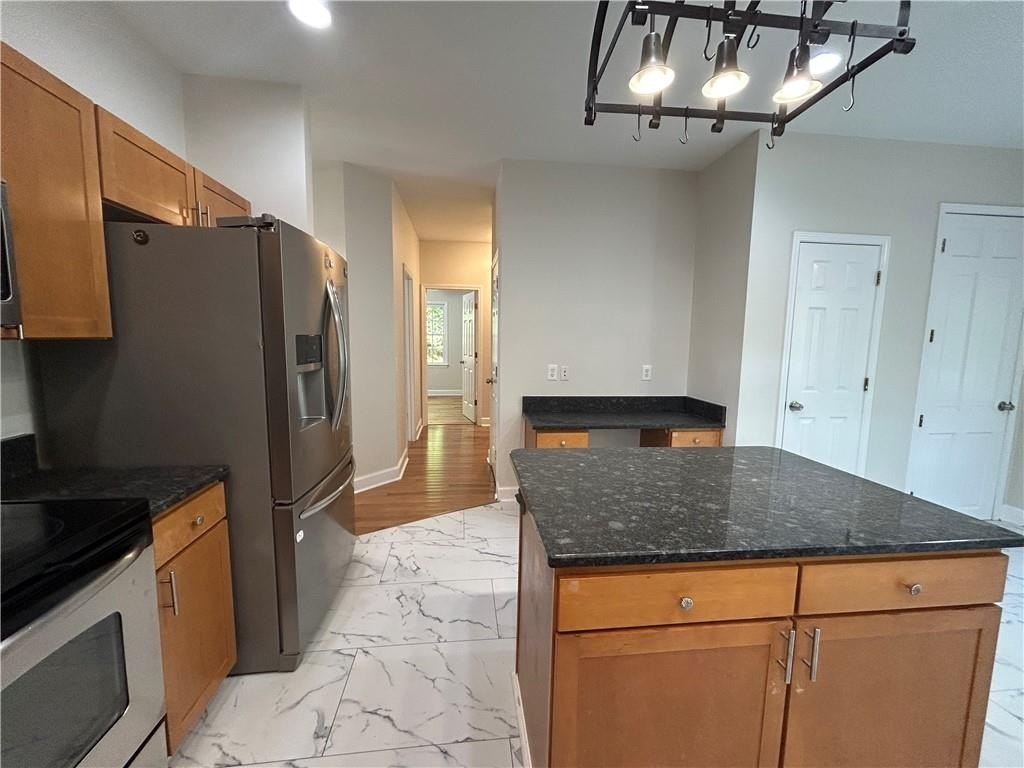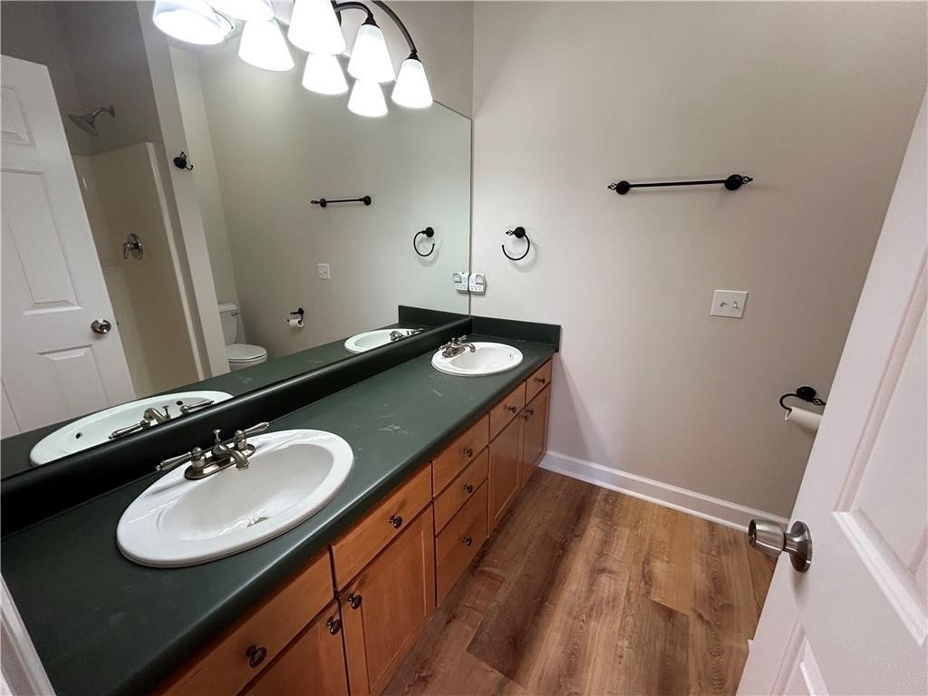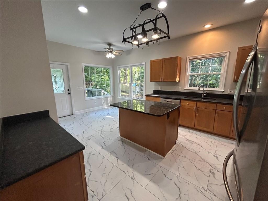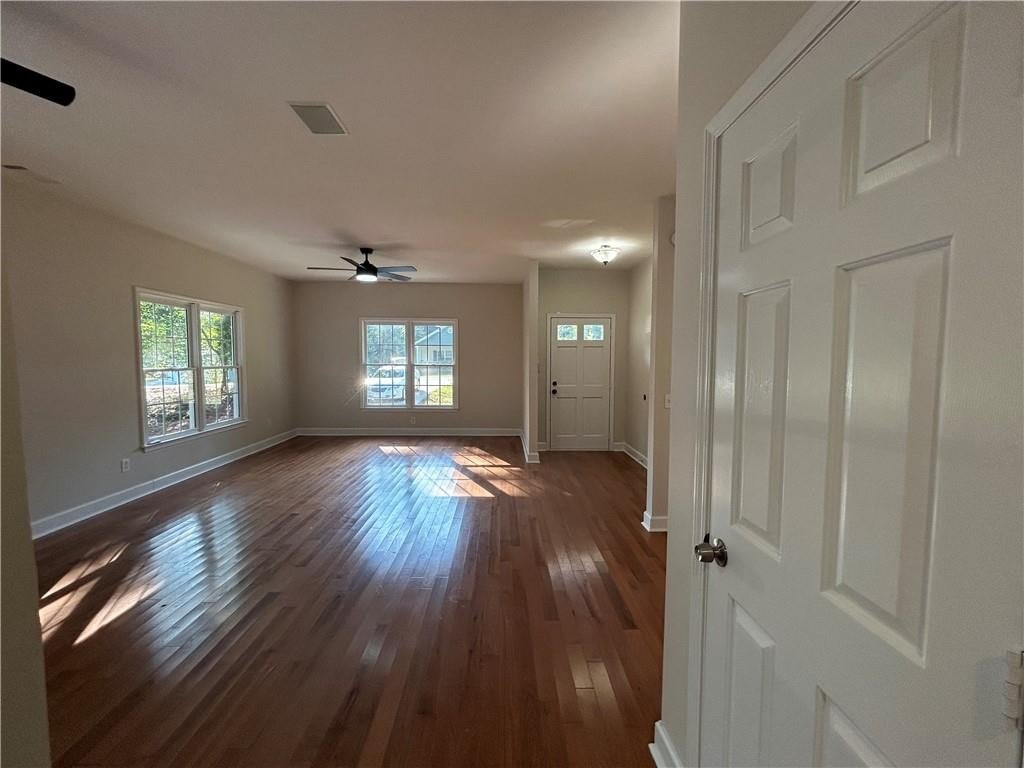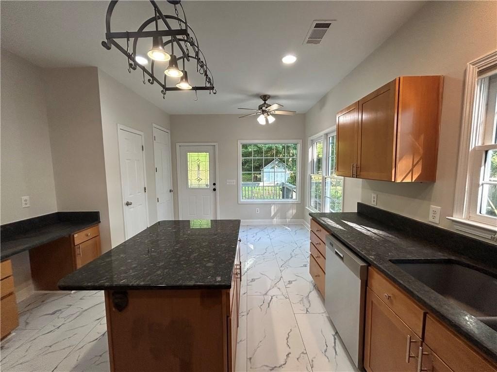 Welcome to this Charming Bungalow! Located on a HUGE lot of 0.86 acres with close proximity to the picturesque historic Acworth! HARDWOOD flooring on the main floor and in the MASTER suite upstairs! Plenty of space for storage if needed! All NEW luxury vinyl marble tile in the kitchen as well as all bathrooms and laundry room! Updated kitchen includes GRANITE counter tops, STAINLESS STEEL appliances, island, and desk area. NEW FLOORING in all ground floor bedrooms! Fresh NEW INTERIOR paint throughout entire home and NEW EXTERIOR paint on the backyard deck! With another MASTER suite on the GROUND floor and 2 additional bedrooms, the home also features 2 more FULL baths. Huge PRIVATE level backyard with separate storage building. Completed encapsulation of crawlspace Oct 2025. Take a walk and enjoy the friendly and serene atmosphere of the surrounding neighborhood. Relax on front porch, hang out on your backyard deck, enjoy the convenience of close-by shopping, or appreciate an active lifestyle on the lake! NO HOA; therefore, NO rental restrictions! Sold As-Is.