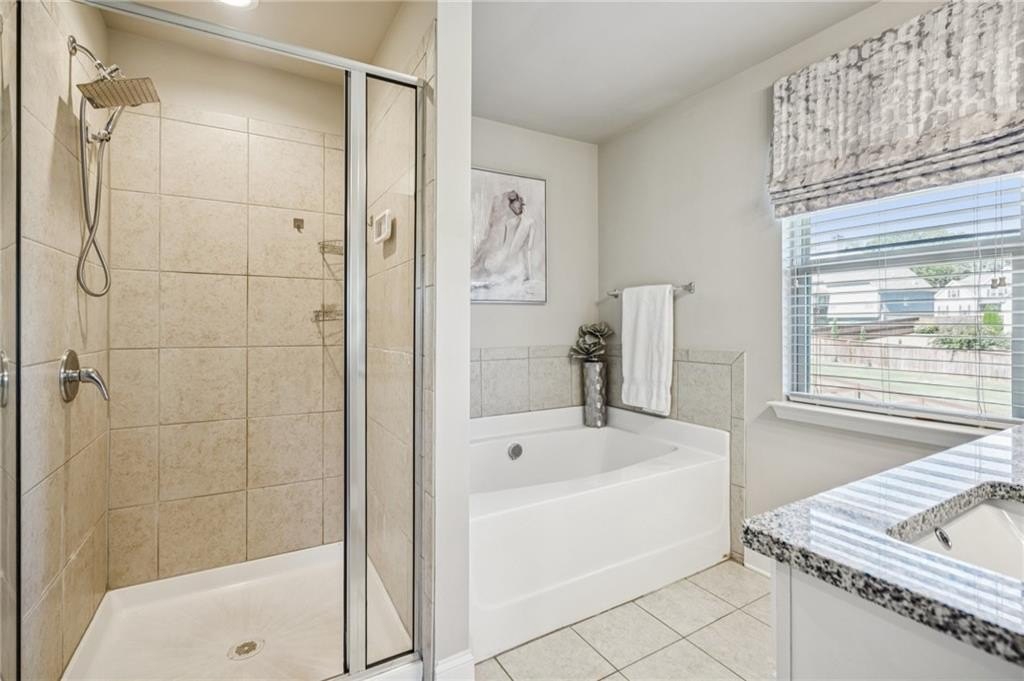 Rest upstairs. The owner’s suite features a tray ceiling, double vanity with granite, separate shower, soaking tub, and two closets. Three secondary bedrooms share a full bath. A large additional room adds real flexibility. Use it as a 5th bedroom, game room, loft, media room, or office.