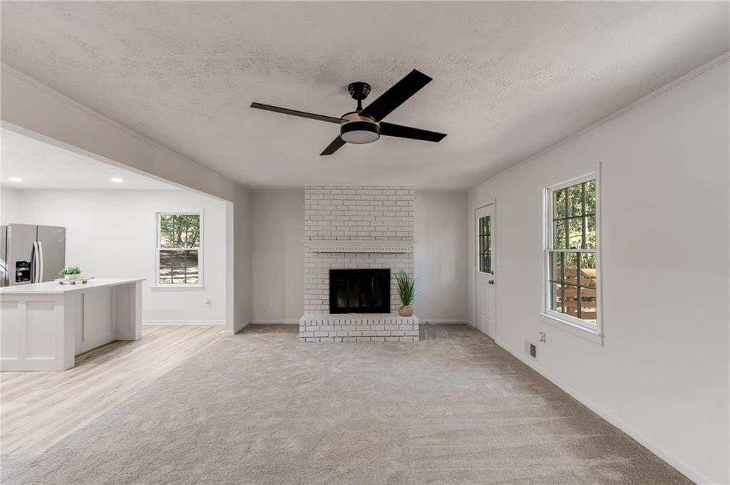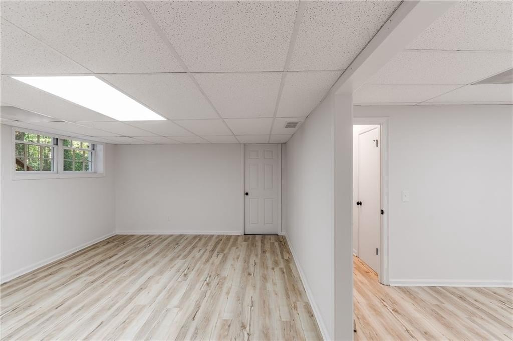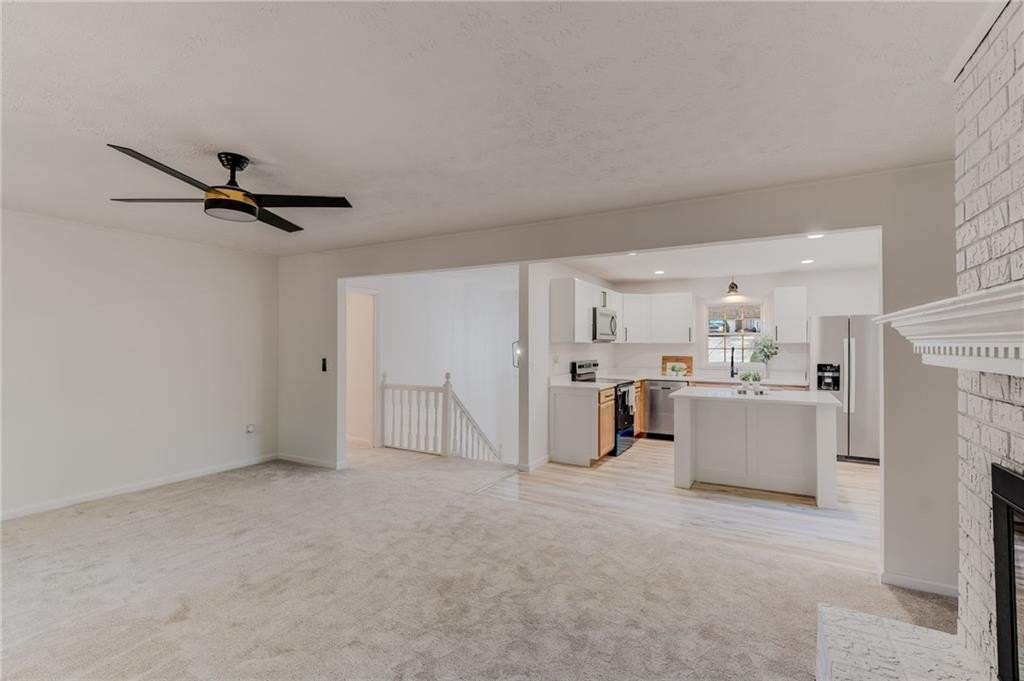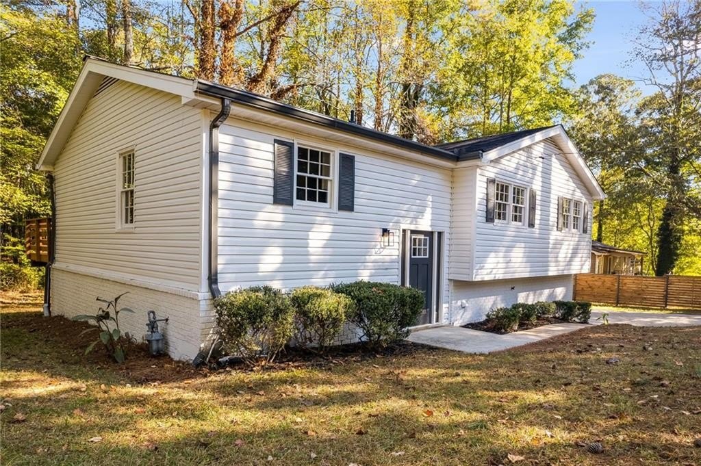 Welcome to 6883 Lakeshore Drive — a stunning to-the-studs renovation offering 3 bedrooms, 2 bathrooms, and approximately 2,150 sq ft of finished living space. The open-concept main level features a bright modern kitchen with quartz countertops, new cabinetry, stainless steel appliances, and an island overlooking the family room with a painted brick fireplace. Downstairs, a fully finished basement adds flexible living options — ideal for a home office, media room, recreation space, or potential 4th bedroom. Every surface has been refreshed: new flooring, paint, lighting, trim, and fixtures throughout. Enjoy the brand-new back deck overlooking a private, wooded backyard. Conveniently located near shopping, parks, and highways — this home is truly move-in ready.