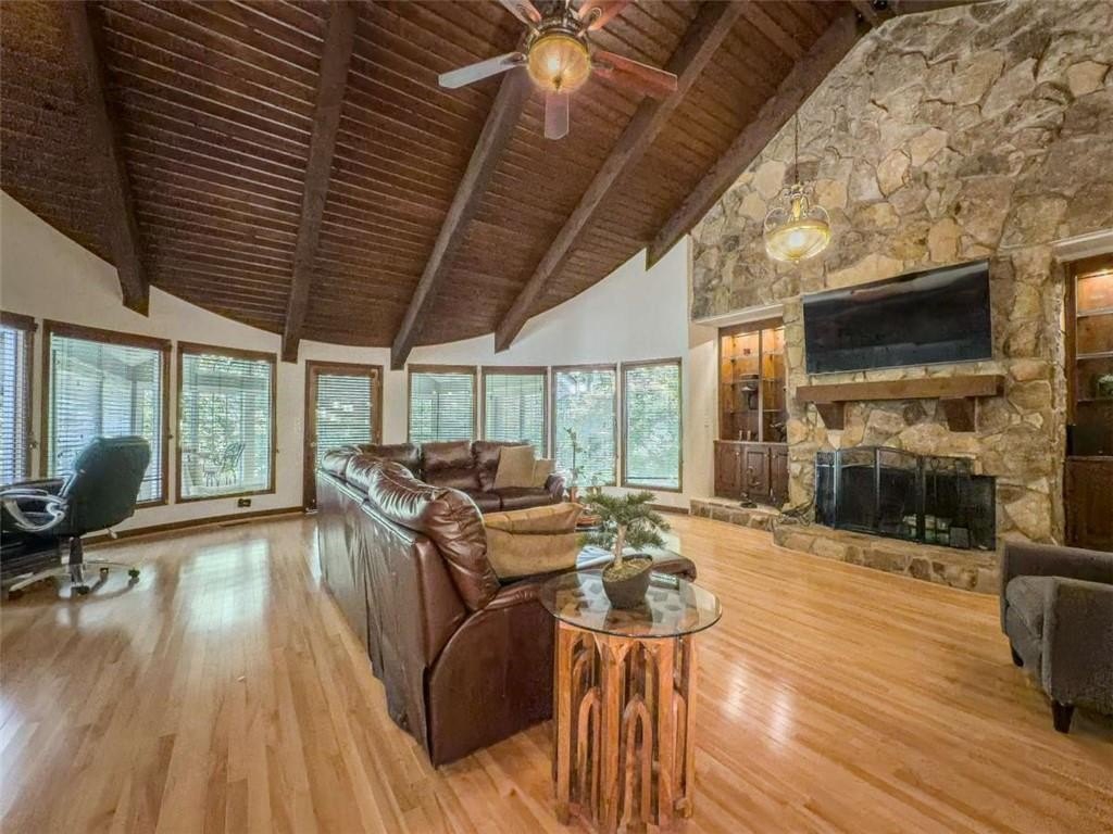 Welcome home to a spacious and inviting 4-bedroom, 3.5-bath home offering over 3,700 sq ft of finished living space in the desirable Parkview school district. Nestled on a peaceful 0.73-acre lot, this property combines privacy, comfort, and versatility. Inside, you'll find bright, open living areas with vaulted ceilings, warm natural light, and a cozy masonry fireplace that anchors the main level. The kitchen provides ample cabinet space and flows easily into the dining area and family room, perfect for gatherings and everyday living. A true highlight of the home is the dual sunrooms, one on the main level and one on the finished basement, creating flexible spaces for relaxation, entertaining, or a quiet morning coffee overlooking the backyard. The finished basement adds a second living area complete with bedroom, full bath, and walk-out access, ideal for guests, teens, or multigenerational living. Outside, enjoy mature landscaping, a private wooded backdrop, and plenty of room for outdoor living or play. Conveniently located near shopping, parks, and top-rated schools, this home offers space, charm, and potential all in one.
