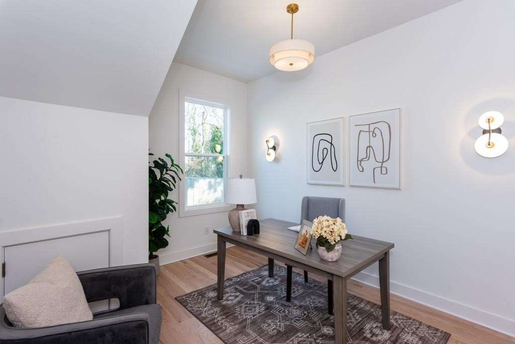Nestled in the highly sought-after Egan Park neighborhood of East Point, this exceptionally spacious 4-bedroom, 3.5-bathroom New Construction Modern Tudor home masterfully blends timeless elegance with contemporary design. With its striking brick facade and stylish Board and Batten siding, the exterior sets the stage for the exceptional craftsmanship inside. Every corner of this home is thoughtfully designed, showcasing the latest designer finishes for a sophisticated yet inviting atmosphere. The main level is flooded with natural light and features a chef-inspired Kitchen, complete with a quartz waterfall island, high end Frigidaire appliance package with 6-burner gas chef's stove and French door refrigerator with flex drawer, a high-velocity extraction range hood, a cozy breakfast nook, and a walk-in pantry. The Kitchen flows seamlessly into the expansive Great Room, where a box beam ceiling and a custom fireplace create a warm, welcoming space for relaxation and entertaining. A formal Dining Room provides the perfect setting for elegant gatherings, while a generously sized Guest Suite with an En-Suite Bath, a spacious dedicated Home Office ideal for remote work, and a Half Bath round out the main floor. Upstairs, the luxurious Primary Suite offers a serene retreat, complete with a spa-like bath and massive his-and-hers Closets. Two additional Bedrooms share a well-appointed Jack & Jill Bath, and a large Loft area provides an ideal space for a second Living or Entertainment area. Additional features include a Laundry Room with sink and cabinetry. The outdoor space is just as impressive, featuring a covered patio perfect for indoor/outdoor living and a detached, oversized two-car Garage. Located on a peaceful street in Egan Park, this home is just a short walk from Woodward Academy and offers easy access to Delta and Porsche USA headquarters, as well as major highways (I-75/85/285), providing quick commutes to Midtown, Downtown Atlanta, and East Point and College Park MARTA stations and the Atlanta Airport. This meticulously crafted home combines modern luxury with the charm of a beloved neighborhood. Don't miss your chance to make this beautiful New Construction home in Egan Park your own!