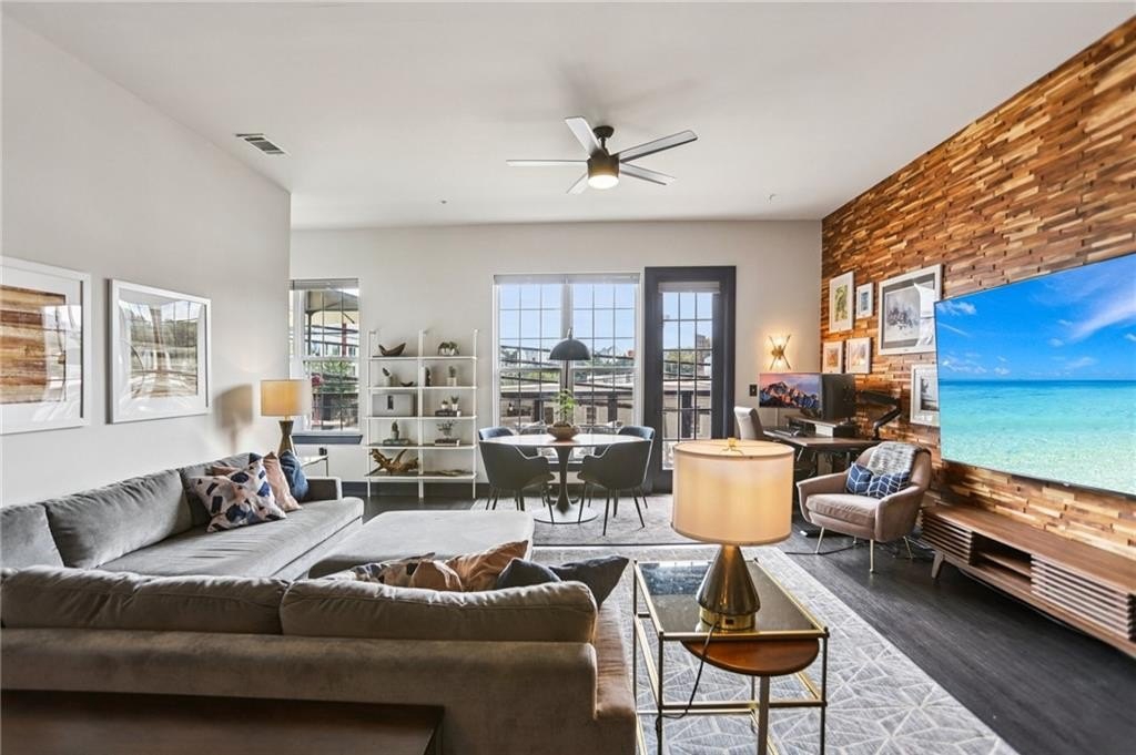 Upgraded to the 9’s and perfectly placed in the heart of it all—this condo has it all going on! Walkable to Madison Yards, Glenwood Park, the Beltline, Southern Dairies, and everything Cabbagetown has to offer, this home is nestled in one of the most vibrant yet charming pockets of the city. With off and on street parking, direct street access, and quick I-20 convenience, getting around is effortless—but honestly, you may never want to leave. Inside, you’ll find a truly one-of-a-kind space. The open floor plan is warm and inviting, centered around a 30-foot-wide wood slat feature wall in the living room with big south-facing windows overlooking Glenwood Park and an 85” 4K mounted TV (which is included in the sale of the home). Custom details are everywhere—deep grey water-resistant LVP floors, rich blue doors and trim, matte black fixtures, and updated LED lighting. The kitchen features black stainless KitchenAid appliances, open shelving at the peninsula, and fresh pendant lighting. The primary suite offers a boutique feel with geometric wallpaper, a double vanity (the only one in the building!), and a deep glass shelf above the sinks. Beyond the walls, this home comes with a lifestyle that’s hard to beat. The sellers—the sole owners since new—have loved the friendly, tight-knit community, where neighbors are welcoming and quick to lend a hand. Cabbagetown and Reynoldstown are known for being calm, creative, and full of character—perfect for families, pets, and weekend exploring. With fantastic local restaurants, grocery stores, parks, and events like Chomp-N-Stomp, Summer Shade Festival, and the Grant Park Farmers Market, there’s always something to do close to home. Walkability, warmth, and wonderful neighbors—this home truly has it all, right in the middle of one of Atlanta’s most beloved neighborhoods.