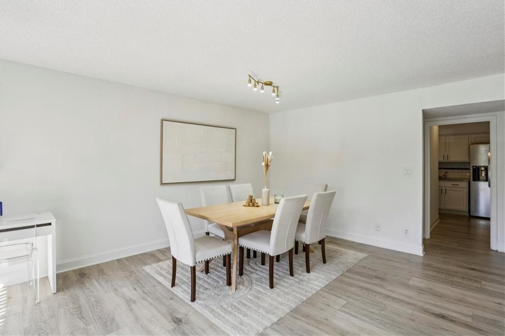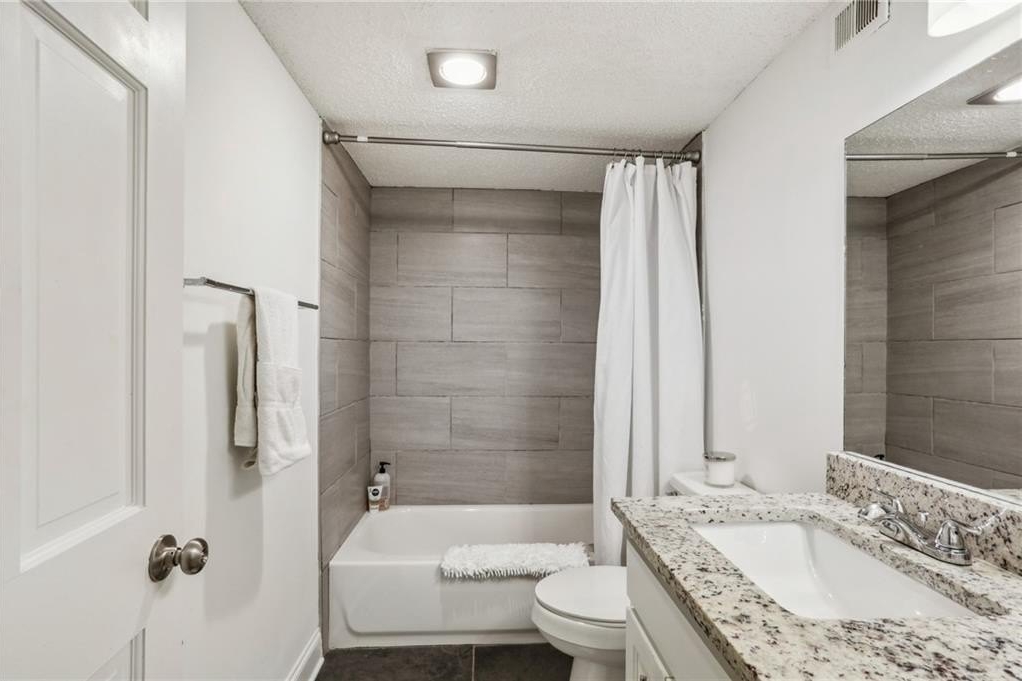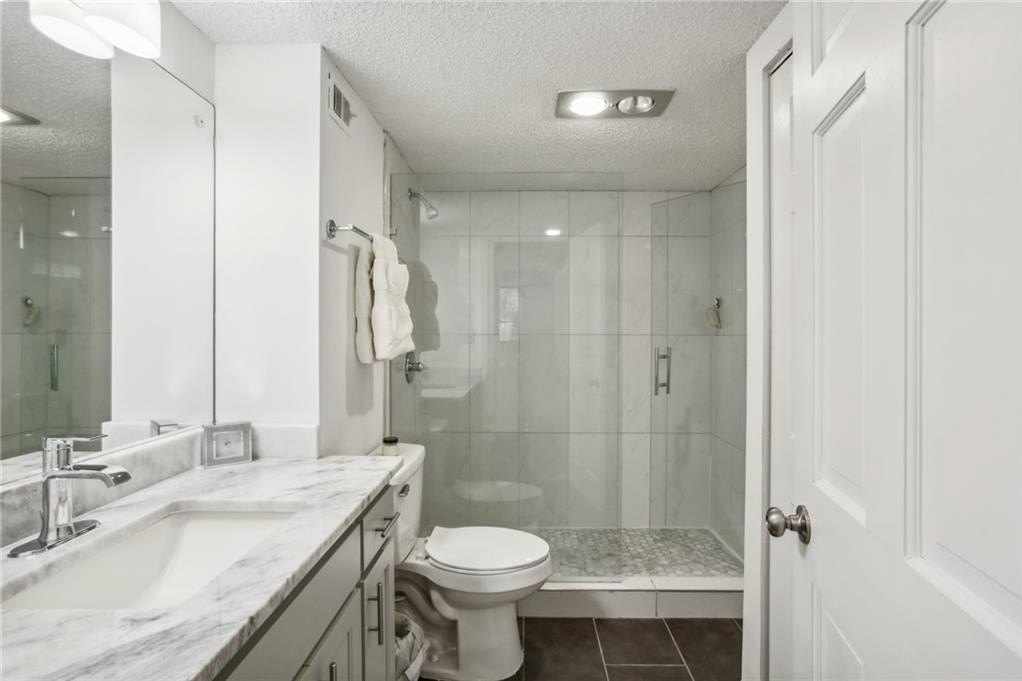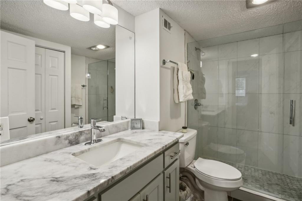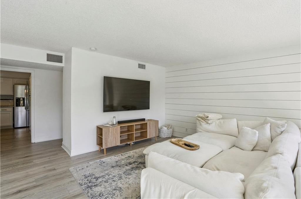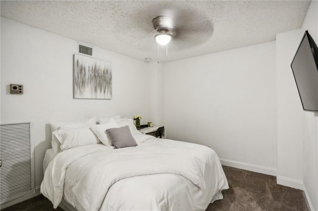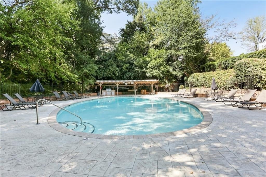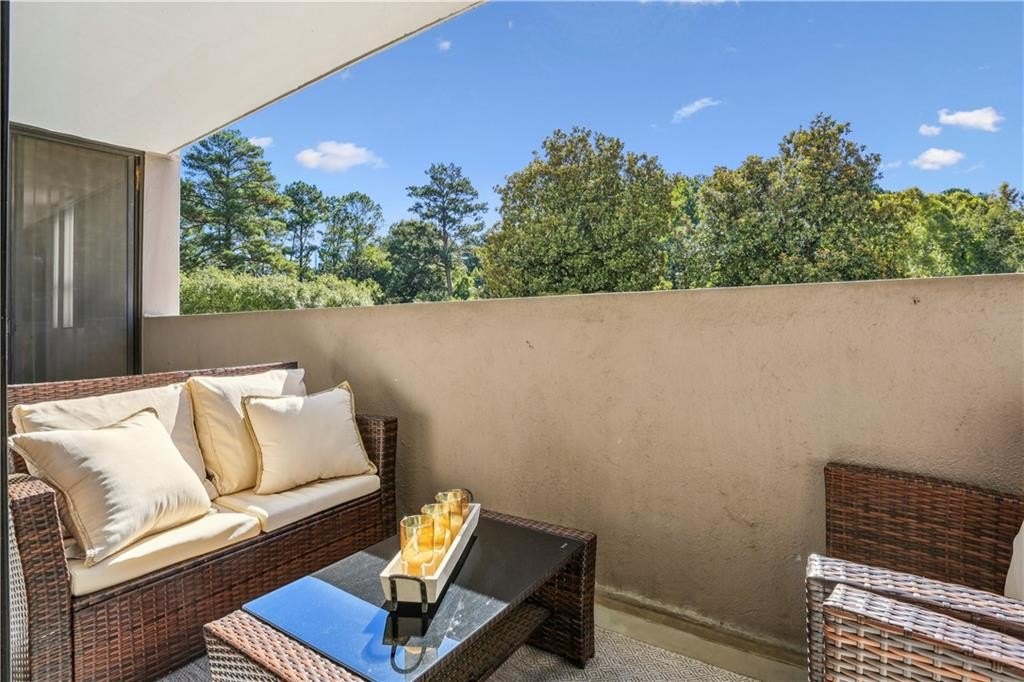 Bright and open fully renovated unit in the Barclay in Buckhead! The Barclay sits in the heart of Buckhead while buffered further back from the road with substantial extra grounds and green space compared to most communities. The home features entry foyer, huge great room and dining area, floor to ceiling windows and doors open to huge patio, upgraded new LVP hardwood flooring, newer paint, ship lap accent, upgraded lighting and hardware, renovated kitchen with LG ThinQ refrigerator, large primary suite with 4 closets, renovated primary bath with stone vanity, glass enclosed/tile shower, tile floors, room in primary suite for additional closet or vanity space, additional guest bedroom/office space is interior room with 2 hall closets, renovated guest bathroom, and additional linen/coat closets. The kitchen renovation includes granite counters, subway tile backsplash, white cabinetry, stainless steel appliances, pantry, laundry room off kitchen to include newer SAMSUNG stackable w/d, electric stove, and built in microwave. Additional highlights are HOA fee covers all utilities except electricity, strong HOA, ample/easy visitor parking, beautiful landscaping and grounds, secured parking, storage unit, great walkability, onsite staff, easy access to GA400, Buckhead, Chastain, Sandy Springs, MARTA, shopping, restaurants, parks, Publix, Whole Foods, Starbucks, and more. Community amenities also include swimming pool, tennis court, gazebo, fire pit area, grilling area, club room, car chargers, and fitness center.