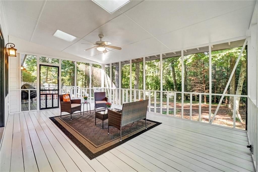 Welcome to 197 Carriage Trace, Marietta - a thoughtfully updated 4-bedroom, 4-bath home in the highly sought after Wheeler High School district with its nationally recognized magnet program. This home shines with a brand-new roof (September 2025), fresh interior and exterior paint, updated bathrooms, and the removal of popcorn ceilings for a clean, modern feel. The main level features a welcoming family room with a cozy fireplace, an inviting dining area, and an updated kitchen with granite countertops and stainless-steel appliances. Off the garage, a convenient mudroom with a back staircase adds both functionality and charm. Enjoy outdoor living at its finest on the screnned-in porch and adjoining deck, perfect for relaxing or entertaining while overlooking the large, flat fenced backyard. The partially finished daylight basement offers flexible living space with both interior and exterior entry-ideal for a media room, playroom, or gym - while the unfinished portion provides abundant storage. Practical updates include a main level HVAC system replaced in August 2022, giving peace of mind for years to come. Located on a quiet residential street that leads into a cul-de-sac, this home offers the best of both privacy and community. Optional membership to nearby swim and tennis facilities is also available. A rare find in East Cobb - this move-in ready home blends comfort, convenience, and top-tier schools. Don't miss it!