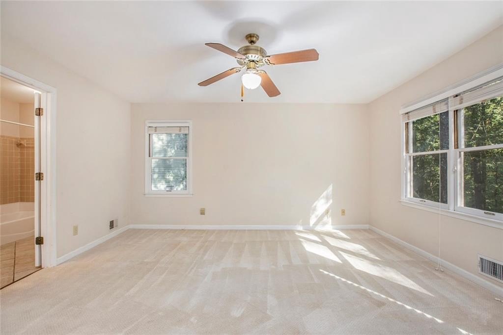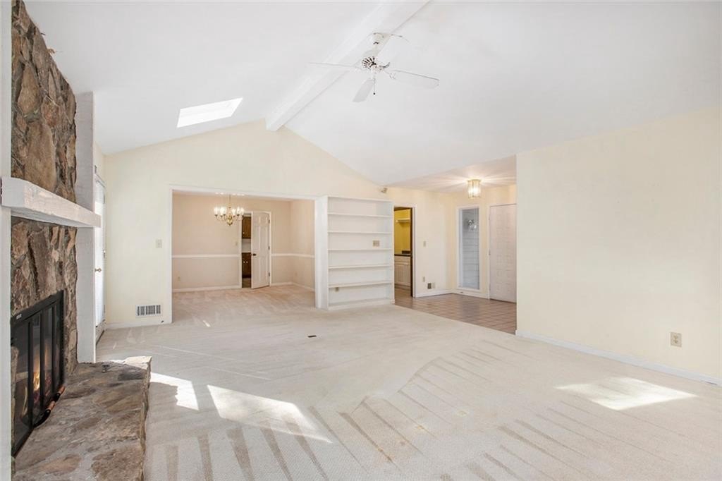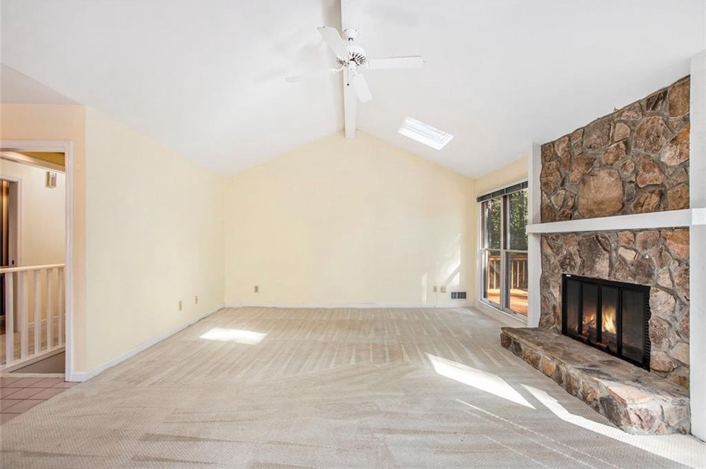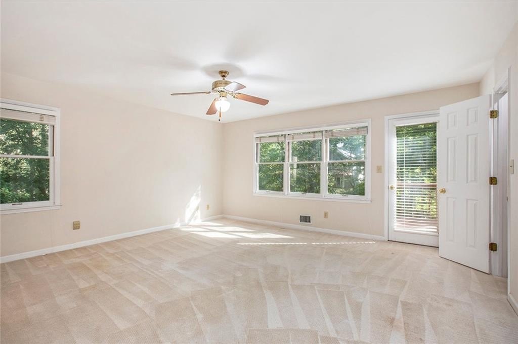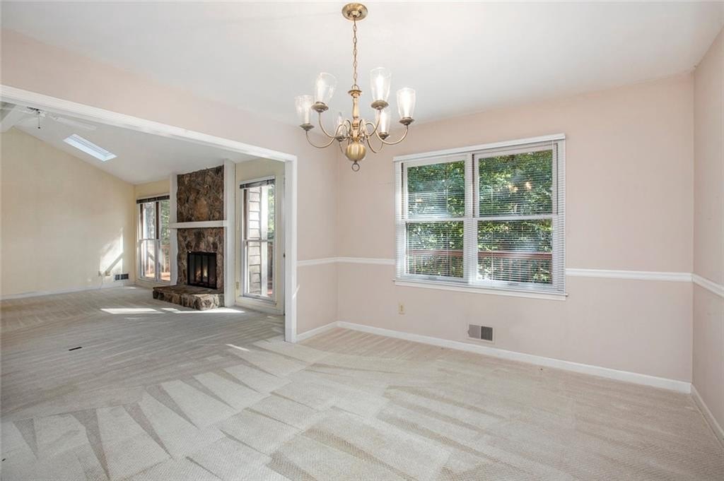 Much Loved Home Needs a New Family to Enjoy the Good Memories that Await! 5 Bedroom 3.5 Bath Ranch. Main level Primary Bedroom and Bath. Main level Living Room vaulted ceiling with skylights and gas logs fireplace. Adjoining Dining Room seats 8-10 people easily. Spacious Kitchen with lots of cabinets and two pantries and wet bar. Living room open to large deck overlooking a private backyard. In the fully finished basement is a gathering place for friends complete with a large den, gas logs fireplace, full bathroom and two bedrooms, office, work space and craft space. At this price and this many bedroom and baths, it's perfect for a large family or a small one that wants loads of EXTRA space! Come see this home just waiting for the right buyer to make it their own. Horseshoe Bend neighborhood boasts two lakes with docks, walking paths, and multi purpose field. Only Minutes to Downtown Roswell, Avalon, GA 400 to sneak Downtown Atlanta or for a day trip to North GA Mountains. Perfect location!