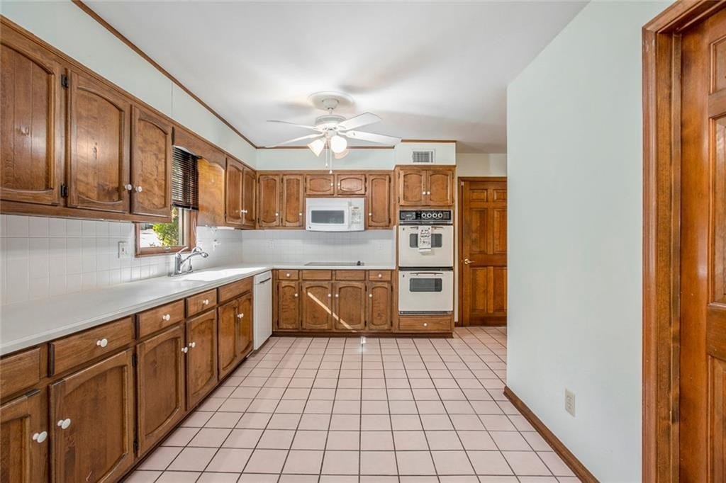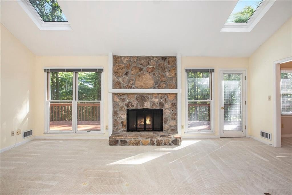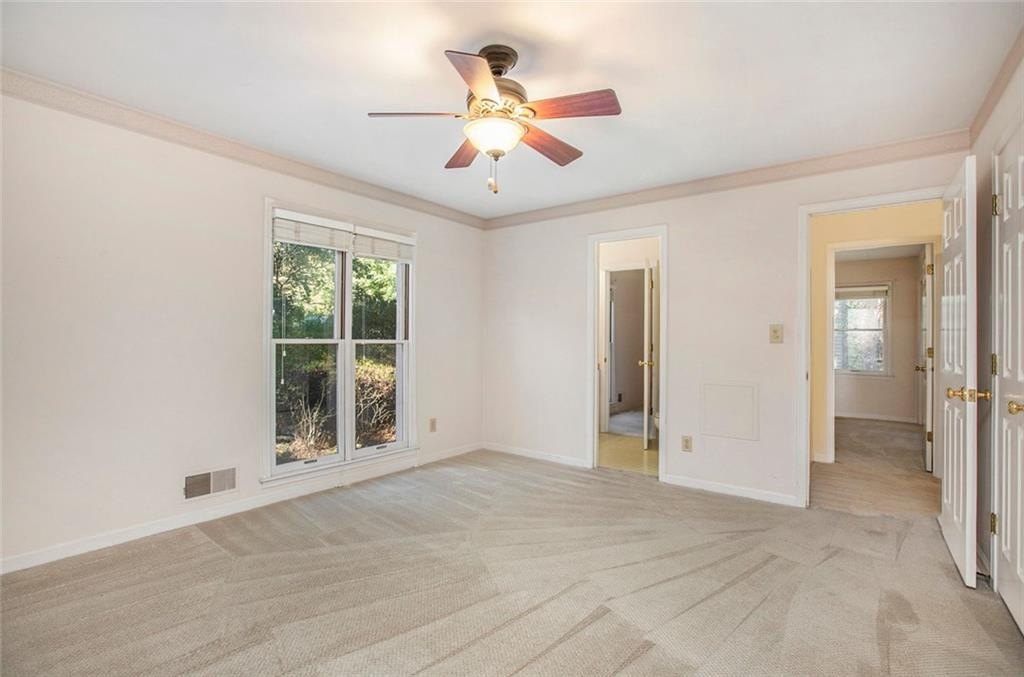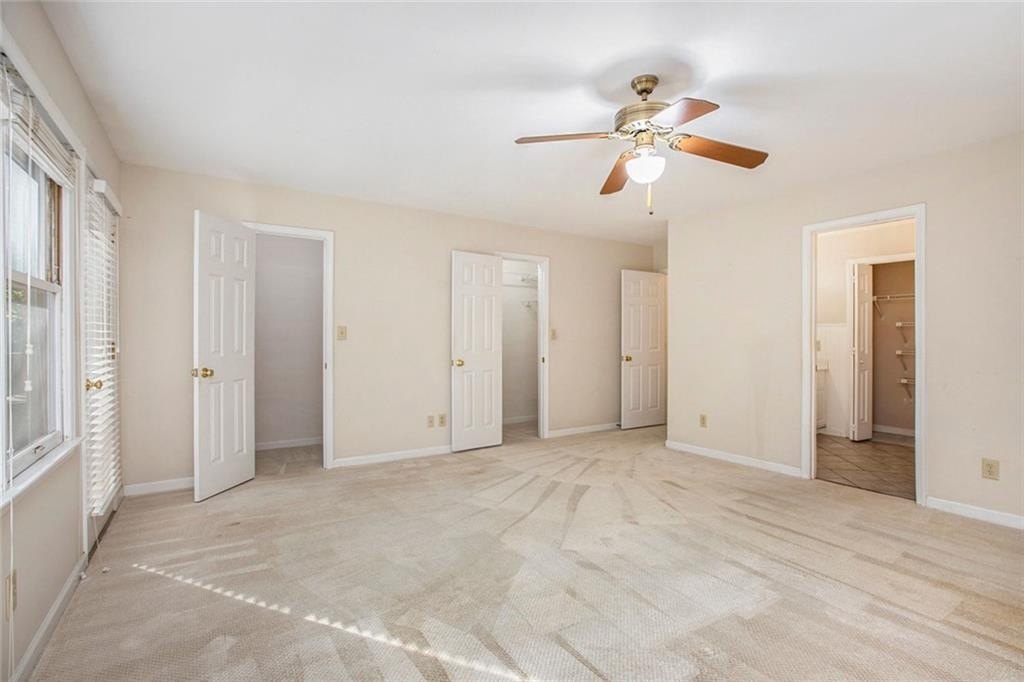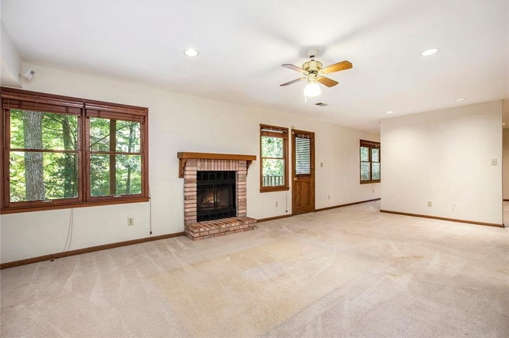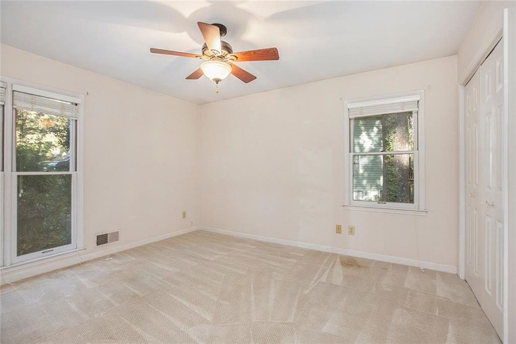 Much Loved Home Needs a New Family to Enjoy the Good Memories that Await! 5 Bedroom 3.5 Bath Ranch. Main level Primary Bedroom and Bath. Main level Living Room vaulted ceiling with skylights and gas logs fireplace. Adjoining Dining Room seats 8-10 people easily. Spacious Kitchen with lots of cabinets and two pantries and wet bar. Living room open to large deck overlooking a private backyard. In the fully finished basement is a gathering place for friends complete with a large den, gas logs fireplace, full bathroom and two bedrooms, office, work space and craft space. At this price and this many bedroom and baths, it's perfect for a large family or a small one that wants loads of EXTRA space! Come see this home just waiting for the right buyer to make it their own. Horseshoe Bend neighborhood boasts two lakes with docks, walking paths, and multi purpose field. Only Minutes to Downtown Roswell, Avalon, GA 400 to sneak Downtown Atlanta or for a day trip to North GA Mountains. Perfect location!