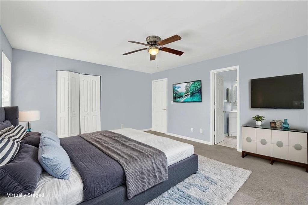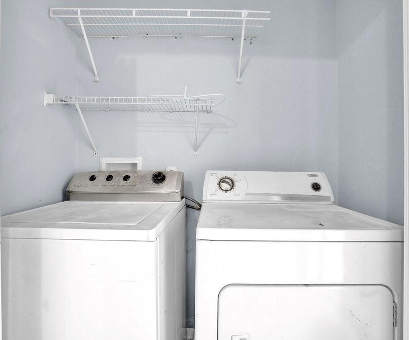 Upstairs, you’ll find two oversized bedrooms, each with its own en-suite bathroom, plus generous closet space. A convenient half bath is located on the main level for guests. Additional features include a newer HVAC system, a laundry area with washer and dryer included, attic storage, and two assigned parking spaces right at your front door.