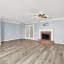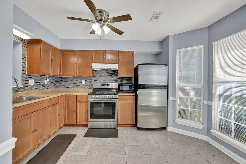 Step inside to a bright and spacious living room with a cozy fireplace, perfect for relaxing or entertaining. The kitchen features solid surface countertops, a full appliance package, and ample cabinet and pantry space.There is a private backyard, great for outdoor gatherings or quiet evenings.