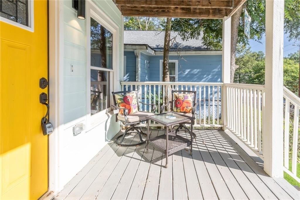 Step into this beautifully updated, fully furnished home featuring 3 spacious bedrooms and 2.5 modern baths. From the moment you enter, you'll be captivated by the stylish details and thoughtfully curated upgrades-including updated lighting, designer fixtures, and elegant finishes throughout. Large living area offers the perfect space for relaxing or entertaining guests, while the eat-in kitchen is a chef's dream, complete with a breakfast bar, stainless steel appliances, and plenty of counter space. Enjoy low-maintenance living with no carpet just gorgeous hardwood floors and sleek tile throughout. The smart roommate-style floorplan offers all bedrooms upstairs, including a luxurious owner's suite with private access to its own deck-your perfect morning coffee spot. Whether you're lounging on the spacious front porch or enjoying quiet evenings on your private deck, outdoor living is just as inviting as the indoors. Located just minutes from