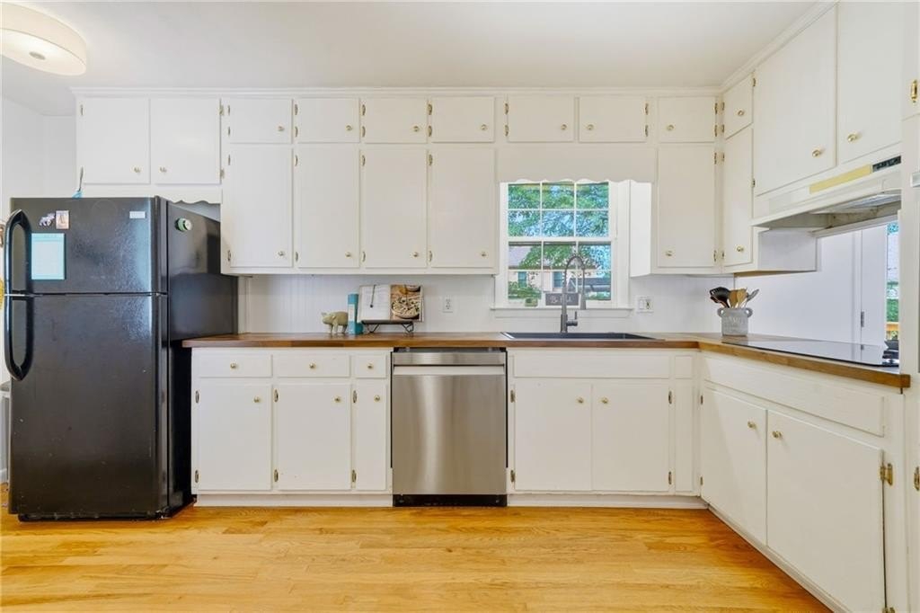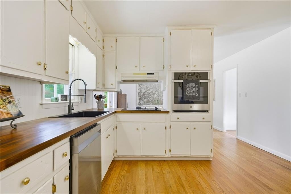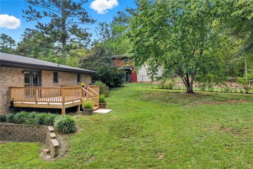 Welcome home to this classic and beautifully maintained 4-SIDED BRICK RANCH featuring 3 BEDROOMS, 2 BATHS, and the SPACIOUS FRONT AND BACK YARD you’ve dreamed of—perfect for entertaining or simply enjoying the outdoors. ORIGINAL HARDWOOD FLOORS flow throughout, complemented by NEW HARDWOOD flooring in the kitchen and dining area, new baseboards, updated lighting fixtures, fresh interior paint, and a 2019 ROOF. Enjoy an open-concept living and dining area with glass doors leading to a LARGE, FENCED, AND PRIVATE BACKYARD. This yard, graced with mature hardwoods—including silver and Japanese maples—plus hydrangeas and a garden area, offers the perfect canvas for your private backyard oasis. The updated kitchen offers a NEW STAINLESS SINK, BUTCHER BLOCK COUNTERS, NEW ELECTRIC COOKTOP, NEW DISHWASHER, and NEW OVEN, plus a convenient laundry room off of the kitchen area. All bedrooms are on the main level with new ceiling fans and the primary suite features an ensuite bath. An additional hallway bath showcases a charming vintage lavender and white tile which is original to the home. Additional highlights include a PARTIAL UNFINISHED BASEMENT with outdoor access perfect for storage or future finishing. Enjoy a BRAND NEW OVERSIZED 16X20 DECK off of the kitchen area which is ideal for outdoor entertaining or enjoying dinner under the stars. A LARGE CARPORT WITH STORAGE ROOM allows for easy access to the kitchen and allowing ample room for two vehicles to have covered parking. The home also includes a TERMITE BOND, CITY WATER & SEWER, and NATURAL GAS HEAT. Perfectly located in historic Addison Heights, this home is minutes from NOONDAY CREEK TRAIL, within walking distance of the newly renovated Gritters Library located in Shaw Park, and just a short drive to DOWNTOWN WOODSTOCK, THE HISTORIC MARIETTA SQUARE, and KENNESAW MOUNTAIN PARK—offering a rare opportunity to own a beautiful piece of history in the heart of it all!