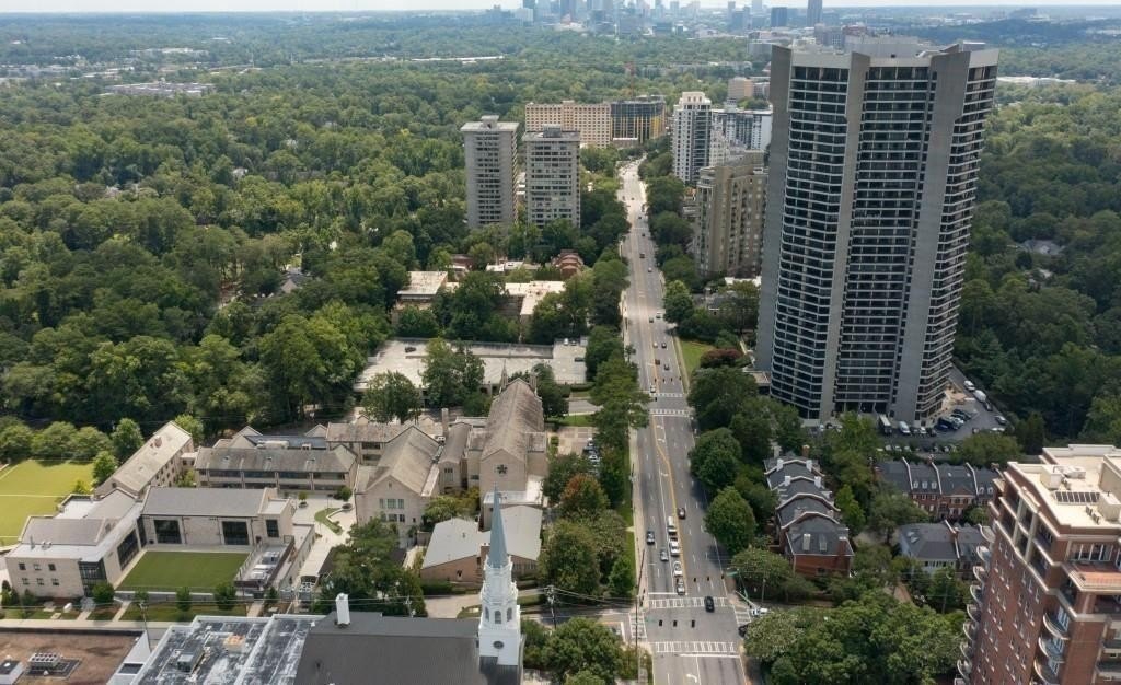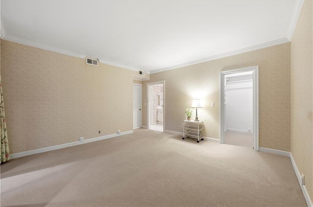 NEW PRICE! Best value on the "golden mile" of Buckhead. The largest condominium in the Peachtree Andrews complex, this unit is vacant and ready for your updates.9' ceilings, hardwood floors and gas fireplace, this large open floor plan runs from the open kitchen, dining area and fireside living room all the way to the large picture window overlooking neighboring Tarrymore. So many ways to use this space. Enter in to a long gallery style hallway with two walk in closets and shelving perfect for hanging art or showing off collectibles. Tremendous primary suite with his/her closets/ bath/ sitting room and glassed in small porch with windows to the exterior. Guest bedroom/walk in closets with hall bath. Large separate den with wall of built in bookshelves and closet could serve as a third bedroom if desired. Unlike other units, this unit is complete with a powder room, laundry room and four walk in closets in the public areas great for storage. The dining area also has 3 built in china closets for additional storage. If you are looking for a large open plan in Buckhead's best location, look no further. This is the best value in town. 2 gated assigned parking spaces and one storage unit. One pet not to exceed 25 lbs.
