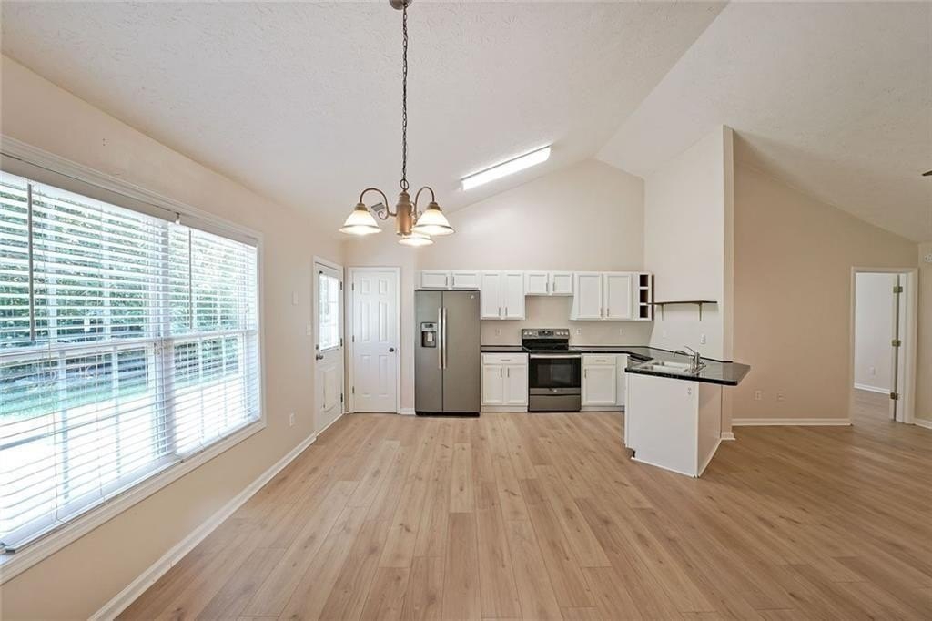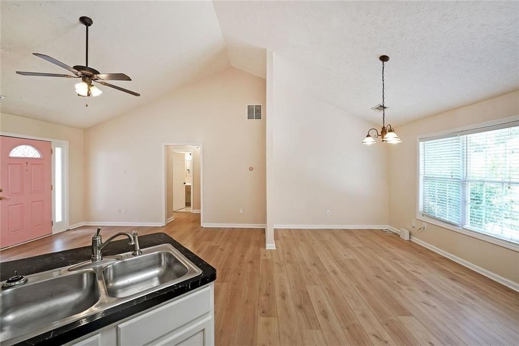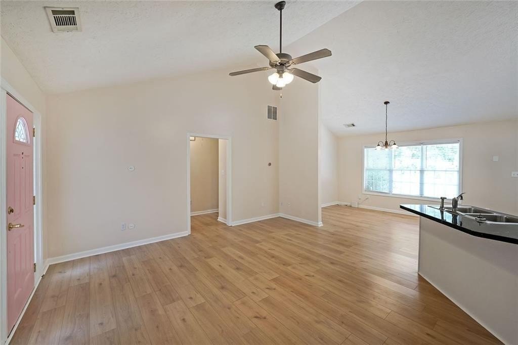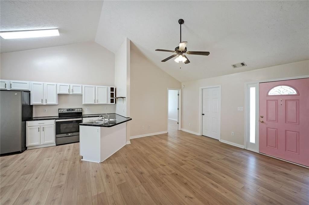 Nestled at 567 Marshall Fuller Road, Dallas, GA, this residential property in Paulding County presents an attractive opportunity to own a home in great condition. The living room stands as a testament to spacious design, graced with a high ceiling that amplifies the sense of openness, further enhanced by a vaulted ceiling that draws the eye upward. This space offers a wonderful canvas for creating a comfortable and inviting atmosphere. The kitchen features shaker cabinets that complement the style, while the kitchen peninsula extends the counter space and creates a natural gathering point. A kitchen bar offers additional seating and a casual dining option. The bedroom provides a personal retreat, enhanced by a tray ceiling that adds an architectural touch. An ensuite bathroom offers convenience and privacy, featuring a double vanity that provides ample space. Beyond the home itself, the woods view creates a private and peaceful setting, offering a serene backdrop. The open floor plan enhances the sense of space and connectivity throughout the home. This 1674 square foot residence, built in 2004, provides a blend of comfort and style that is ready for you to move in.
