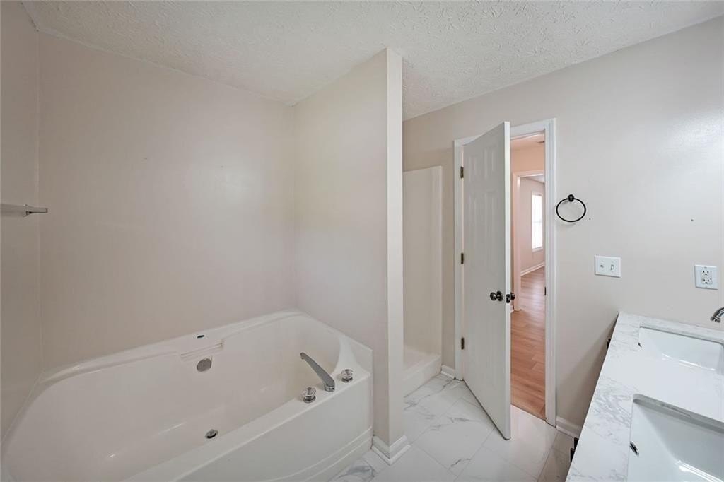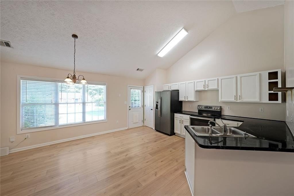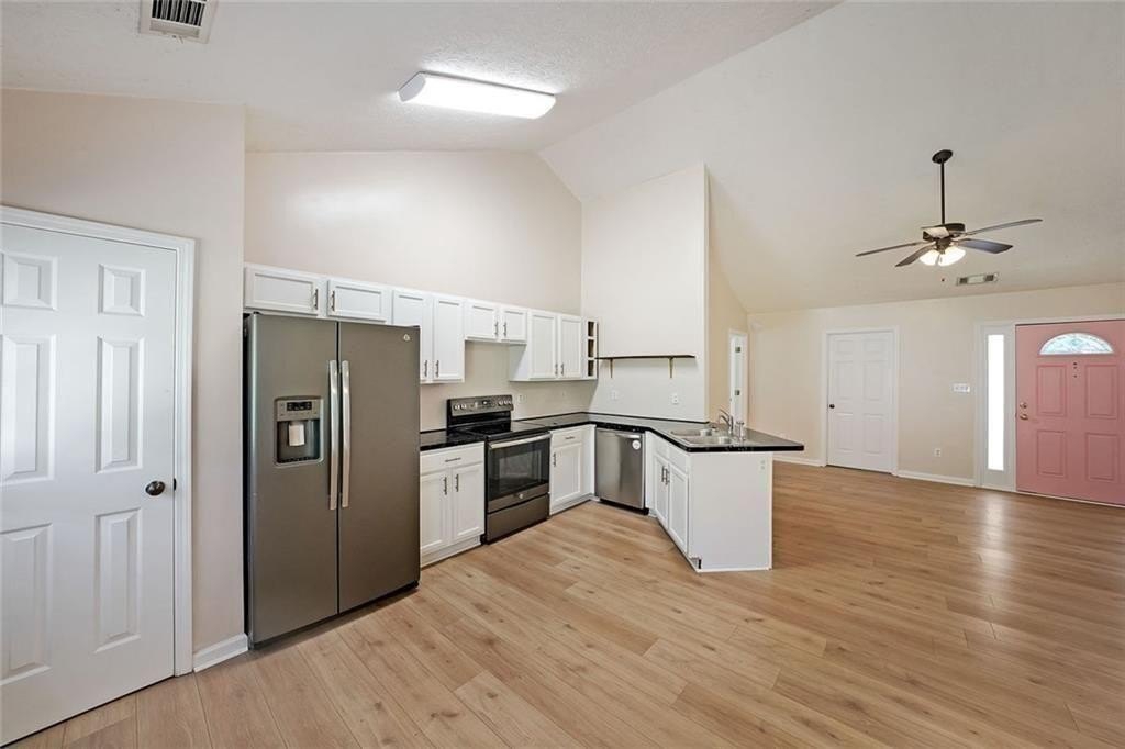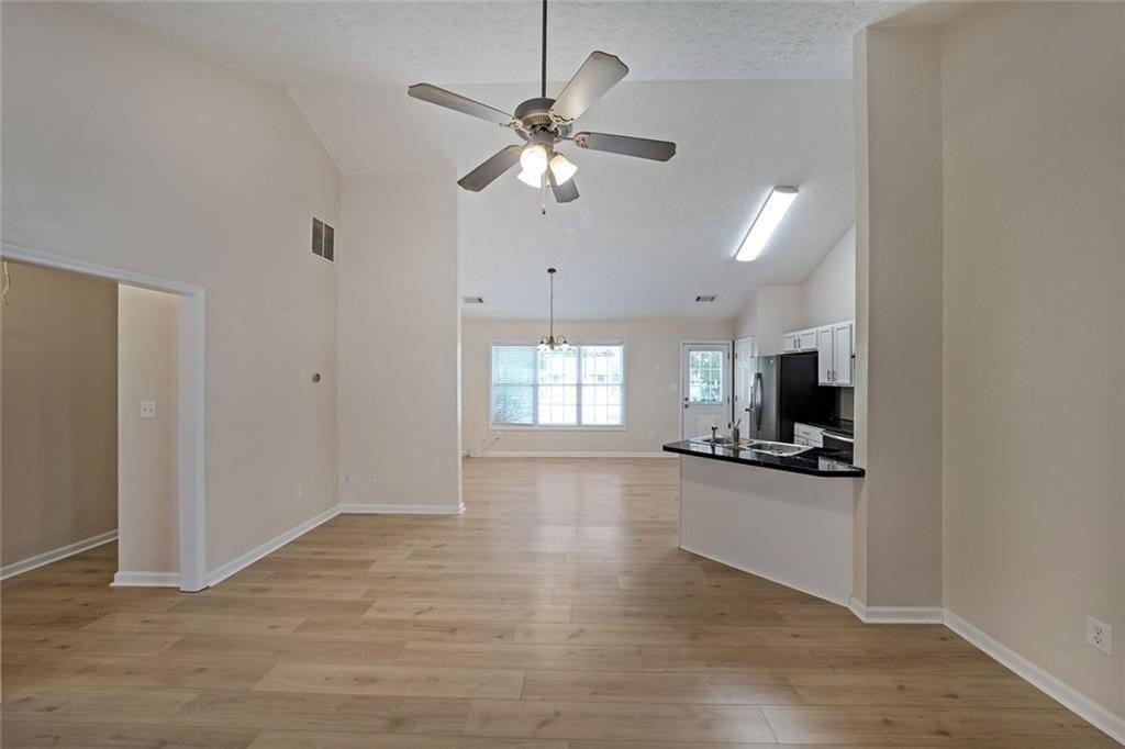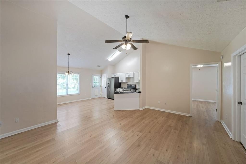 Nestled at 567 Marshall Fuller Road, Dallas, GA, this residential property in Paulding County presents an attractive opportunity to own a home in great condition. The living room stands as a testament to spacious design, graced with a high ceiling that amplifies the sense of openness, further enhanced by a vaulted ceiling that draws the eye upward. This space offers a wonderful canvas for creating a comfortable and inviting atmosphere. The kitchen features shaker cabinets that complement the style, while the kitchen peninsula extends the counter space and creates a natural gathering point. A kitchen bar offers additional seating and a casual dining option. The bedroom provides a personal retreat, enhanced by a tray ceiling that adds an architectural touch. An ensuite bathroom offers convenience and privacy, featuring a double vanity that provides ample space. Beyond the home itself, the woods view creates a private and peaceful setting, offering a serene backdrop. The open floor plan enhances the sense of space and connectivity throughout the home. This 1674 square foot residence, built in 2004, provides a blend of comfort and style that is ready for you to move in.