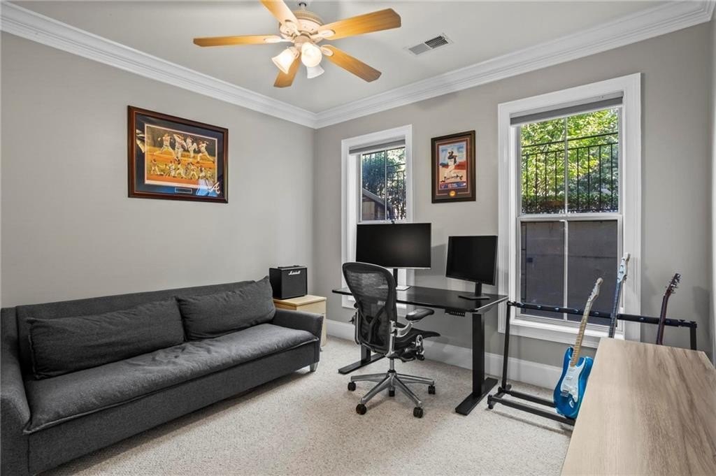Sellers are offering a $5,000.00 contribution towards Buyers closing costs or price reduction!! Prepare to be the most popular friend on every game day! This is the home you’ve been waiting for, offering endless entertainment opportunities without even having to turn your car on. Located in the gated Towns of Crescent Park community, this home provides a private, secure, and beautifully maintained atmosphere just steps away from Truist Park and everything The Battery has to offer. From cheering on the Braves to enjoying concerts at the Roxy, browsing retail shops, dining at top restaurants, or grabbing drinks with friends, you’ll never run out of things to do. And when the night winds down, you can return to a peaceful, closely knit community surrounded by incredible neighbors. 2560 Crescent Park Court enjoys a prime location at the front of the community, showcasing charming brick-front curb appeal, mature tree-lined sidewalks, and manicured landscaping that make your daily walks feel like a dream. Step inside to the stunning main level featuring 10-foot coffered ceilings, site-finished hardwood floors, and floor-to-ceiling windows that flood the space with natural light. The beautifully finished kitchen is open to the living area and boasts custom built-in cabinetry, while the separate dining room offers flexibility as an office or study. The home’s open layout and natural light create a warm, inviting feel that’s truly unmatched. Upstairs, the hardwood floors continue into the spacious primary and secondary bedrooms, each with its own private en-suite bathroom. The primary suite is impressively large, with a tray ceiling that enhances the cozy yet airy feel of the room, complemented by generous natural light from the large rear windows. The spa-like primary bathroom features a double vanity, separate shower and soaking tub, private water closet, and a large walk-in closet. On the lower level, you’ll find a beautifully finished bedroom with another en-suite bathroom, making it the perfect setup for guests, an in-law suite, or a roommate. Entertaining is effortless with the home’s open-concept design and rear patio off the living room, where you can even watch stadium fireworks light up the sky. This is truly an entertainer’s dream home in an unbeatable location—run, don’t walk, to see this stunner in person and imagine your new life in this incredible community!