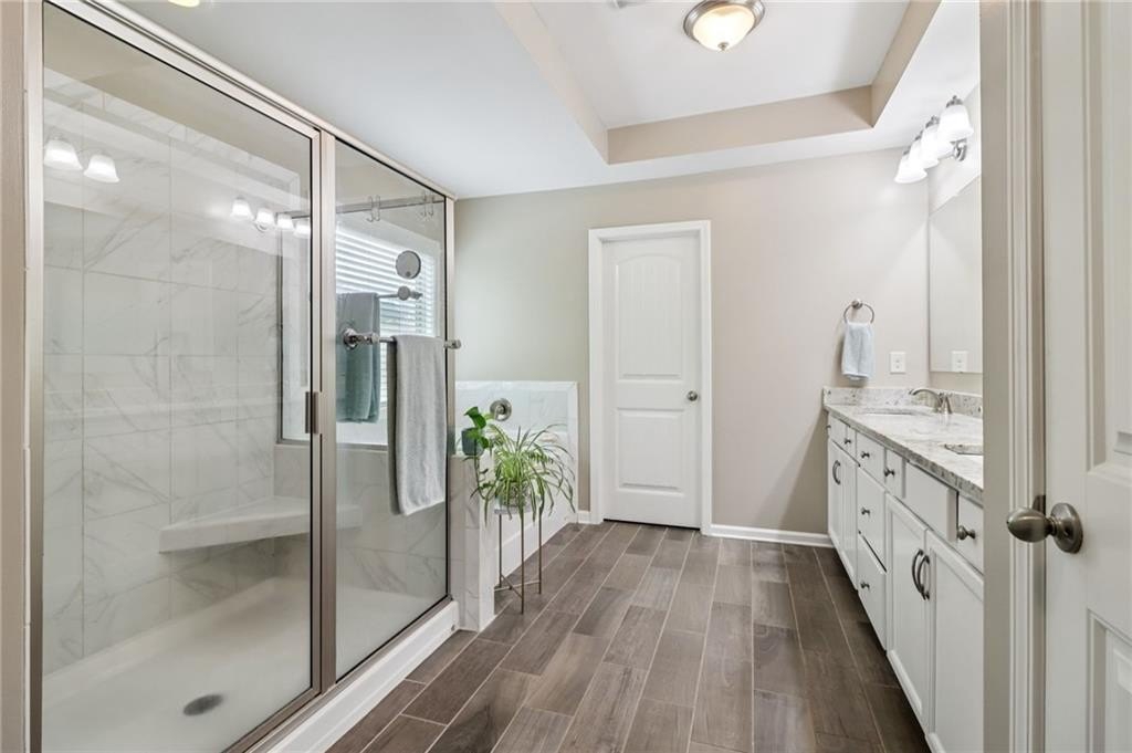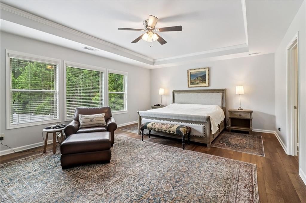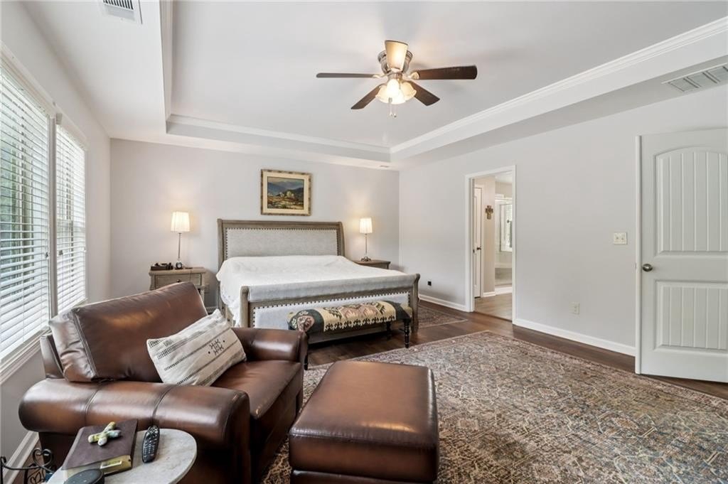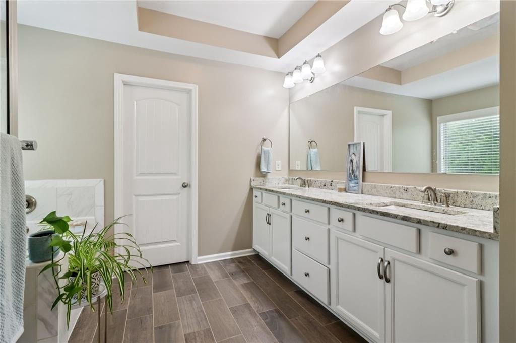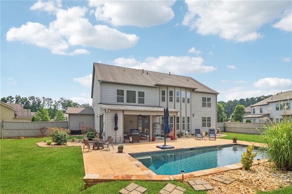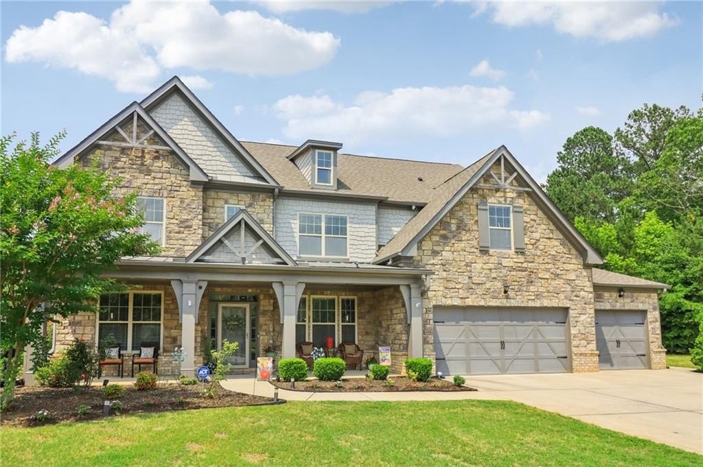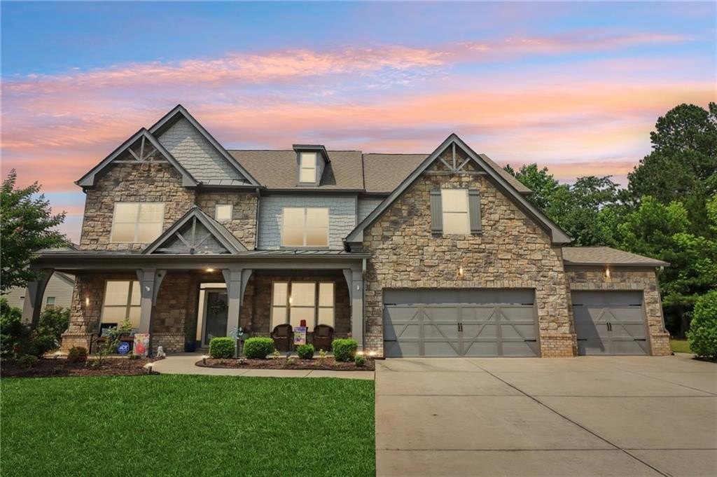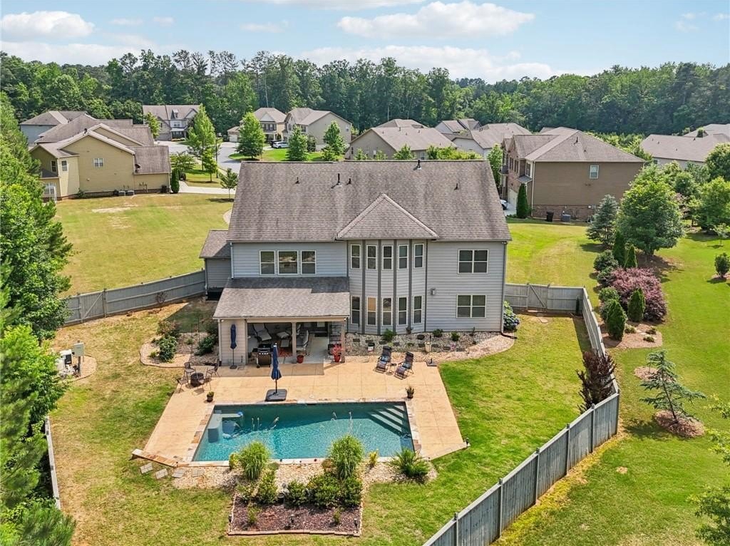 SELLER PAID 1% INTEREST RATE BUY-DOWN! You must see this beautiful 2017 executive home in the exclusive west Cobb community on a cul-de-sac with a resort-style saltwater pool! Sellers have completed $30,000 in upgrades and improvements - all you have to do is move in and enjoy luxurious resort-style living in top rated Harrison District. This spacious 3,910 sq ft 5 bed / 4 full bath home is perfect for a large or growing family. Sitting on expansive .466 acres and the best premium lot in the neighborhood, it boasts a 3-car garage and level fenced backyard. Pristine hardwood flooring throughout ENTIRE home. On the main level you’ll find a grand 2-story foyer, a formal dining room with coffered ceiling, large main level office with French doors, and a convenient guest/in-law bedroom suite. You will love the open concept family room with extra-large and plentiful windows providing tons of natural light! The exquisite chef’s kitchen features granite countertops, soft close cabinets (also throughout home), double oven, subway tiled backsplash, oversized Island, gas cooktop, and upgraded appliances. Upstairs features 4 additional spacious bedrooms including an oversized primary suite with trey ceiling, his & hers granite sink, tiled shower, garden tub and huge walk-in closet. Also, upstairs - a huge loft bonus room, currently a Pilates studio! Also upstairs are two full bathrooms and a laundry room. The backyard is an entertainer’s dream featuring a saltwater swimming pool with waterfall, game day covered living space with fireplace & TV. This safe west Cobb neighborhood is close to downtown Acworth and Lake Allatoona, as well as schools, shopping, and upscale west Cobb dining. It’s hard to find a 5-bedroom custom home that was built in 2017 or newer in the Harrison district. Sellers are providing an active termite bond and home warranty. The empty lot next door is owned and beautifully maintained by the neighbor next door, so no one will build on that lot. Come see this gorgeous pool home now before it’s gone!
