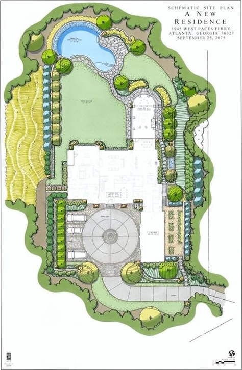 Home Plans - The envisioned home is an elegant estate perfectly scaled for both everyday comfort and grand entertaining. 8400 sq ft of living area on the main and upper floors, plus a full daylight terrace level that allows expansion to over 12,000 square feet if desired. The timeless American architecture features a stone facade, copper gutters, and a slate roof—classic Buckhead elegance that never goes out of style.