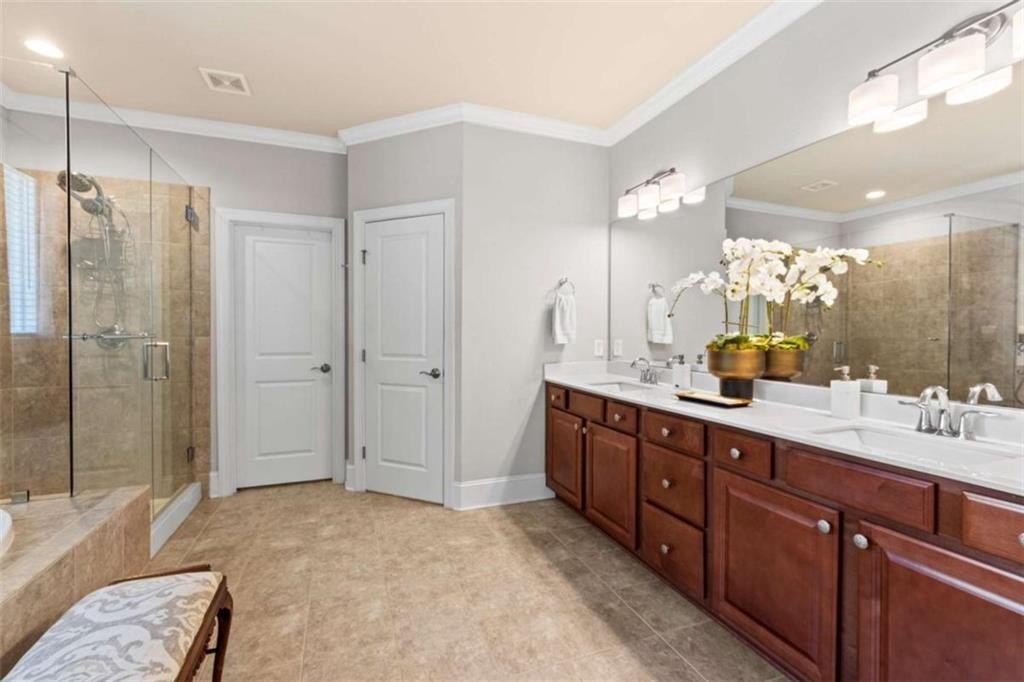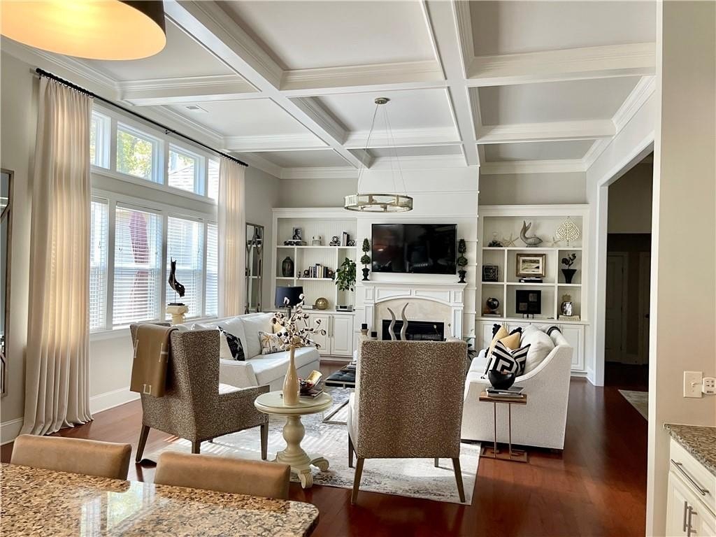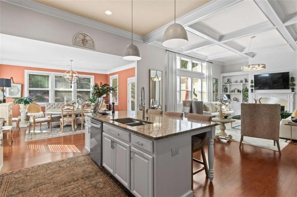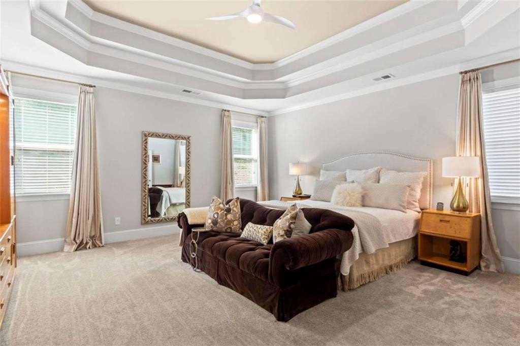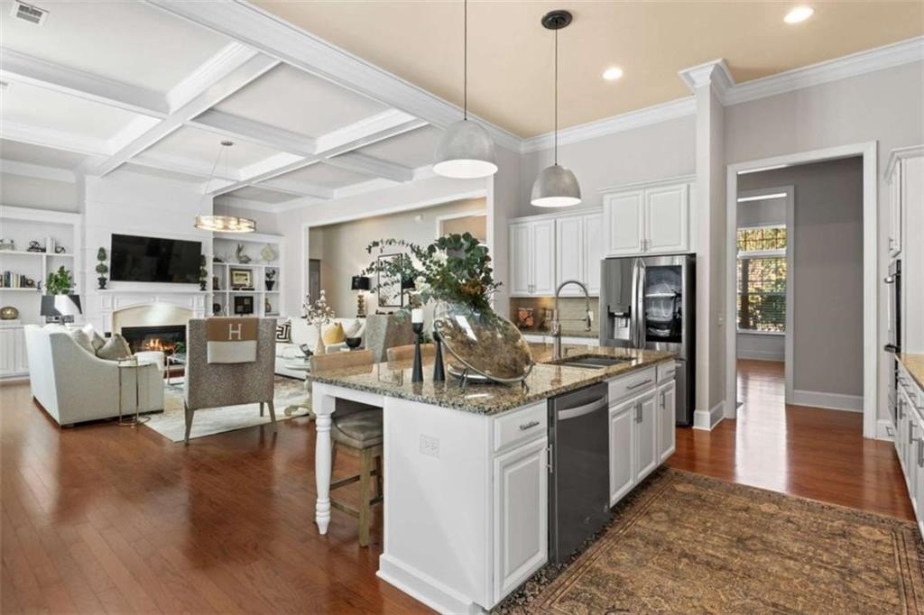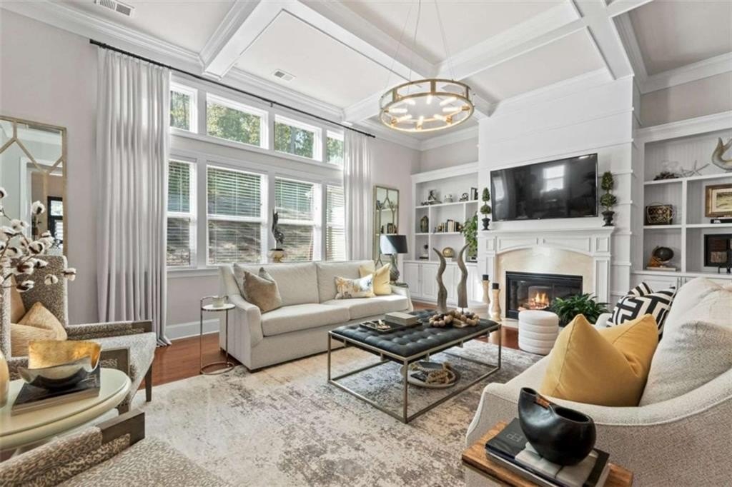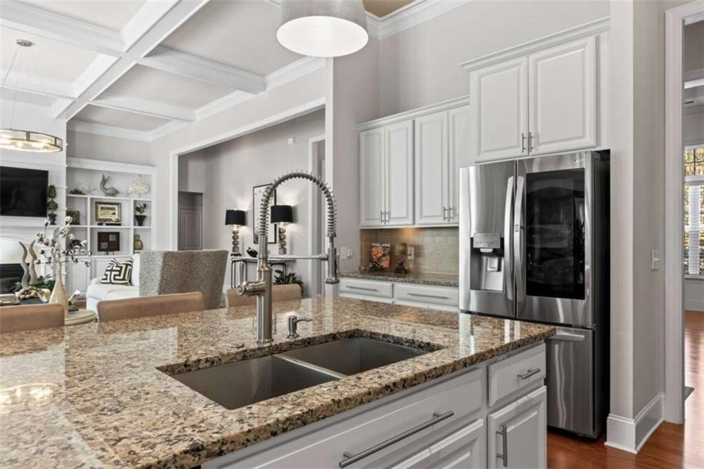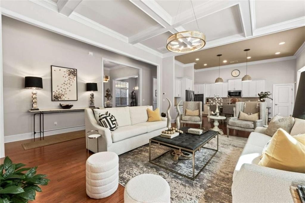 This home presents a rare opportunity to own a spacious, modern, beautifully crafted stepless 4 Bedroom, 3-1/2 bath Ranch with an open floor plan and meticulous attention to detail. Grand Open foyer flows into two Living areas and Family Room and, at the heart of the home, the sunny gourmet Kitchen featuring a stunning 8+foot island, premium appliances, and a spacious pantry for extra storage and prep space. A sunny bright breakfast room offers the ideal spot to relax and take in the peaceful views of your private yard. The open-concept layout features Dramatic 14-foot ceilings throughout all main living areas including Large Living Room and Pool Table-sized Dining room. Enjoy the Private Ex-Large Primary Suite with impressive Spa-inspired Bath and Custom Closet. King sized Guest Bedrooms, all with Ensuite Baths, Half Bath and Laundry/mudroom. And don't Miss the huge Walk In Coat Closet! More than $50K in upgrades include Coffered ceilings, custom built-ins, Picture Frame molding, Custom closets, Custom lights and fixtures, additional parking pad at side load garage. Designed for both comfort and style, this home blends modern upgrades with timeless livability. Very active swim, tennis, clubhouse and playground community in one of Atlanta's most sought-after neighborhoods and one of SW Atlanta's most coveted streets with recent sales over $3 million. Bring your pickiest buyers, this home shows like a model. Priced below appraisal! The community is very active with social gatherings, a regulation sized tennis court, basket ball court, clubhouse and a gleaming swimming pool. You'll love living here! One of Atlanta's most sought-after neighborhoods and coveted streets with recent sales over $3 million. Bring your pickiest buyers, this home shows like a model. Priced below appraisal!