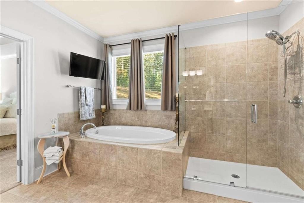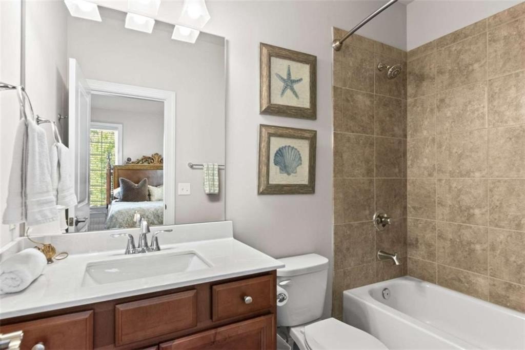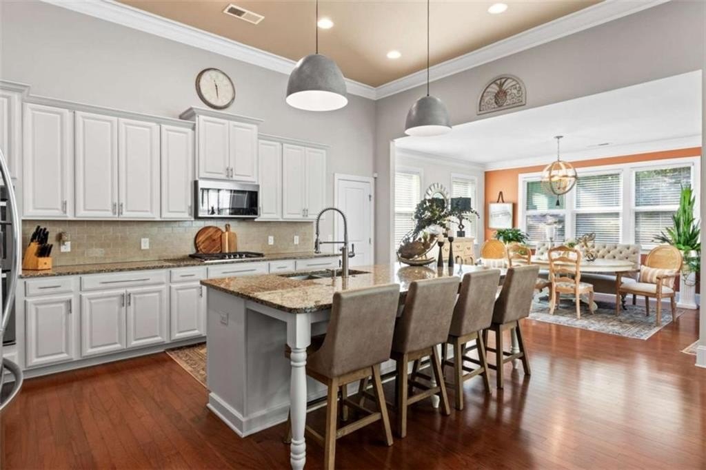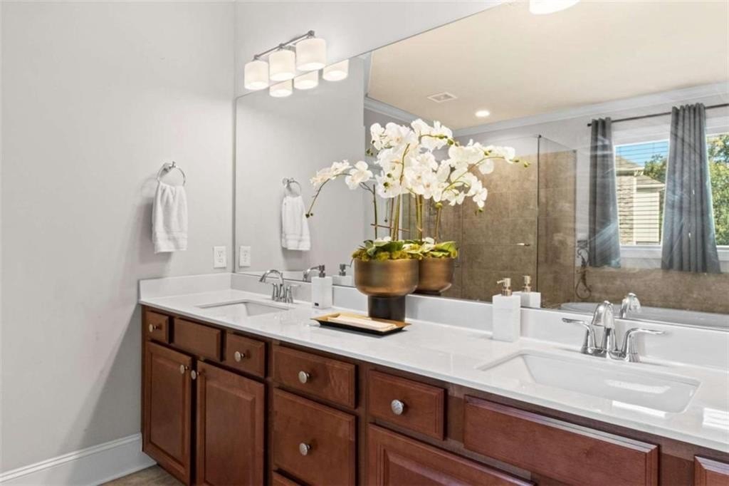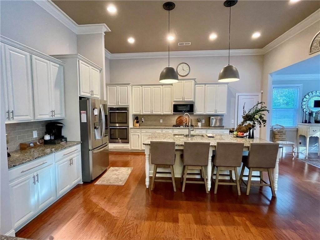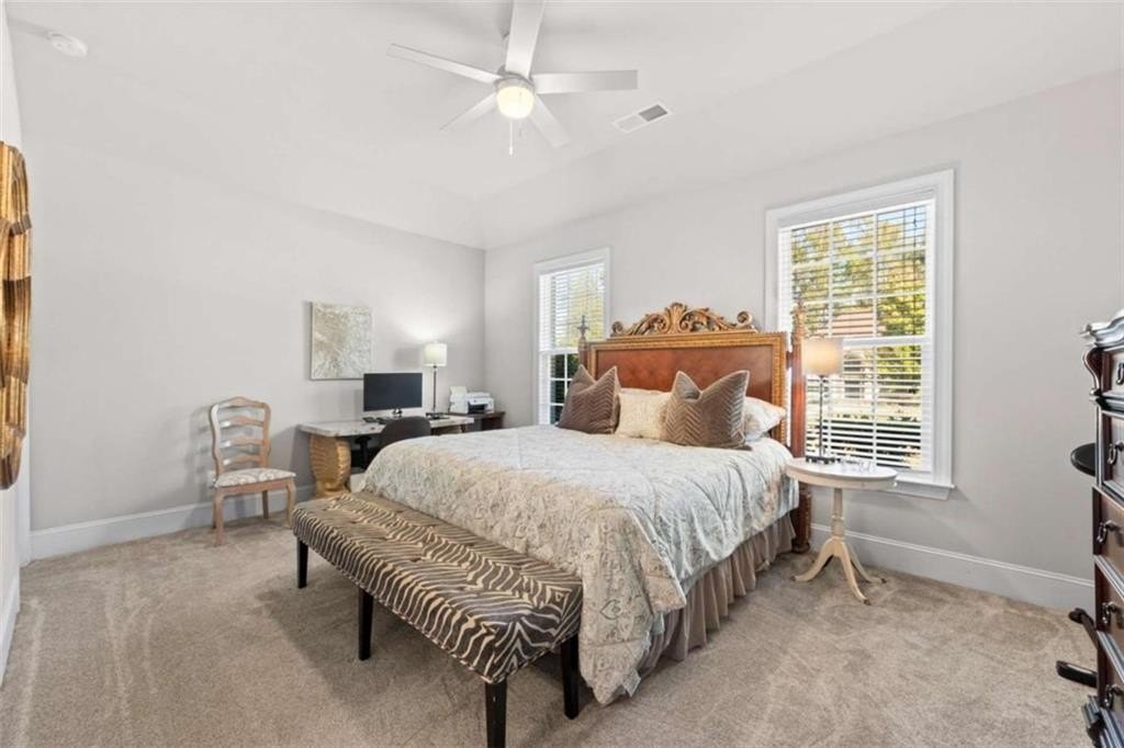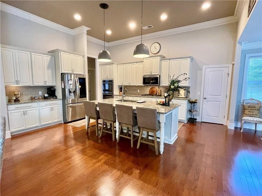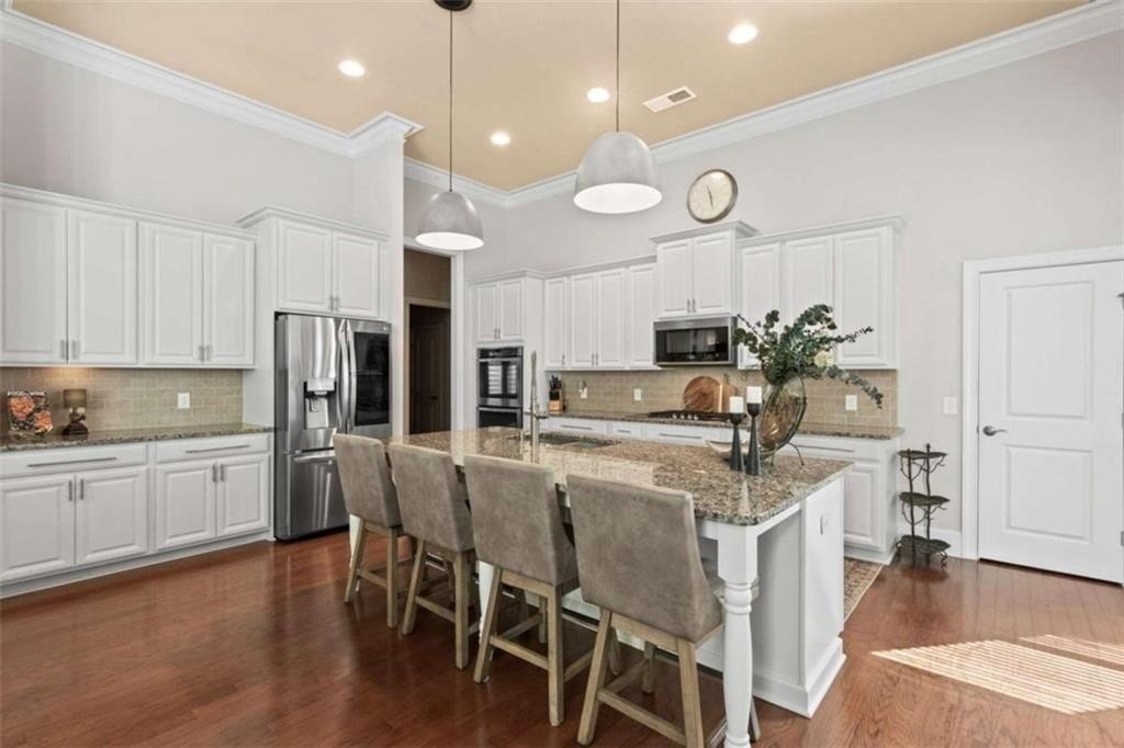 This home presents a rare opportunity to own a spacious, modern, beautifully crafted stepless 4 Bedroom, 3-1/2 bath Ranch with an open floor plan and meticulous attention to detail. Grand Open foyer flows into two Living areas and Family Room and, at the heart of the home, the sunny gourmet Kitchen featuring a stunning 8+foot island, premium appliances, and a spacious pantry for extra storage and prep space. A sunny bright breakfast room offers the ideal spot to relax and take in the peaceful views of your private yard. The open-concept layout features Dramatic 14-foot ceilings throughout all main living areas including Large Living Room and Pool Table-sized Dining room. Enjoy the Private Ex-Large Primary Suite with impressive Spa-inspired Bath and Custom Closet. King sized Guest Bedrooms, all with Ensuite Baths, Half Bath and Laundry/mudroom. And don't Miss the huge Walk In Coat Closet! More than $50K in upgrades include Coffered ceilings, custom built-ins, Picture Frame molding, Custom closets, Custom lights and fixtures, additional parking pad at side load garage. Designed for both comfort and style, this home blends modern upgrades with timeless livability. Very active swim, tennis, clubhouse and playground community in one of Atlanta's most sought-after neighborhoods and one of SW Atlanta's most coveted streets with recent sales over $3 million. Bring your pickiest buyers, this home shows like a model. Priced below appraisal! The community is very active with social gatherings, a regulation sized tennis court, basket ball court, clubhouse and a gleaming swimming pool. You'll love living here! One of Atlanta's most sought-after neighborhoods and coveted streets with recent sales over $3 million. Bring your pickiest buyers, this home shows like a model. Priced below appraisal!