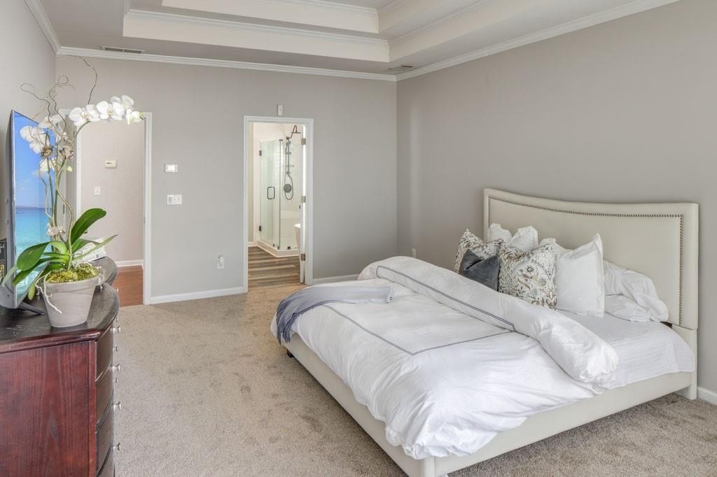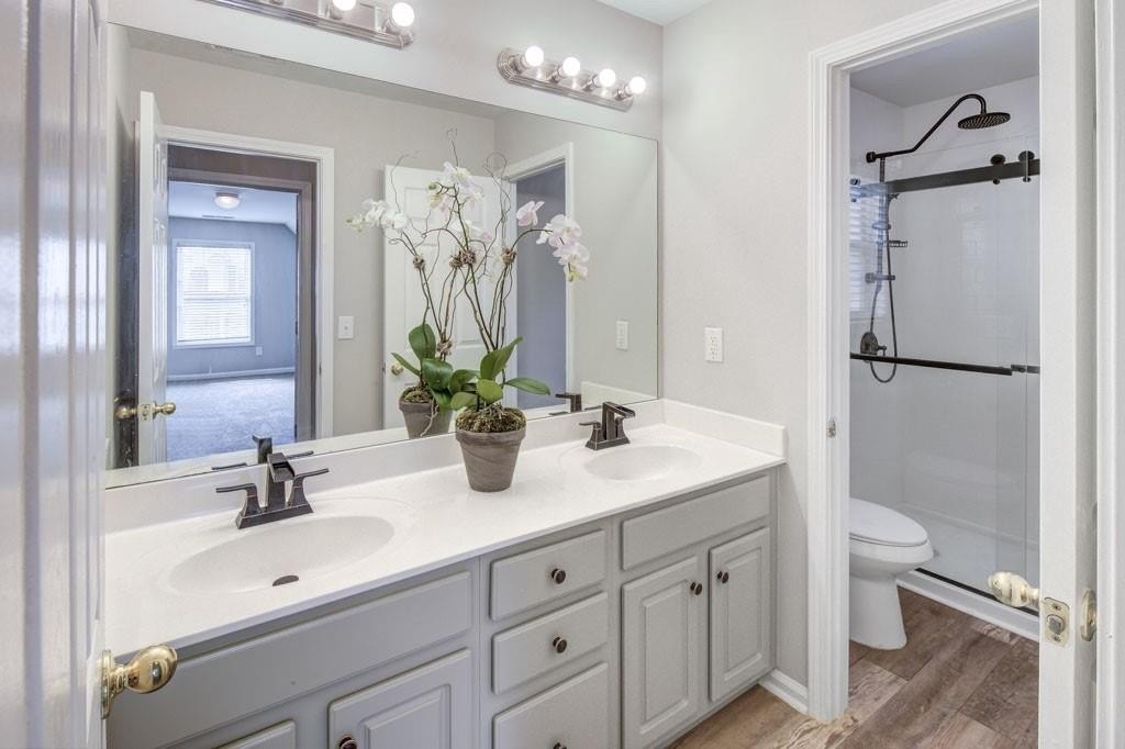 5,000.00 Closing Credit! MOTIVATED SELLER!! Contractor's personal home! BRAND NEW ROOF - NEW CARPET - HVAC 4 YEARS OLD - WATER HEATER 1 YEAR OLD means MOVE IN READY! - Charming traditional home located in the well-established swim/tennis community of Vinings Vintage! This home has PRIMARY ON THE MAIN with 3 large secondary bedrooms upstairs and two FULLY RENOVATED BATHS and one half bath on the main floor. Flat front yard and situated towards the back of the neighborhood with cul-de-sacs at each end will ensure quiet enjoyment and a great place to play and ride bikes. No-step entry into the two story foyer with custom niche for your favorite artwork to display leads to curved archways to formal living room to your left and large formal dining area to your right. As you walk into the soaring main living space, there is a formal fireplace with marble surround and a view to the upstairs catwalk with custom iron balusters. Adjoining kitchen has cozy breakfast room with view to the backyard. Owner has built a custom deck with built-in benches, outdoor shower, garden beds and small dog run. Towards the back of the yard is another custom deck area perfect for al-fresco dining! Back inside, the primary suite on main has triple trey ceiling and siting room with wall of windows to the backyard. Primary renovated bath has separate tub and large frameless glass shower and primary walk-in closet is oversized and has plenty of space! Three large secondary bedrooms upstairs, renovated bath with separation between sink area and shower area give maximum privacy for anyone sharing the bathroom at once. Attic access provided by door directly into attic area making storage retrieval easy and hassle-free. Located close to shopping areas and easy access to I-285 yet tucked discreetly off of main roads will make 458 Vinings Vintage Circle a great place to call HOME!