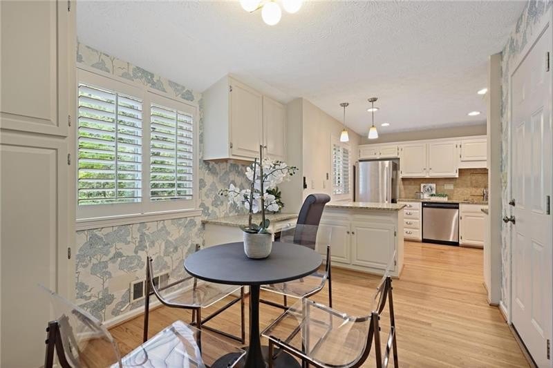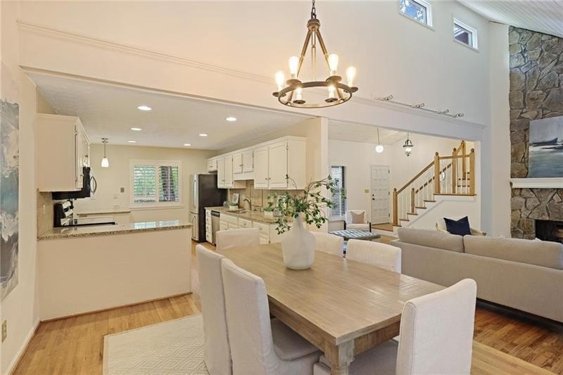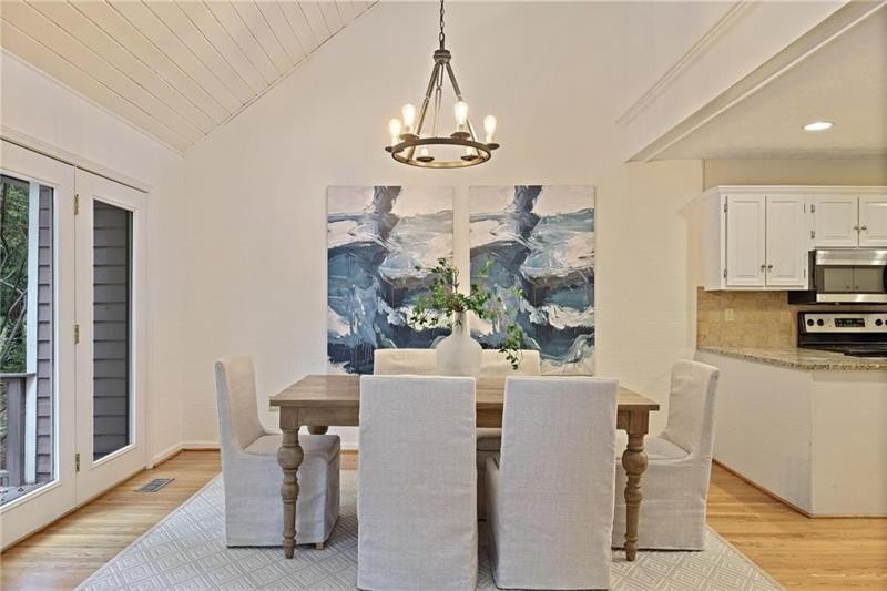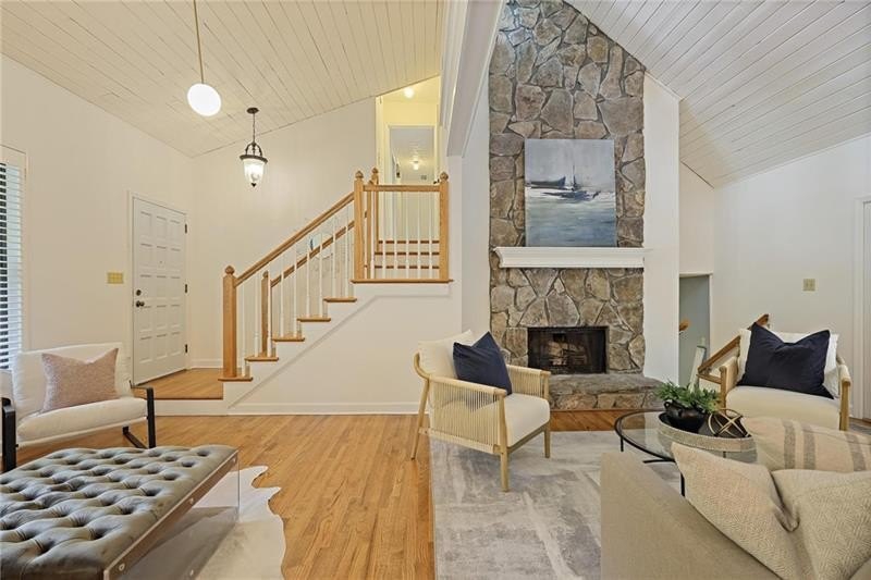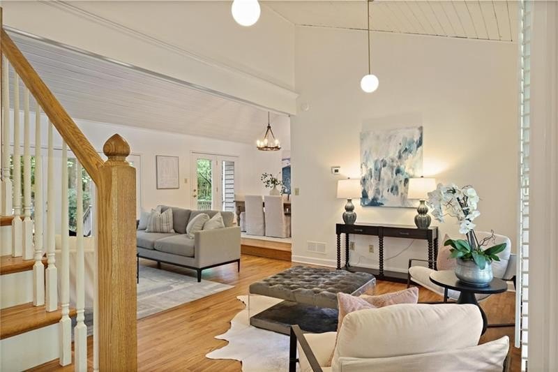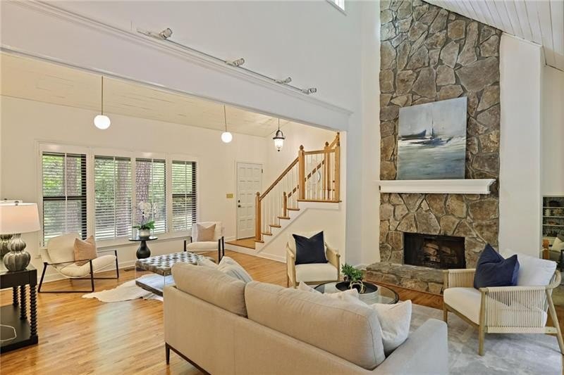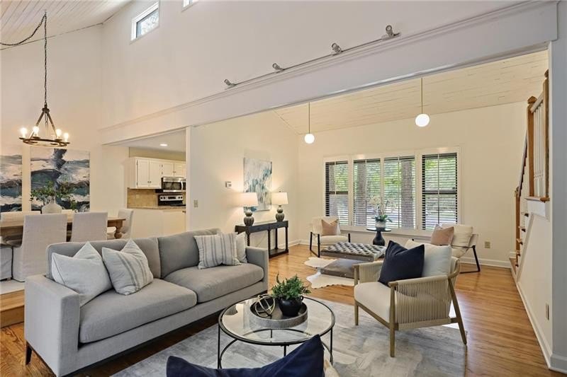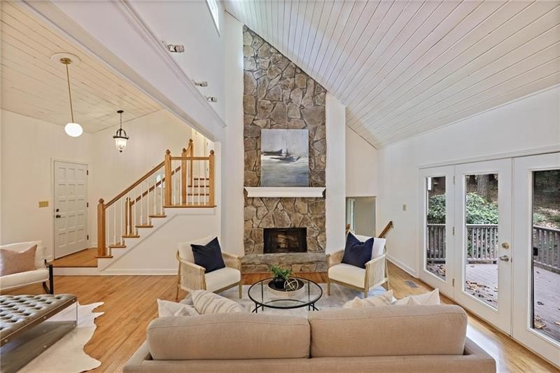 Contemporary retreat in the heart of Historic Vinings! Tucked away on a private cul-de-sac off Orchard Knob and surrounded by multimillion-dollar homes, this light-filled residence offers soaring ceilings, floor-to-ceiling windows, and two beautiful stone fireplaces. The open-concept multiple living and dining spaces connect seamlessly to a granite kitchen with breakfast room and a convenient laundry and mudroom off the garage. The upstairs primary suite features a beautifully renovated marble bathroom and dual closets, with two additional bedrooms and a shared bath. The terrace level provides another spacious family room with fireplace, a guest bedroom, full bath, and an unfinished storage room currently used as a music room. Outdoor living shines with expansive decks overlooking a private, flat backyard-perfect for entertaining or play. The community itself is equally inviting, offering a welcoming environment for neighborhood gatherings, outdoor recreation, and enjoying Atlanta's beautiful days. Additional highlights include a new roof, 2-car garage, and .58-acre lot with large, flat front and back yards. A rare opportunity to enjoy light-filled design and modern comforts in one of Vinings' most desirable neighborhoods! Close proximity to public and private schools, Truist Park and Vinings Jubilee.