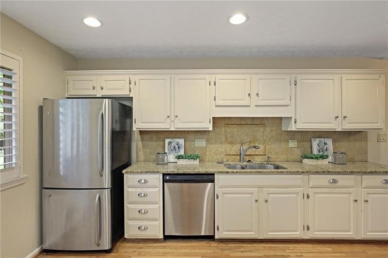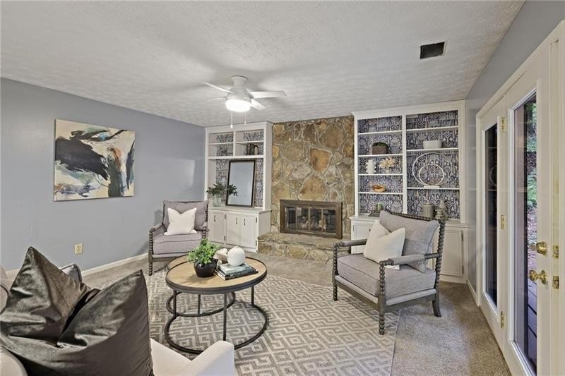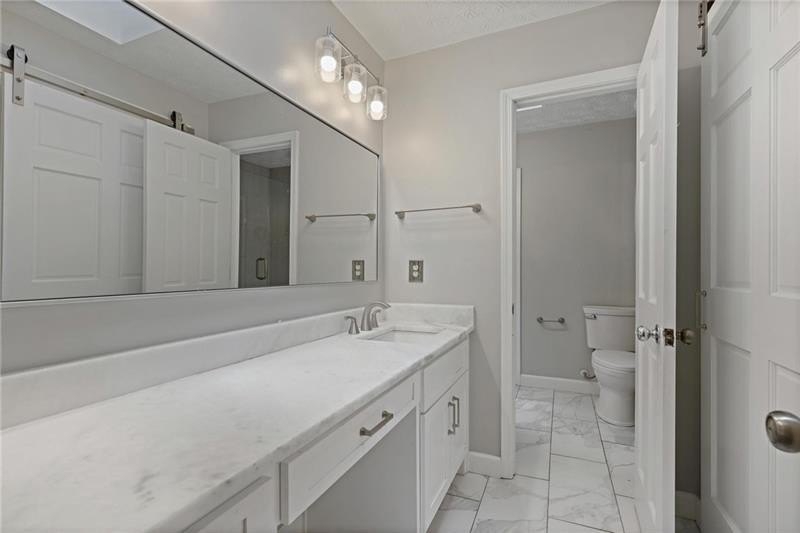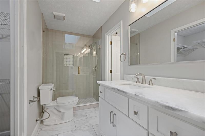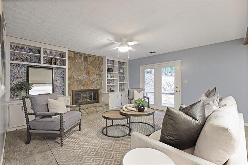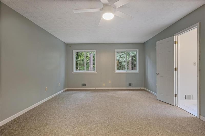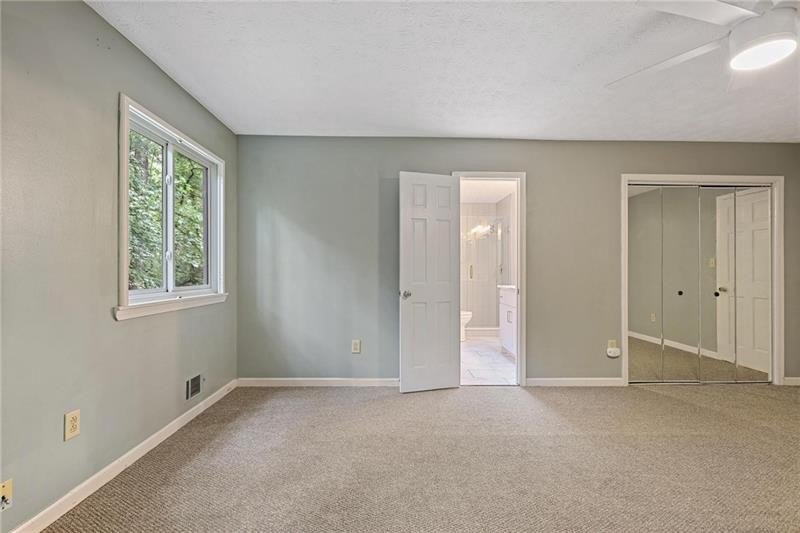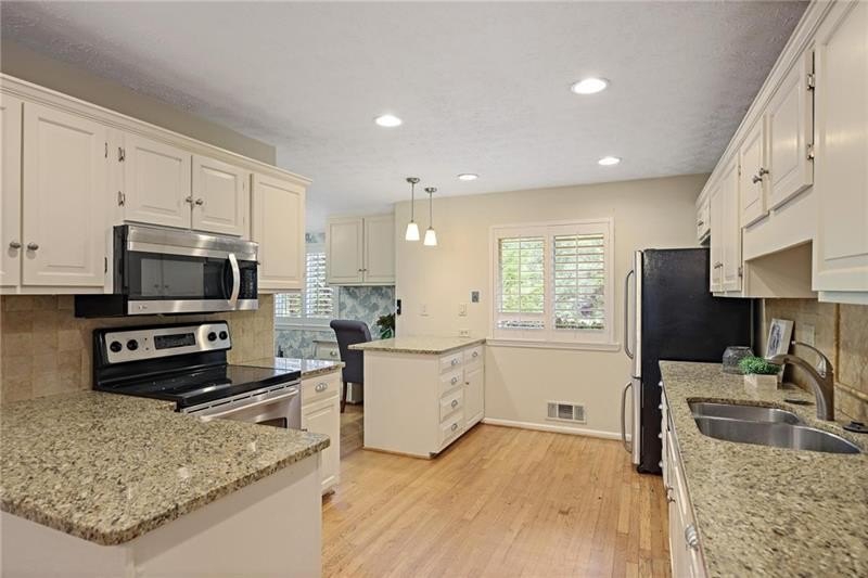 Contemporary retreat in the heart of Historic Vinings! Tucked away on a private cul-de-sac off Orchard Knob and surrounded by multimillion-dollar homes, this light-filled residence offers soaring ceilings, floor-to-ceiling windows, and two beautiful stone fireplaces. The open-concept multiple living and dining spaces connect seamlessly to a granite kitchen with breakfast room and a convenient laundry and mudroom off the garage. The upstairs primary suite features a beautifully renovated marble bathroom and dual closets, with two additional bedrooms and a shared bath. The terrace level provides another spacious family room with fireplace, a guest bedroom, full bath, and an unfinished storage room currently used as a music room. Outdoor living shines with expansive decks overlooking a private, flat backyard-perfect for entertaining or play. The community itself is equally inviting, offering a welcoming environment for neighborhood gatherings, outdoor recreation, and enjoying Atlanta's beautiful days. Additional highlights include a new roof, 2-car garage, and .58-acre lot with large, flat front and back yards. A rare opportunity to enjoy light-filled design and modern comforts in one of Vinings' most desirable neighborhoods! Close proximity to public and private schools, Truist Park and Vinings Jubilee.